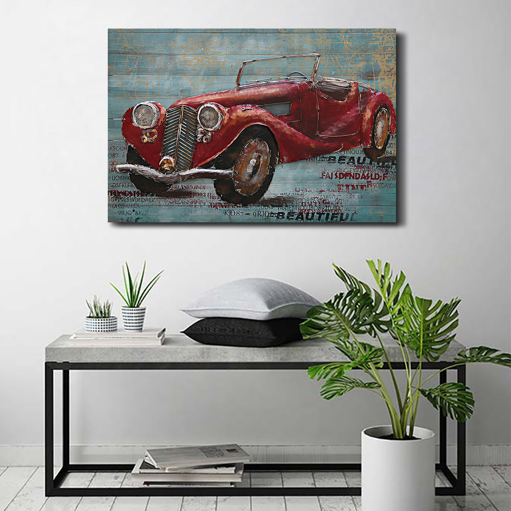 32 by 40 Inches Red Rolls Royce Convertible Oil 3 Dimensional Painting Sculpture