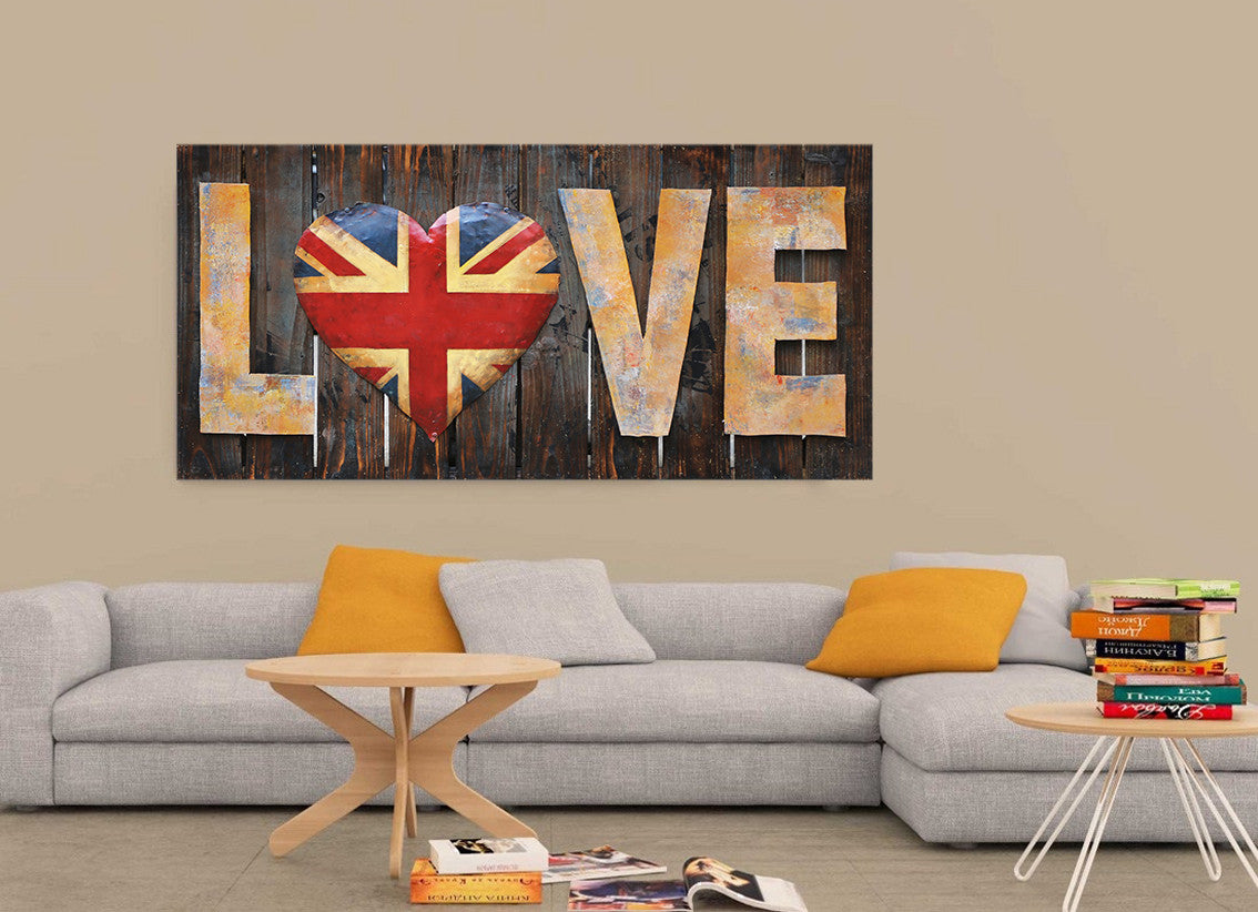 3D Metal Cutout Painting Wall Art LOVE British Flag Union Jack Heart Decor Mount