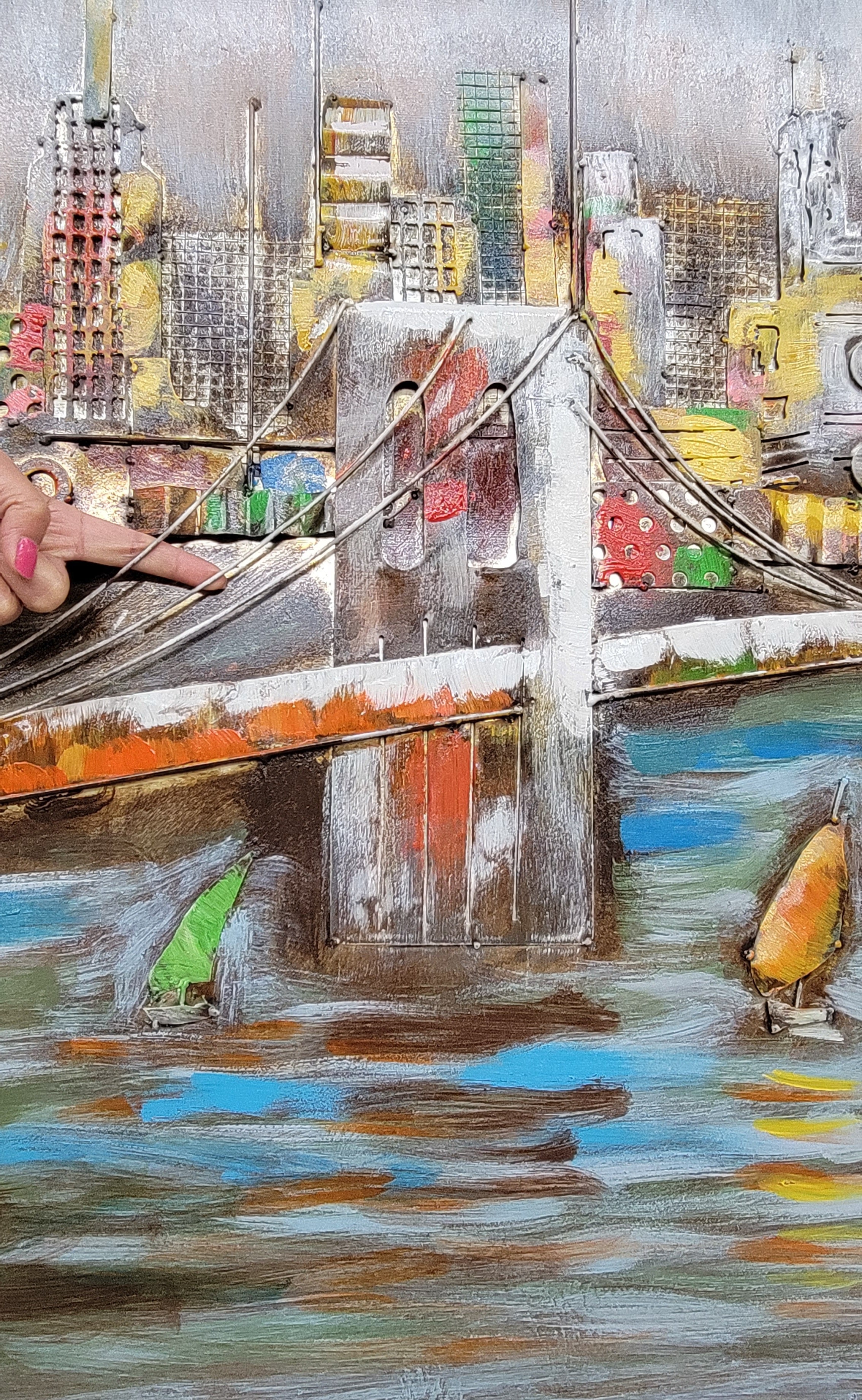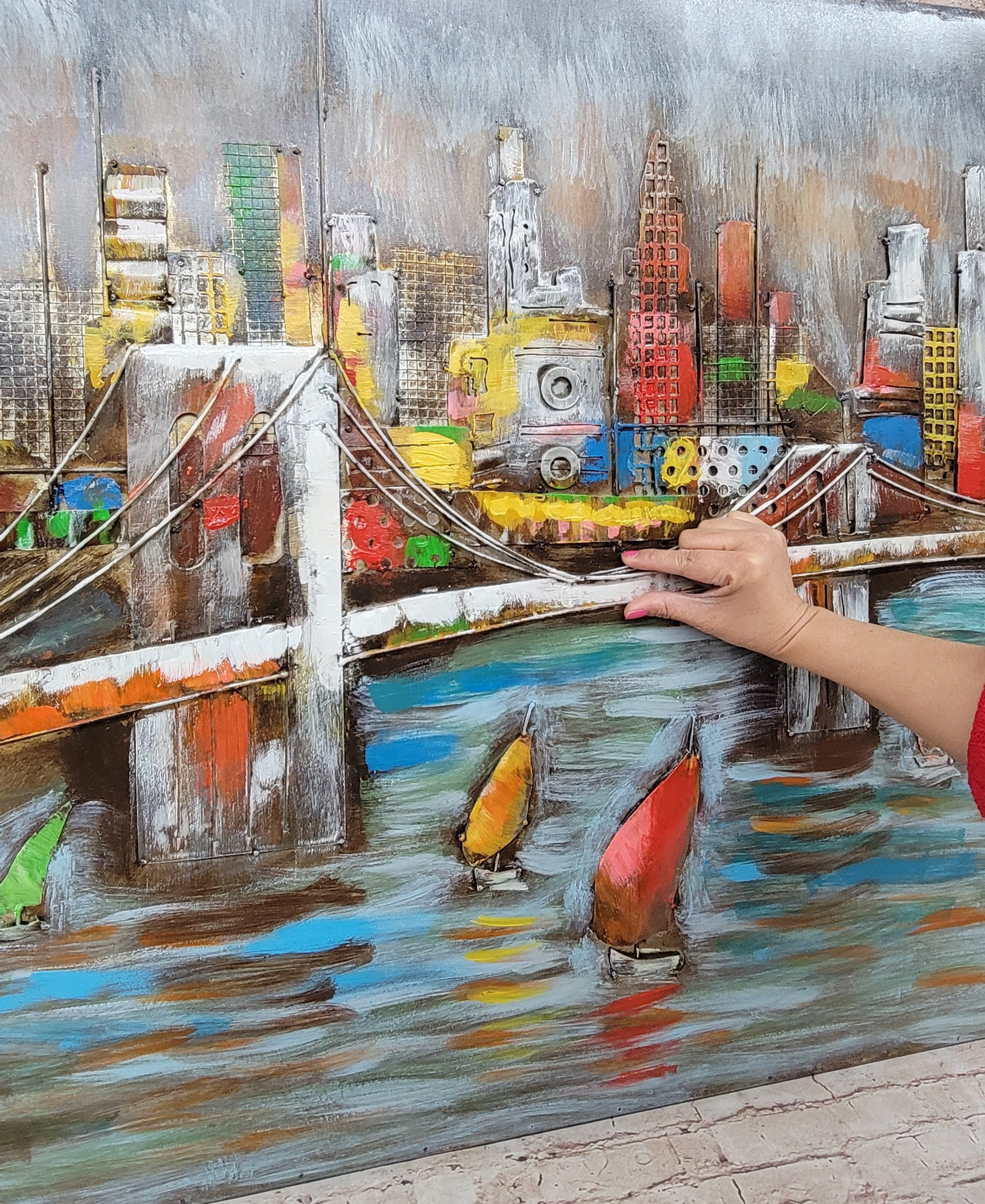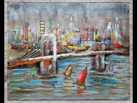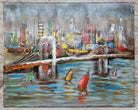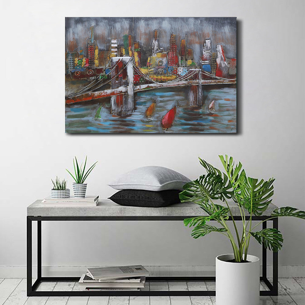 3D Wall Art Painting Bridge & Sailboats Scene Mixed Media Metal Wood Art