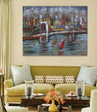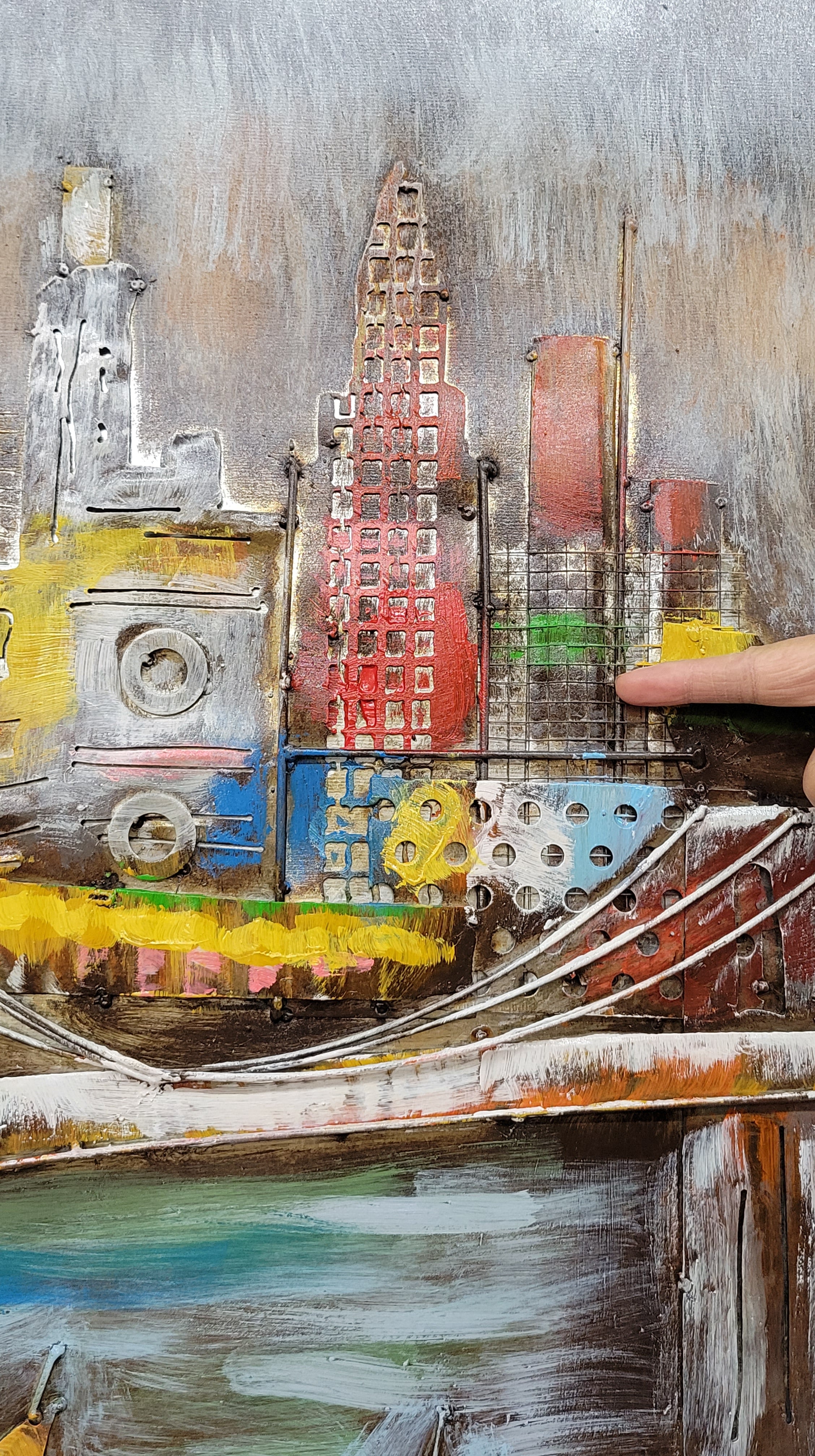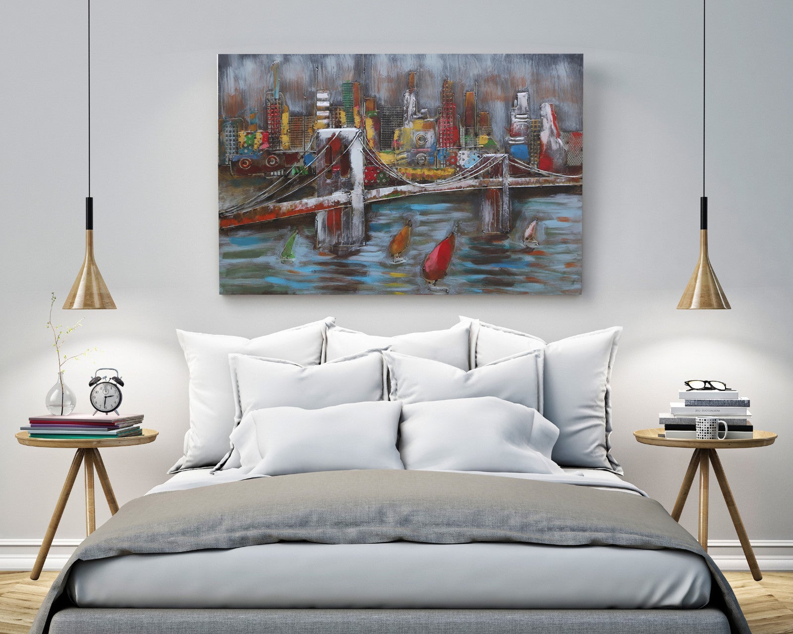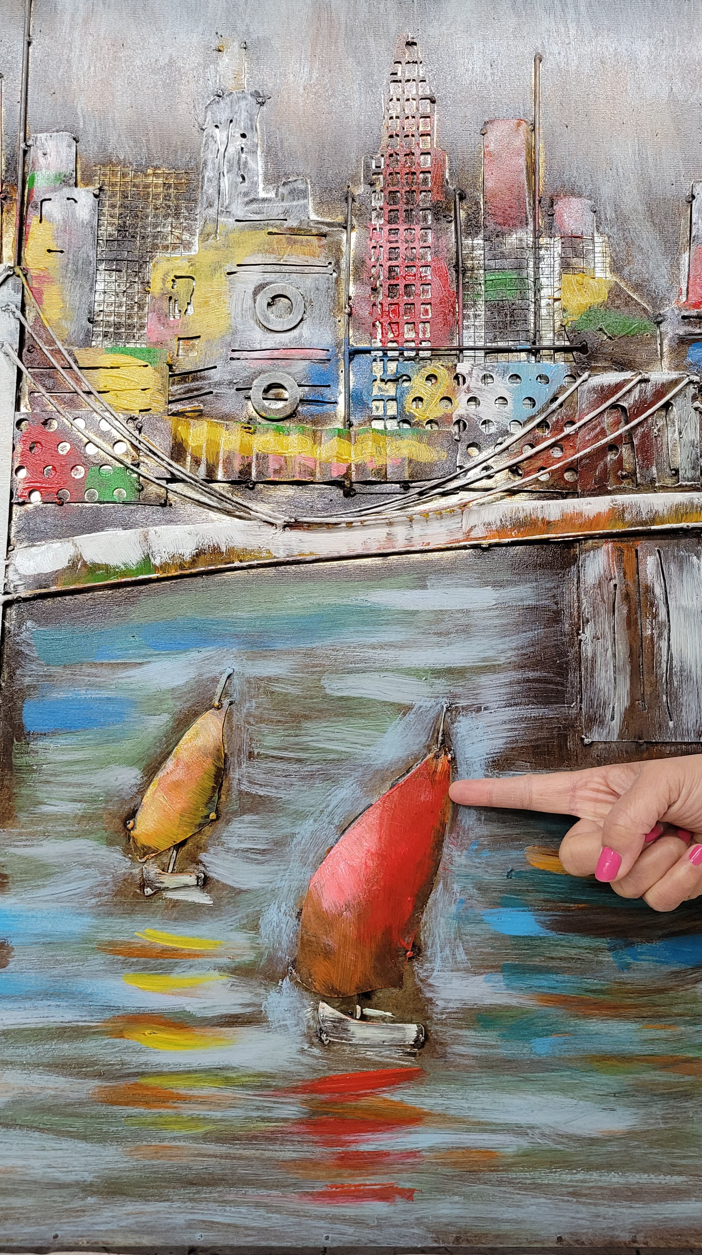 3D Wall Art Painting Bridge & Sailboats Scene Mixed Media Metal Wood Art