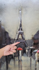 Rainy Day at the Eiffel Tower in Paris, France - 3D Painting Art on Metal Canvas