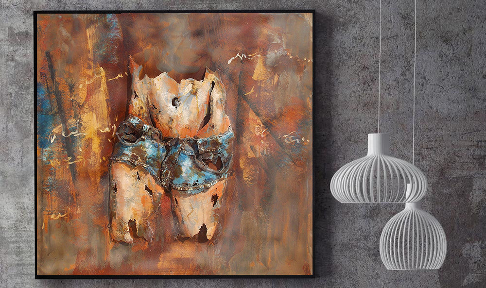 Bare Midriff Female Figure in Jean Shorts Mixed Media 3D Wall Art Metal Cutout Painting