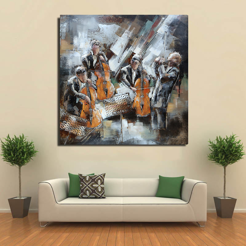 Cello Violin Quartet Classical Music 3D Wall Art Mixed Media Painting Metal Cutout