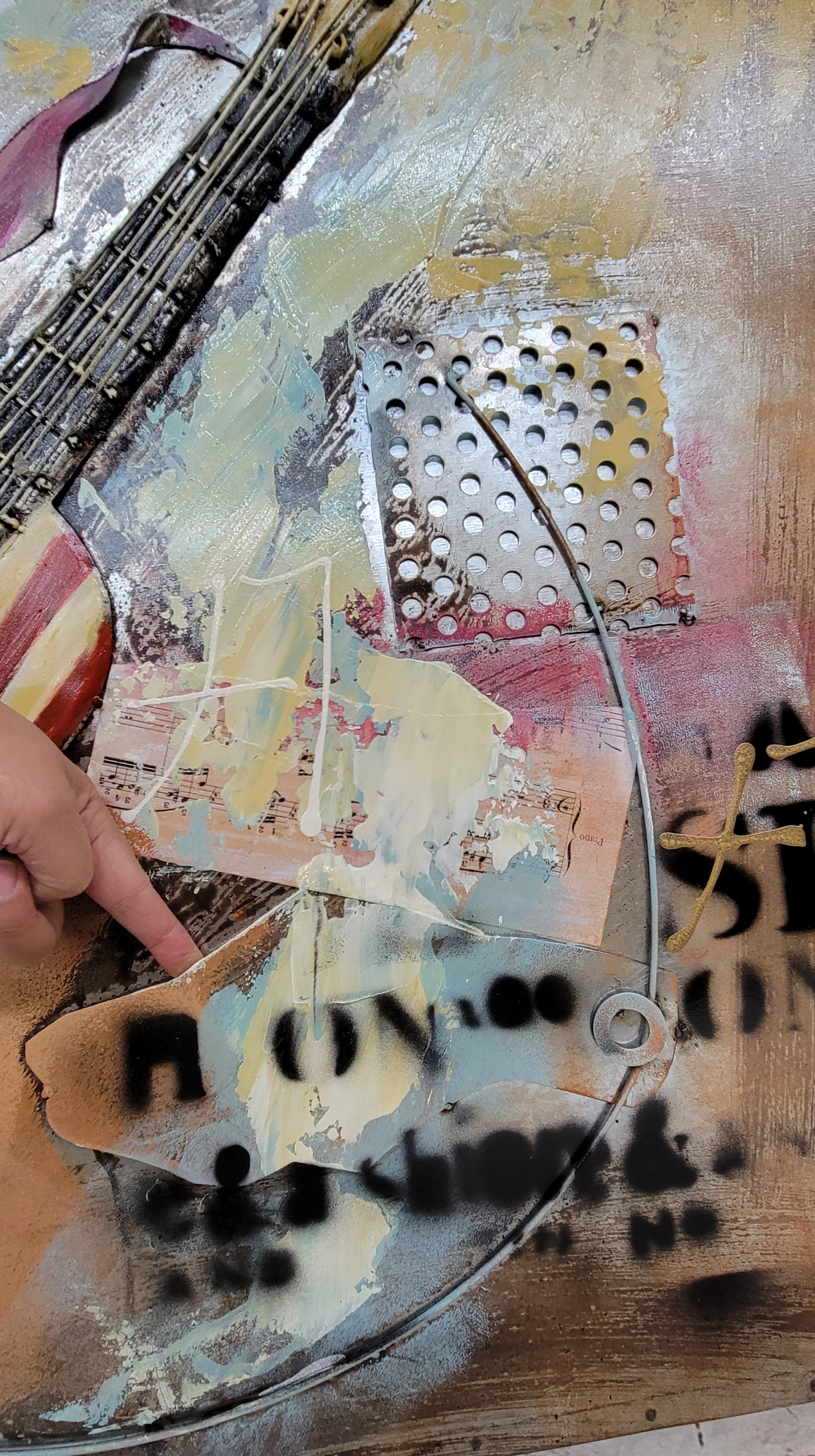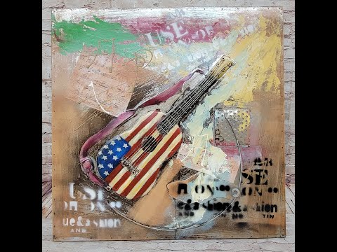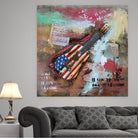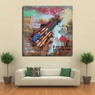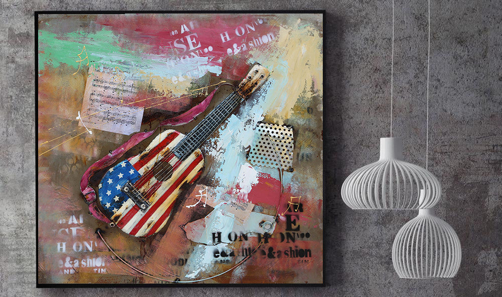 Colorful Abstract Guitar With American Flag 3D Oil Painting Artwork Metal Canvas