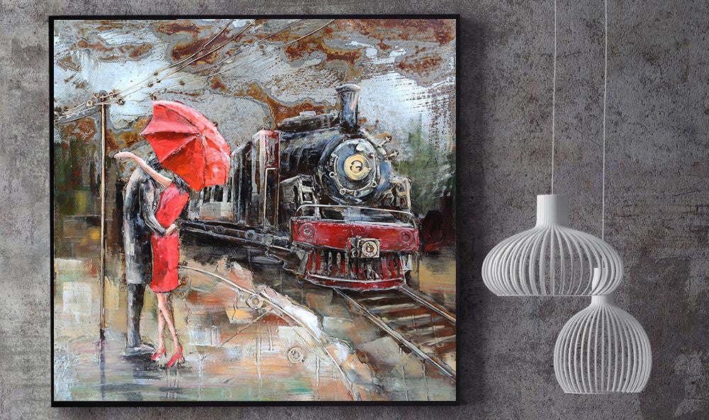 First kiss Anniversary Birthday Gift Romantic 3-D Oil Painting on Metal Canvas