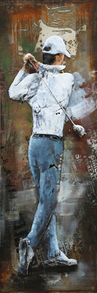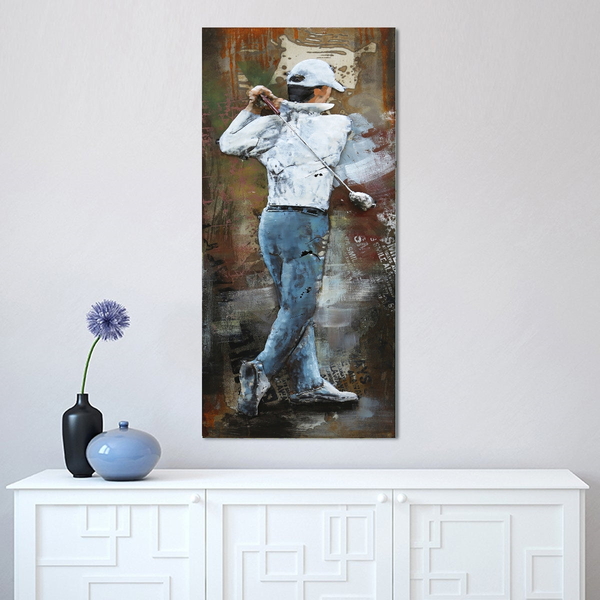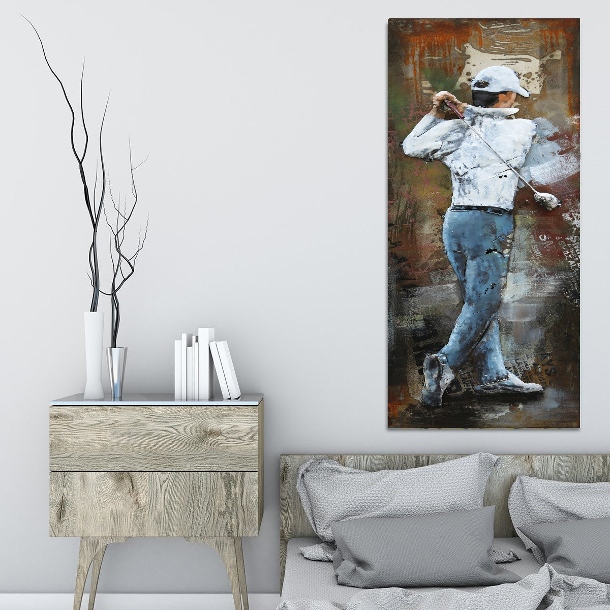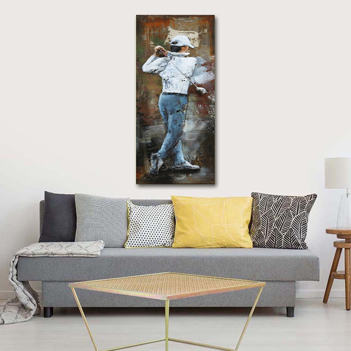 Golfer 3-D Oil Painting Wall Decor Metal And Wood Canvas Home Office Decoration