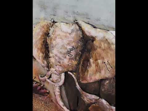 Hand Made Wildlife African Elephants Family 3-D Oil Painting on Metal Canvas