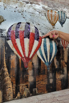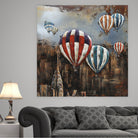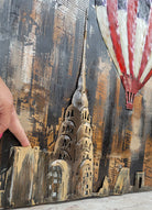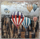 Hot Air Balloons over New York City NYC Skyline 3D Mixed Media Wall Art Metal Wood