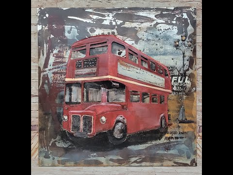 London Double Decker Red Bus 3D Wall Art Metal Cutout Painting Decor