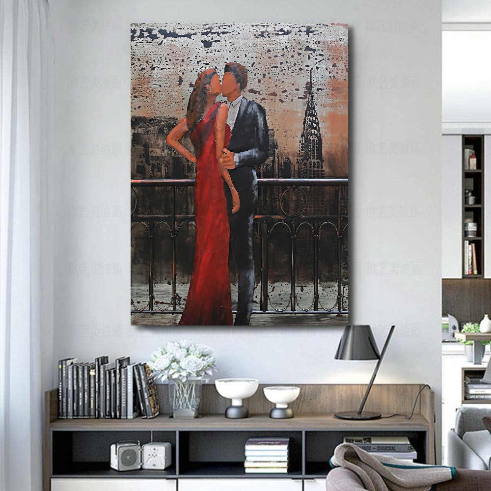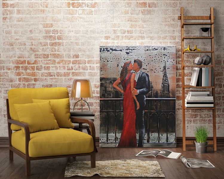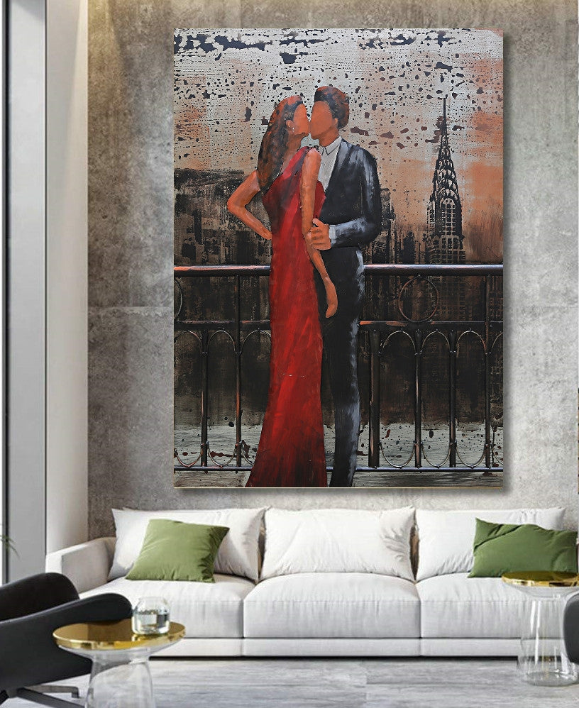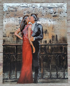 Romantic Night on Balcony of Empire State Building Original 3-D Oil Painting Sale