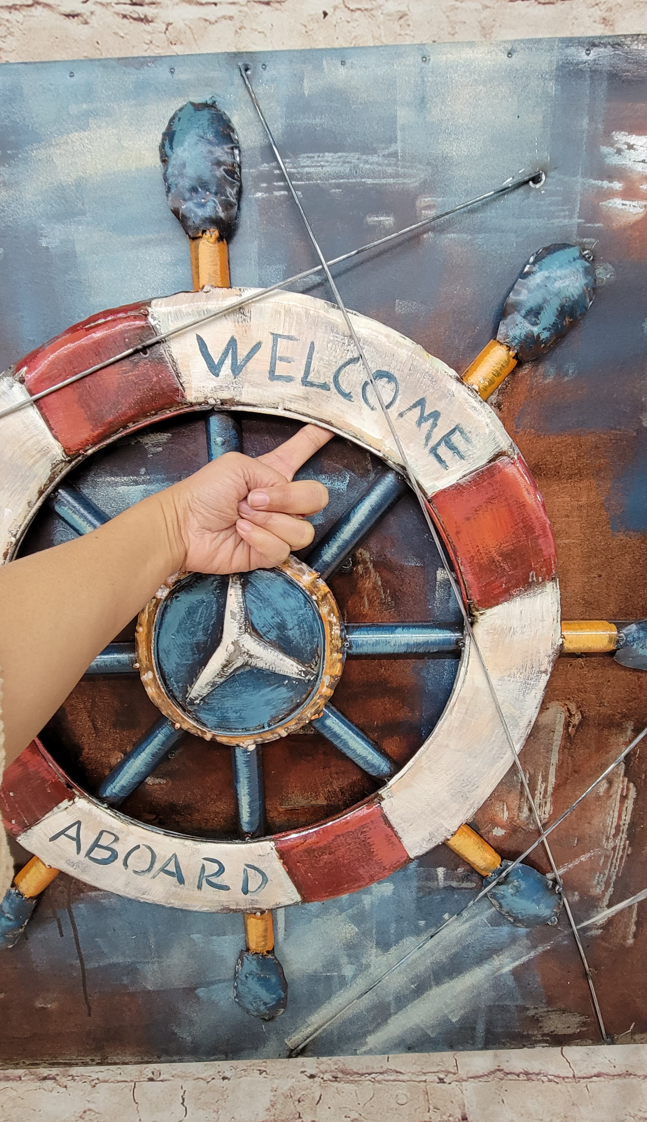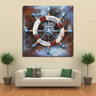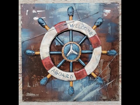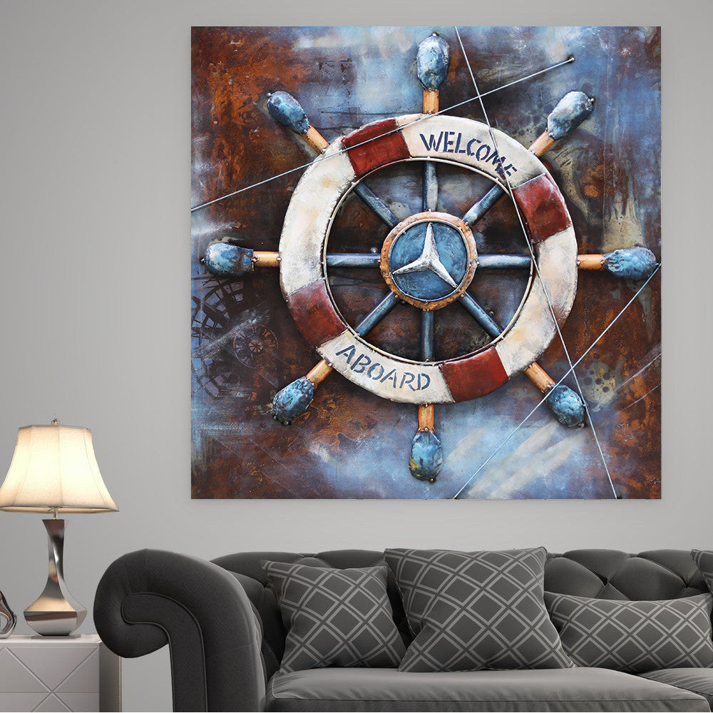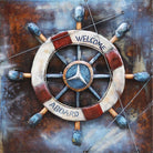 Welcome Aboard Ship Wheel And Deck Wall Art 3-D Oil Painting Metal Canvas