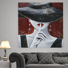 Woman in Hat Hushing Silence Quiet Metal & Wood 3D Wall Art Mixed Media Painting
