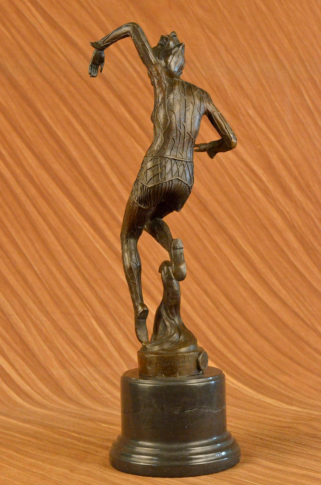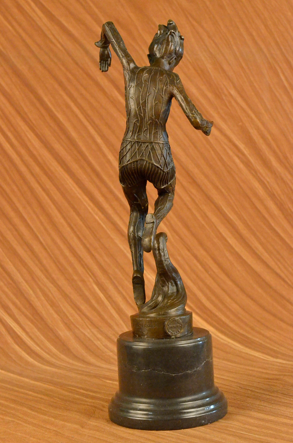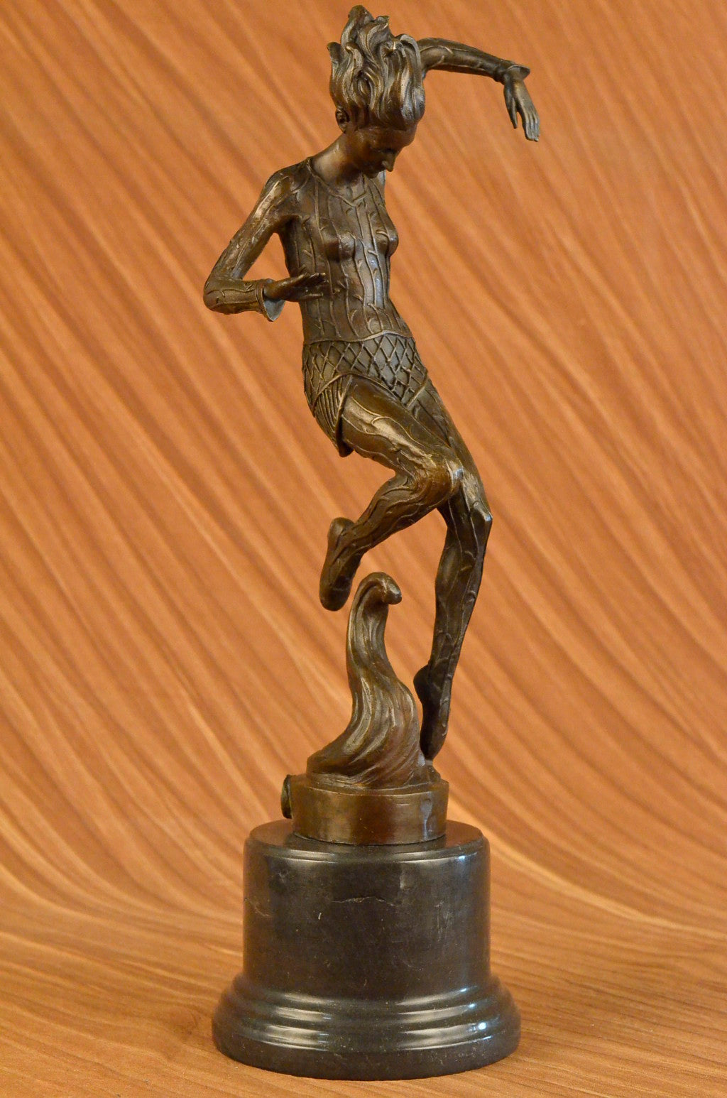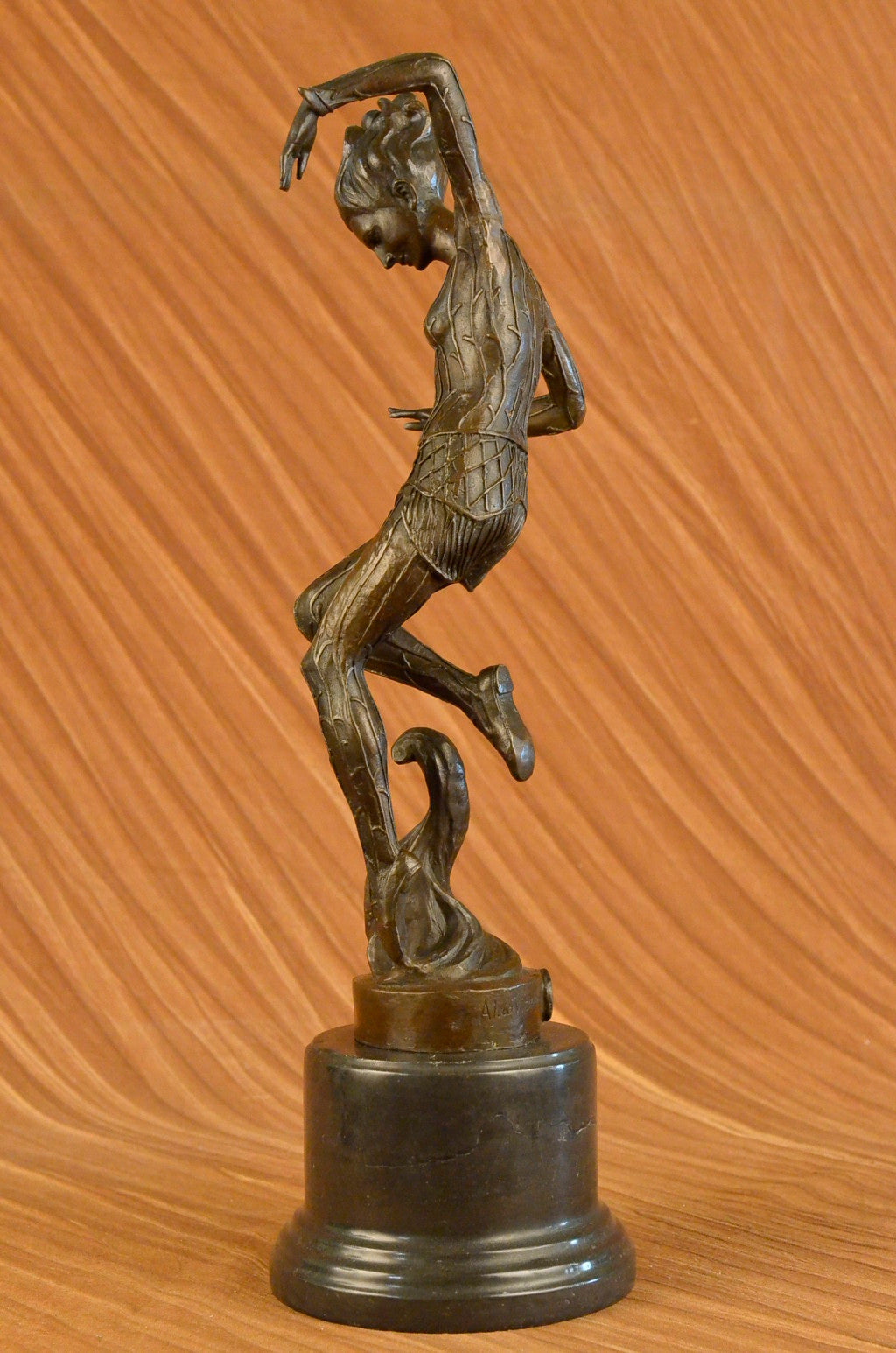 A professional Dancer puts on a show. Well trained in the art that she loves, she shows off her agility, balance and flexibility. She elevates her long leg far behind her. Her chest pushes out and her head tips up to the sky, basking in the glory of being center stage. Her spine curves, touching her back to her tutu. Her tutu spreads around her hips like a halo. Every movement is deliberate and structured, from the tips of her toes to the tips of her fingers. 100% bronze, this handmade brown patina sculpture was cast using the "Lost Wax Method" and mounted on a black marble base and is signed by Aldo Vitaleh.Bronze Dimensions with Marble Base:Height 19" x Width 8"