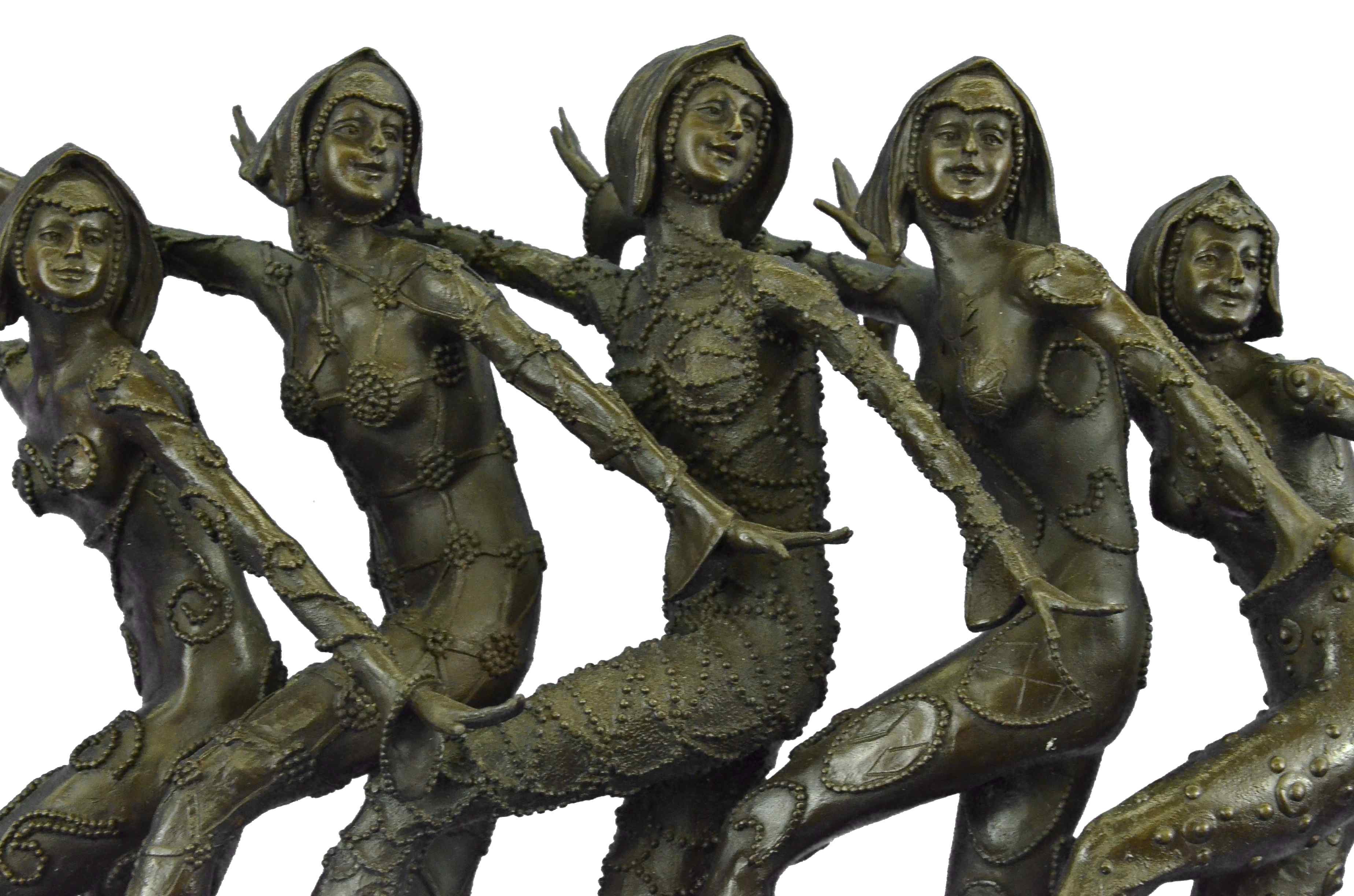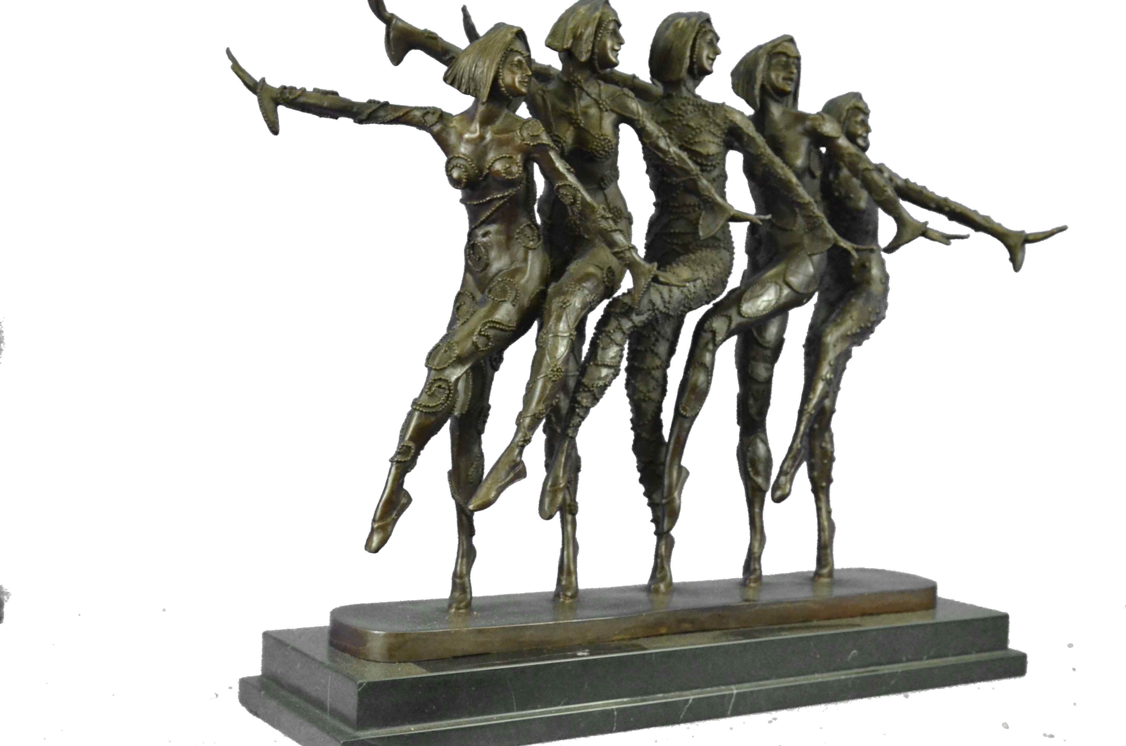 Signed 55 Lbs Large Five Chiparus Dancer Art Nouveau Marble Base Sculpture Decor