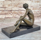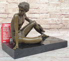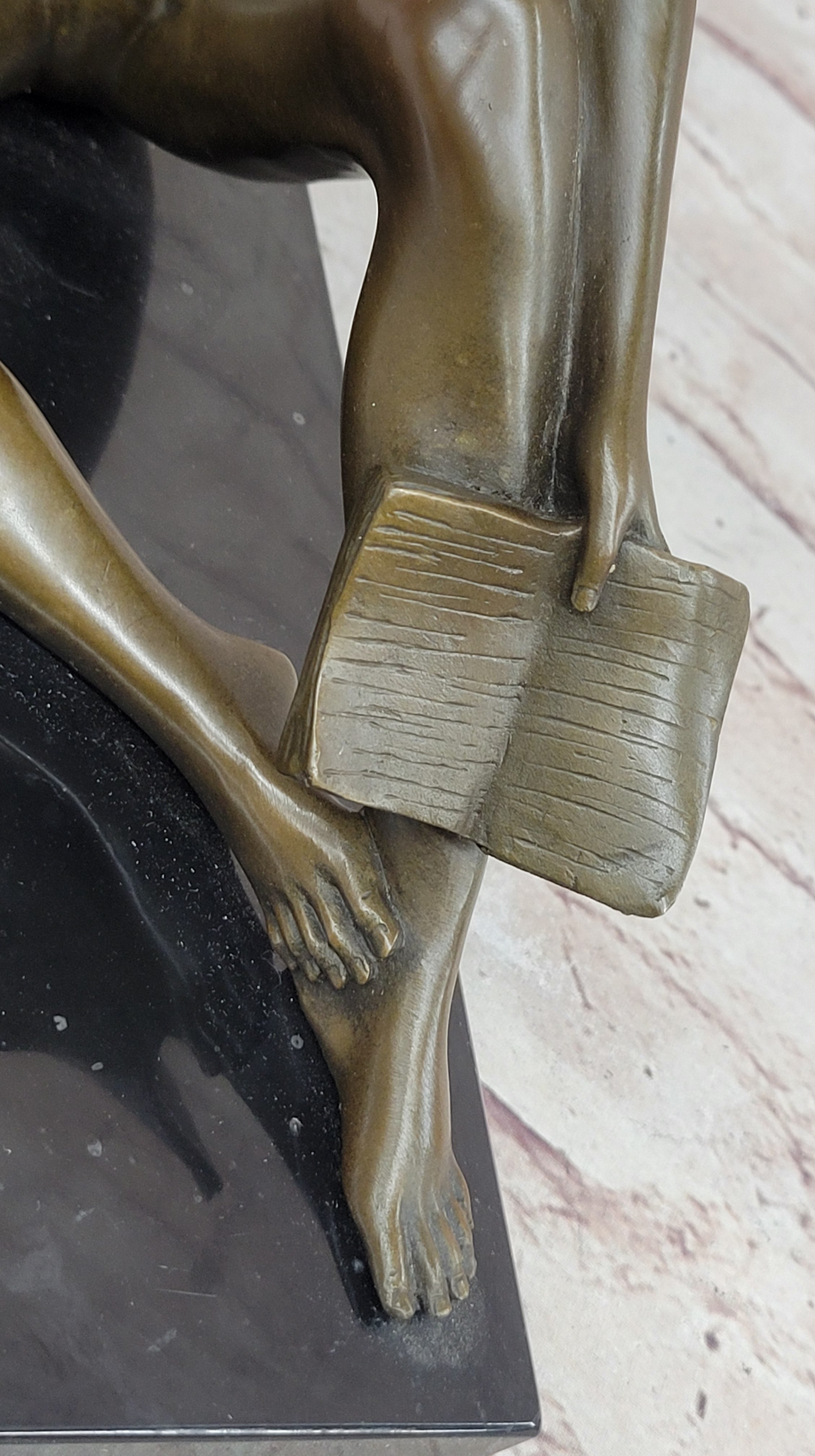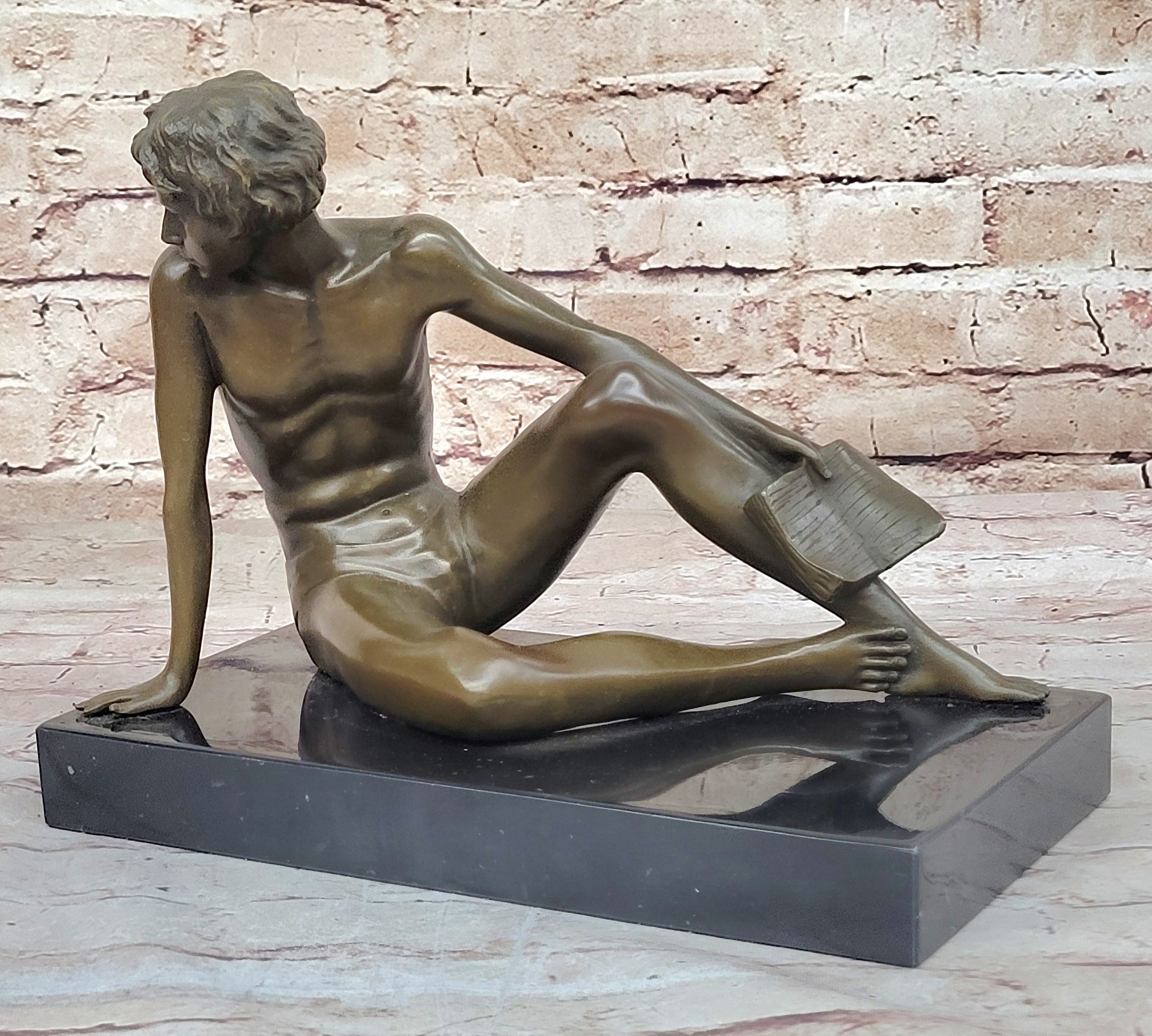 Young Man Reading a Book on the Beach - Bronze Sculpture on Marble Base by Preiss