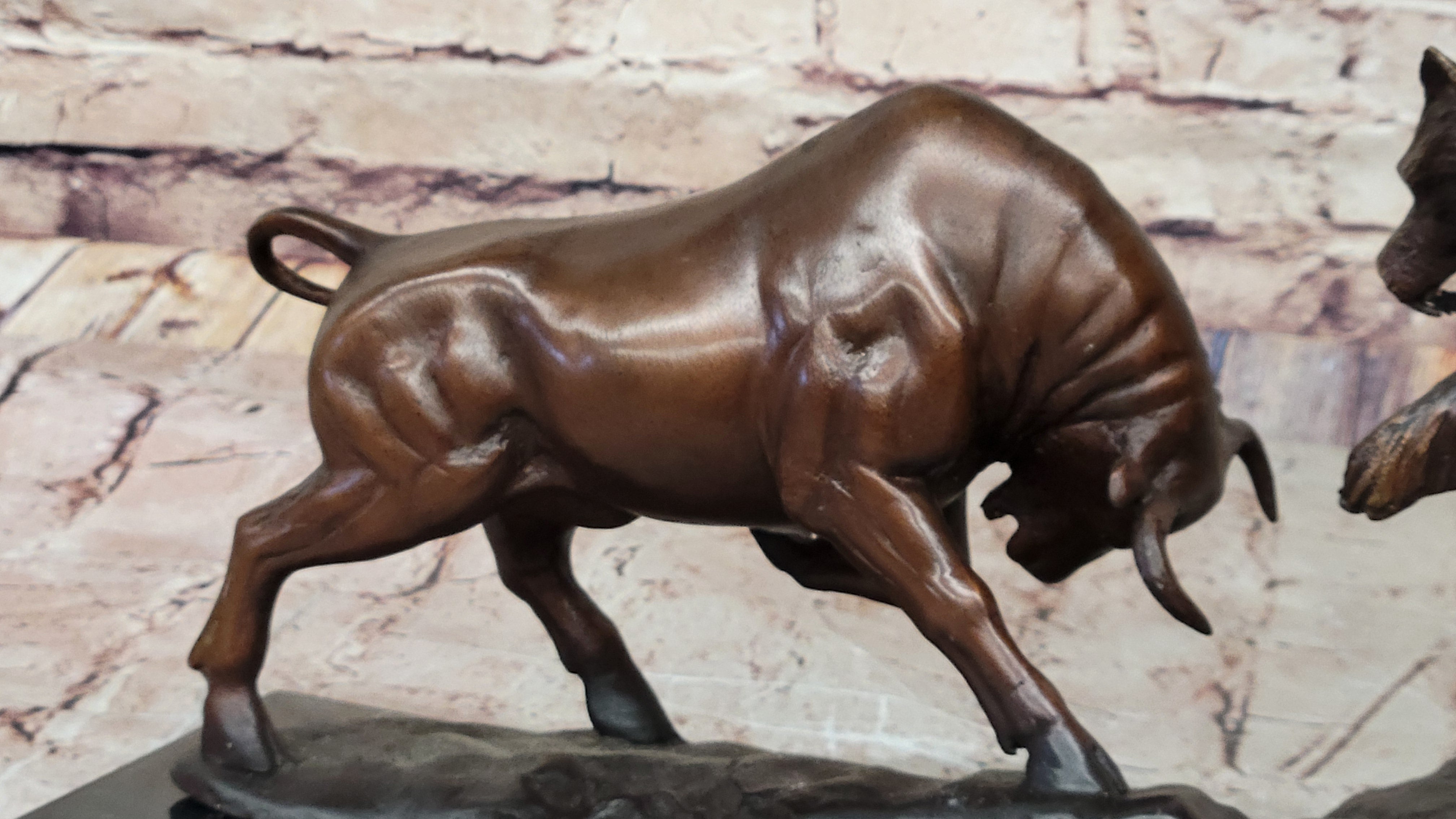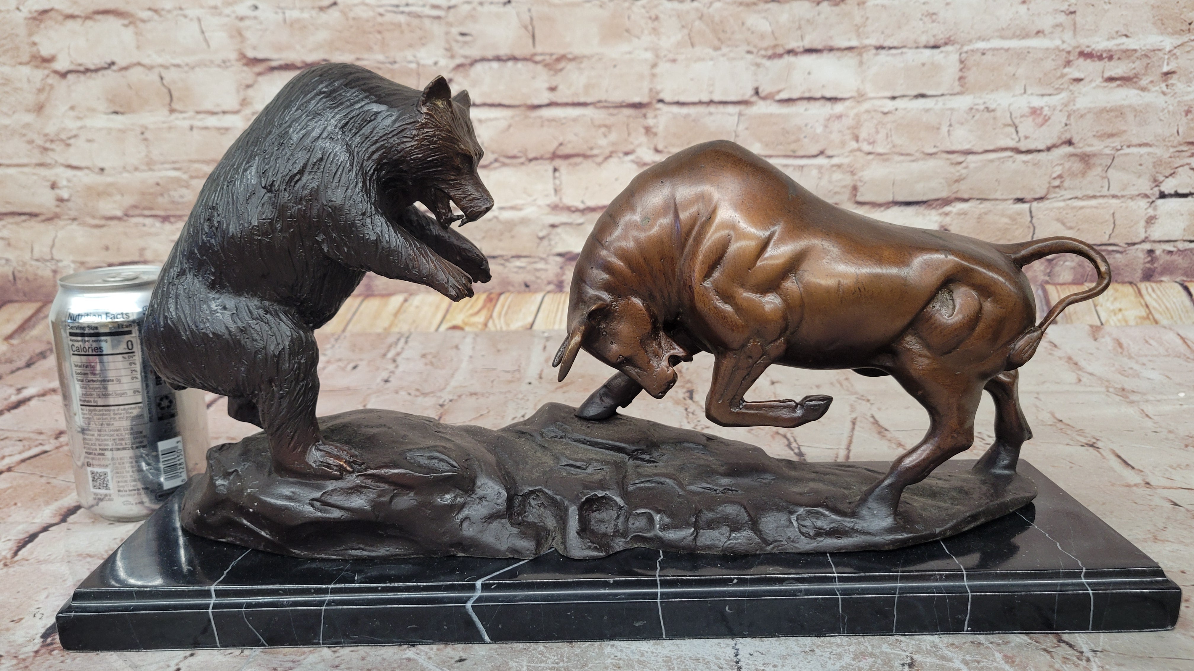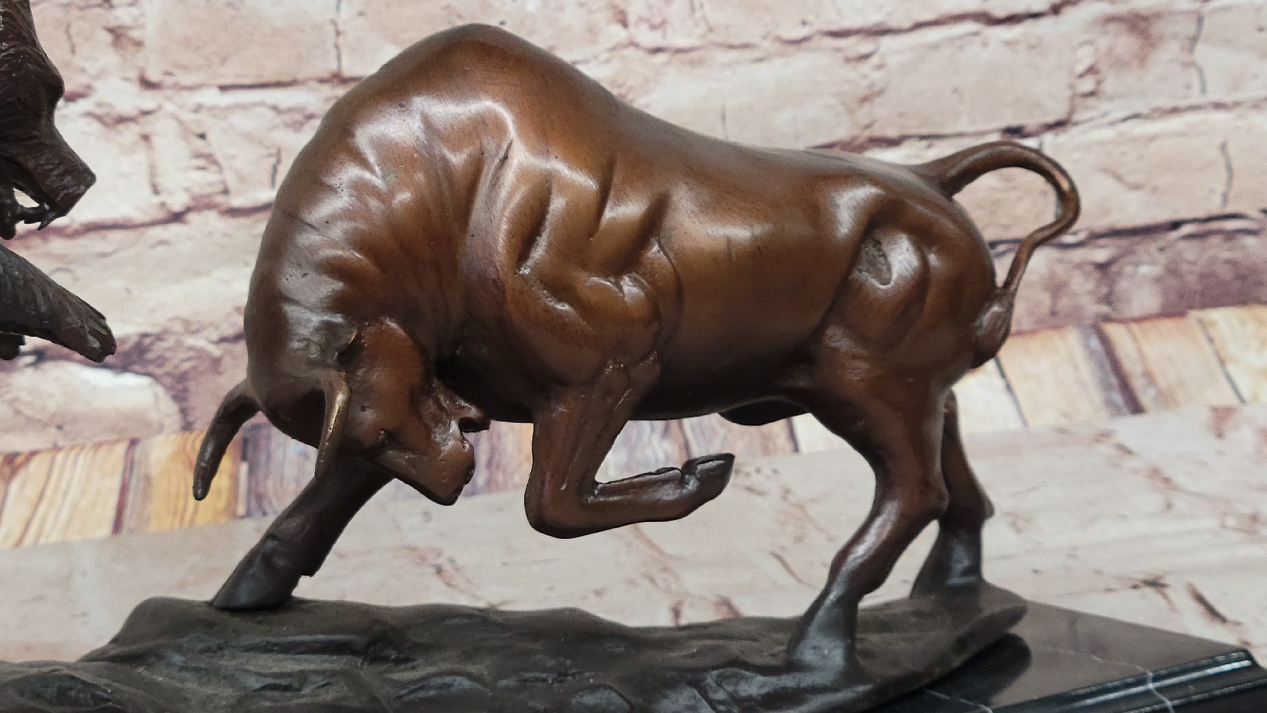 Stock Market Bull vs Bear Bronze Sculpture Marble Base Statue Decor Gift Signed Original Art