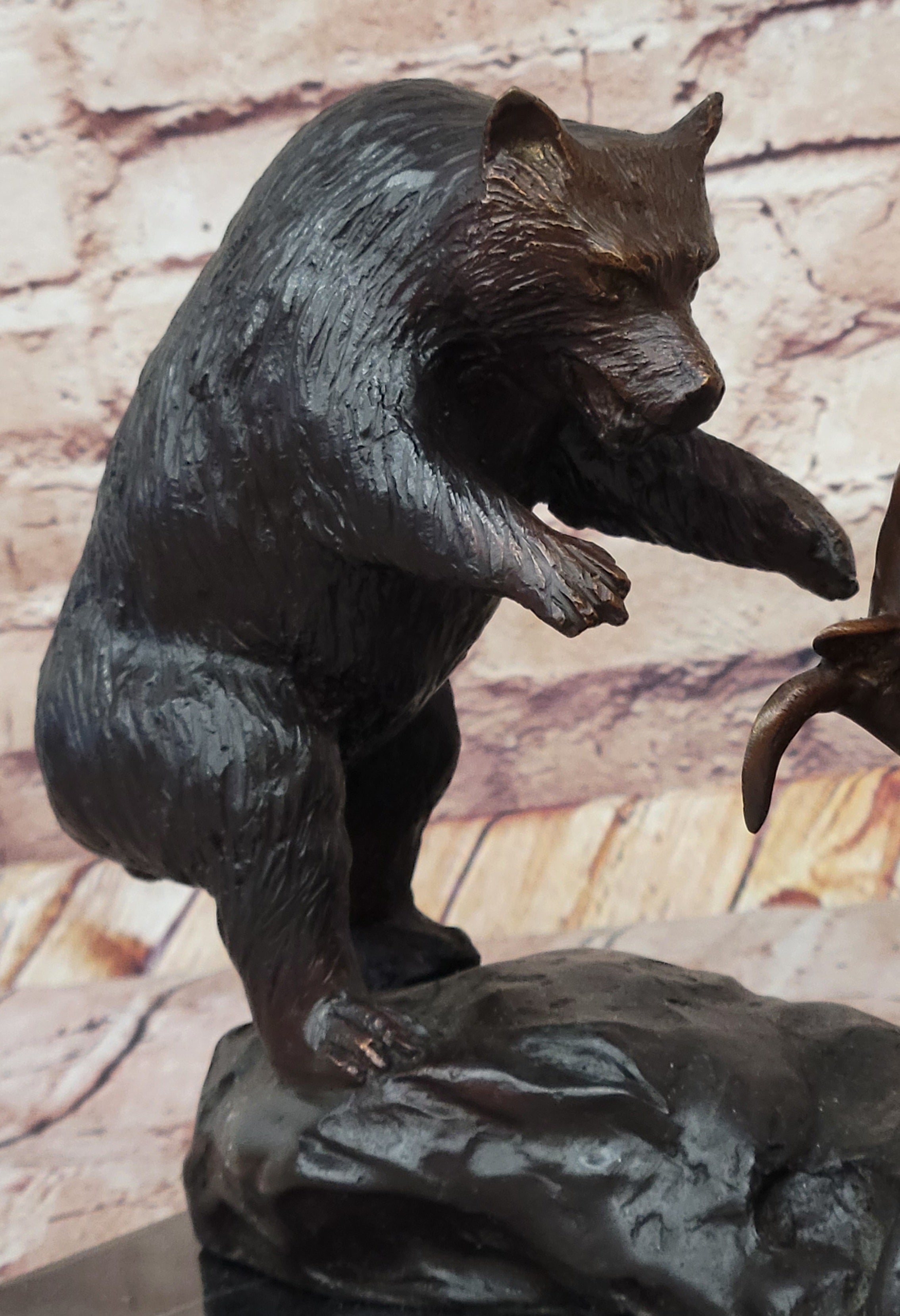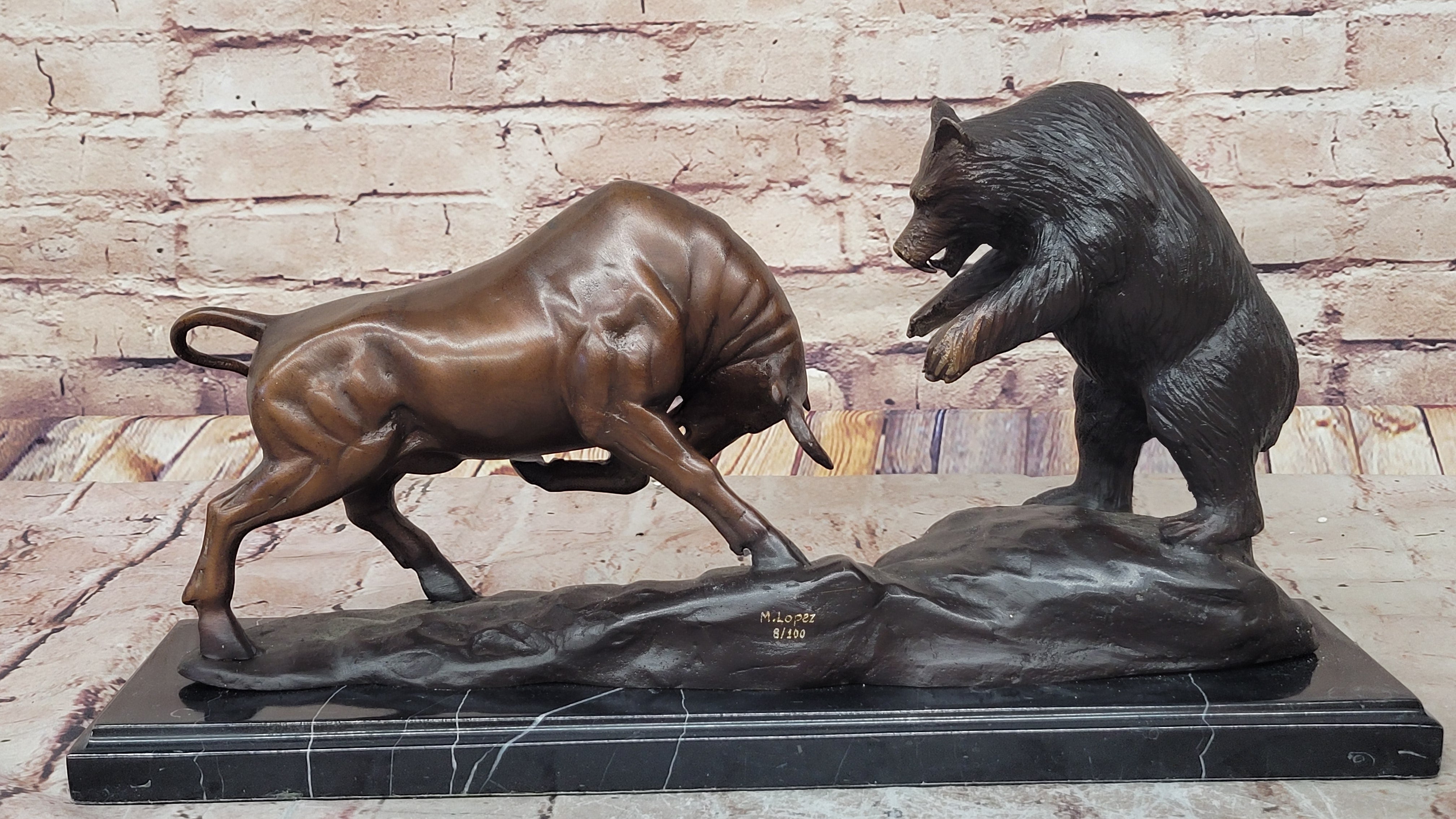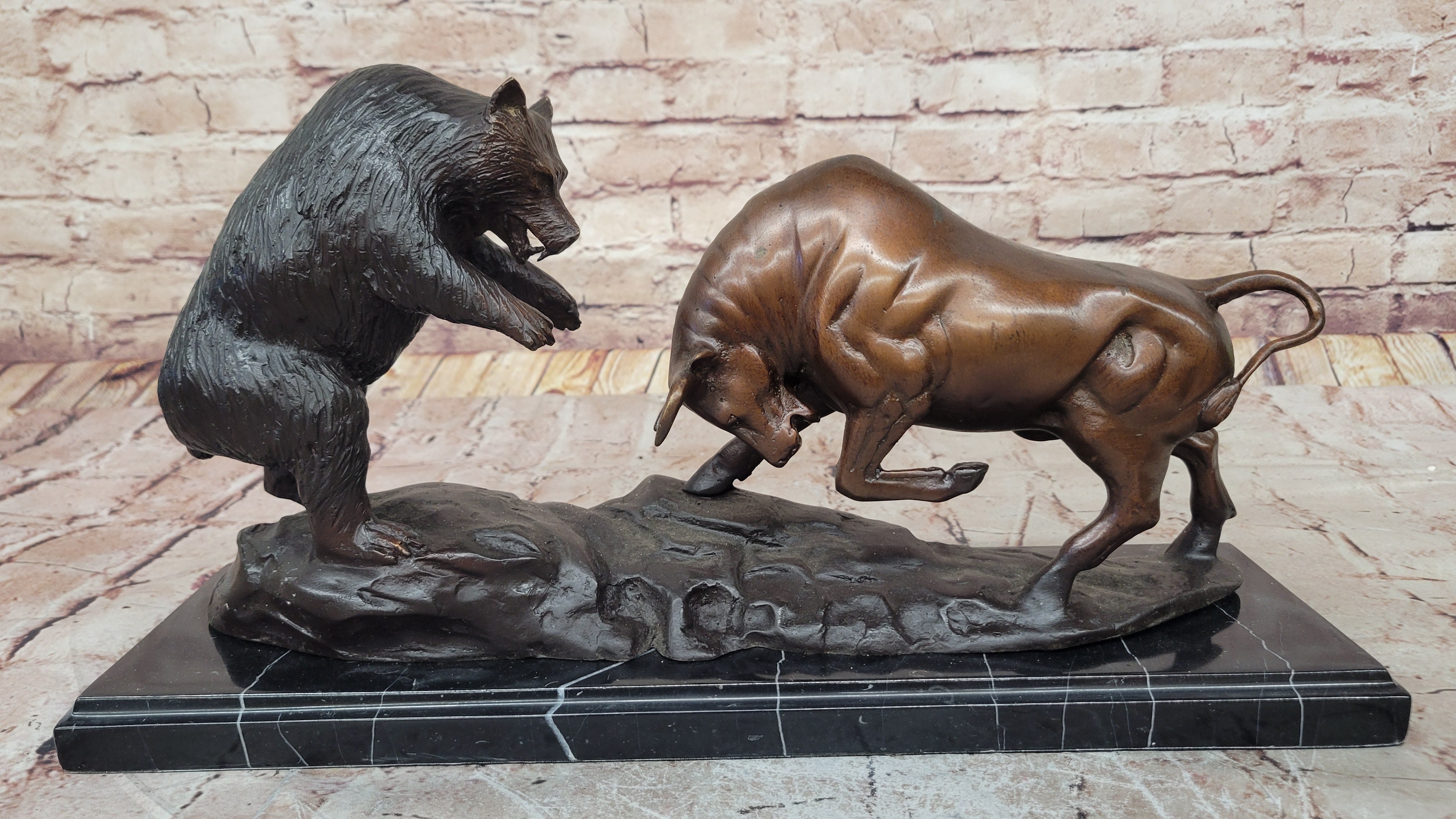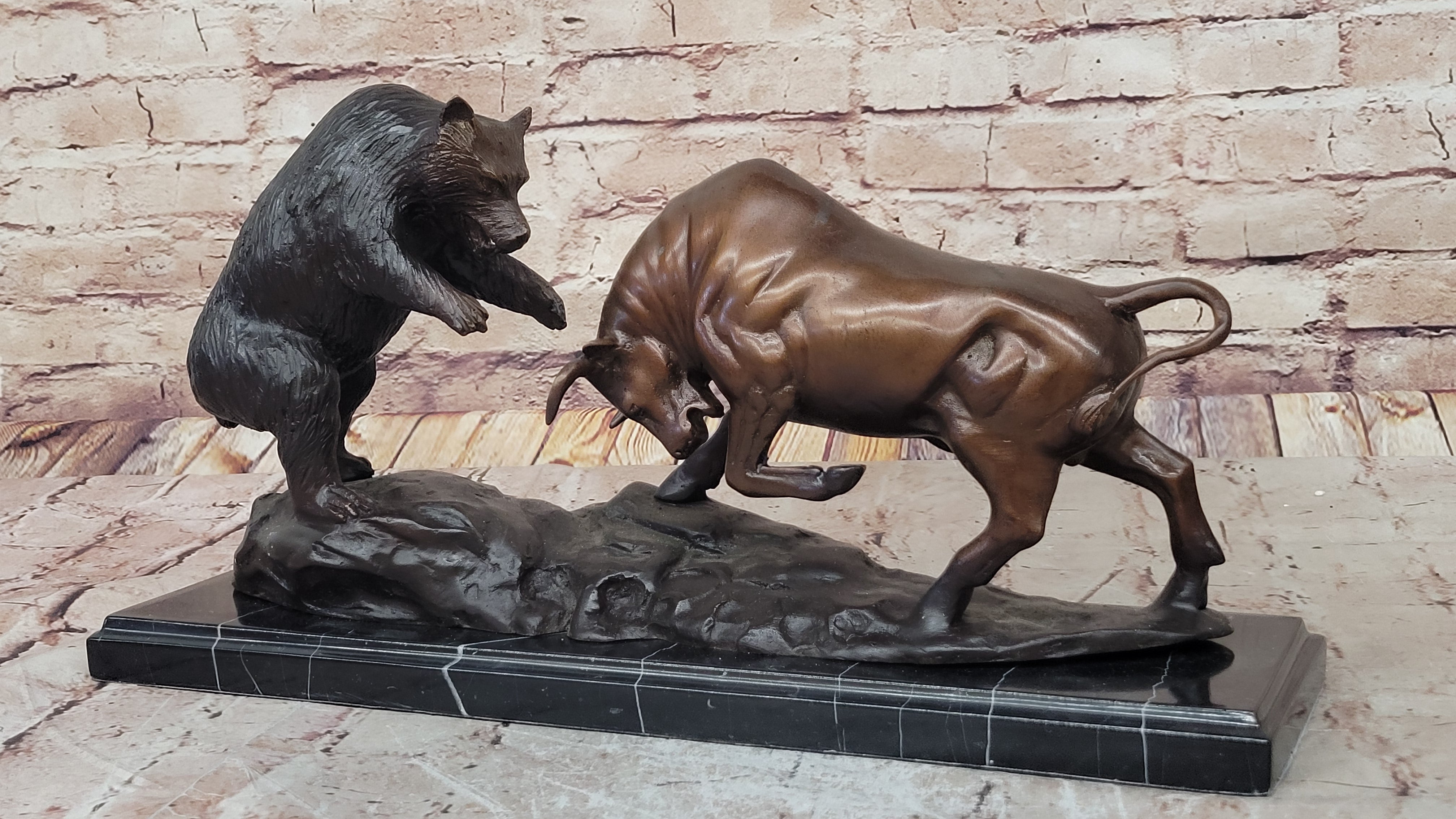 Stock Market Bull vs Bear Bronze Sculpture Marble Base Statue Decor Gift Signed Original Art