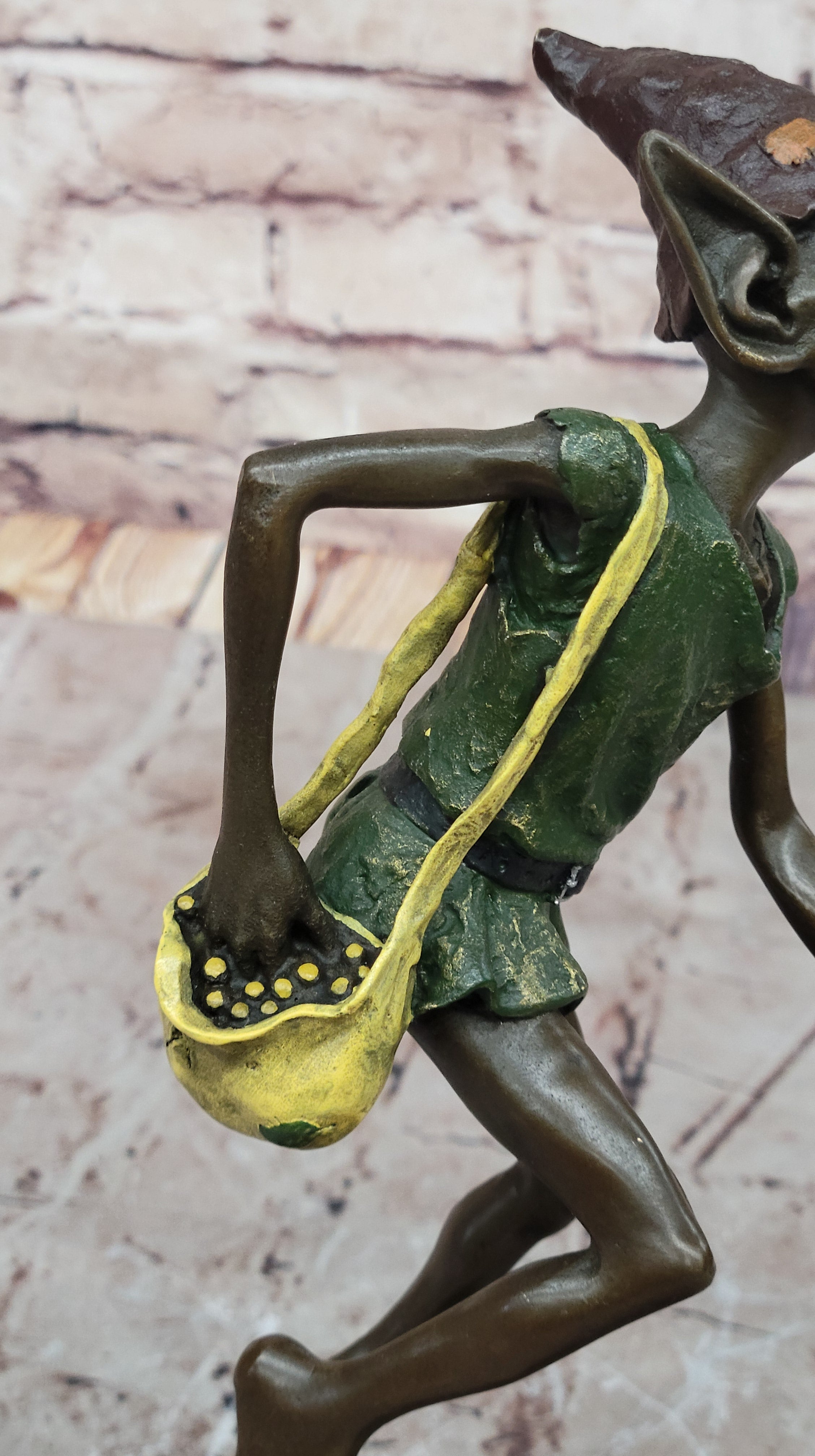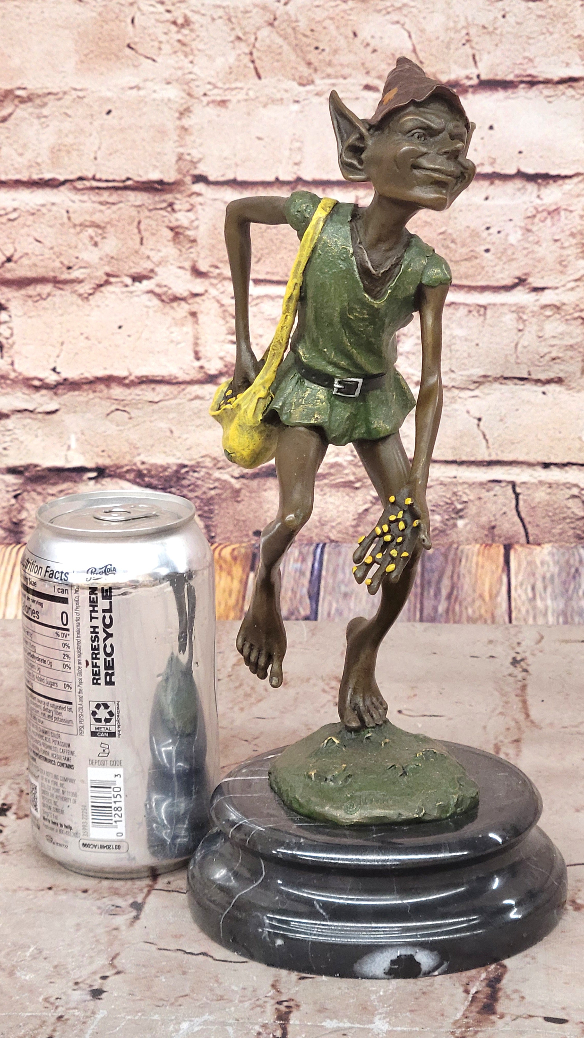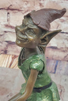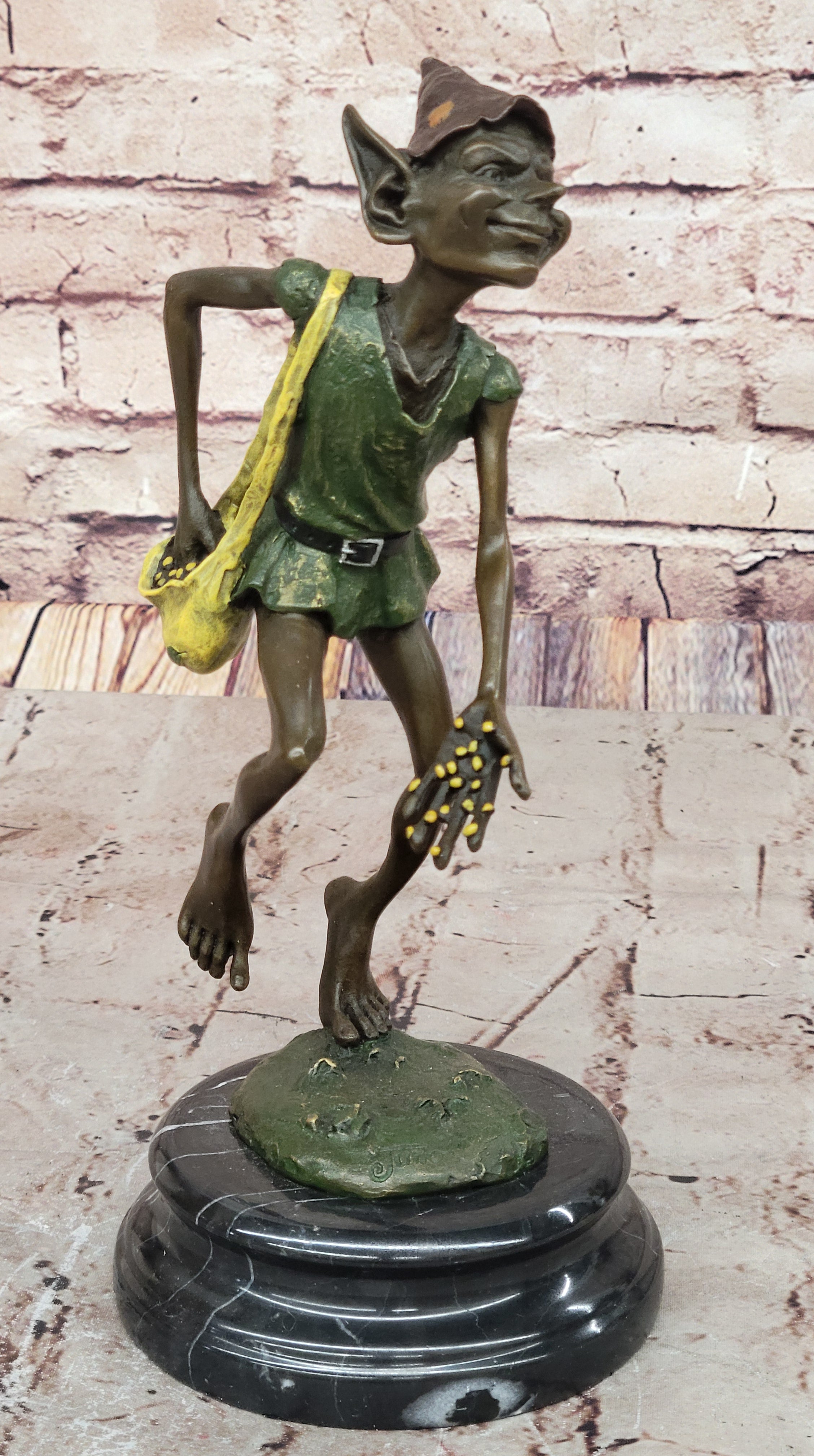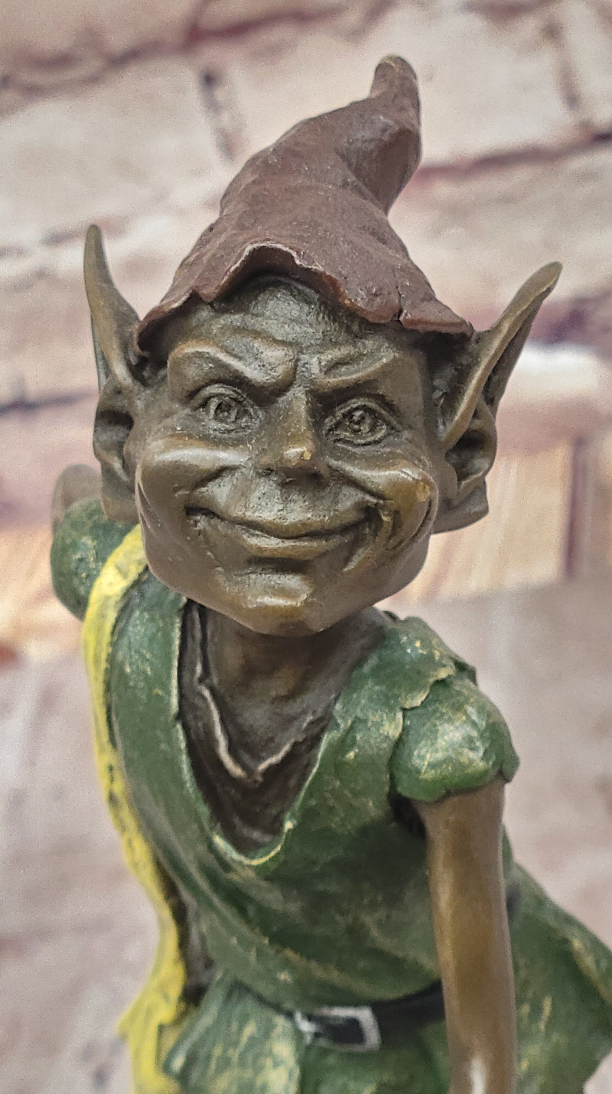 Bronze Elf Leprechaun Figurine Fantasy Sculpture on Marble Base by Juno