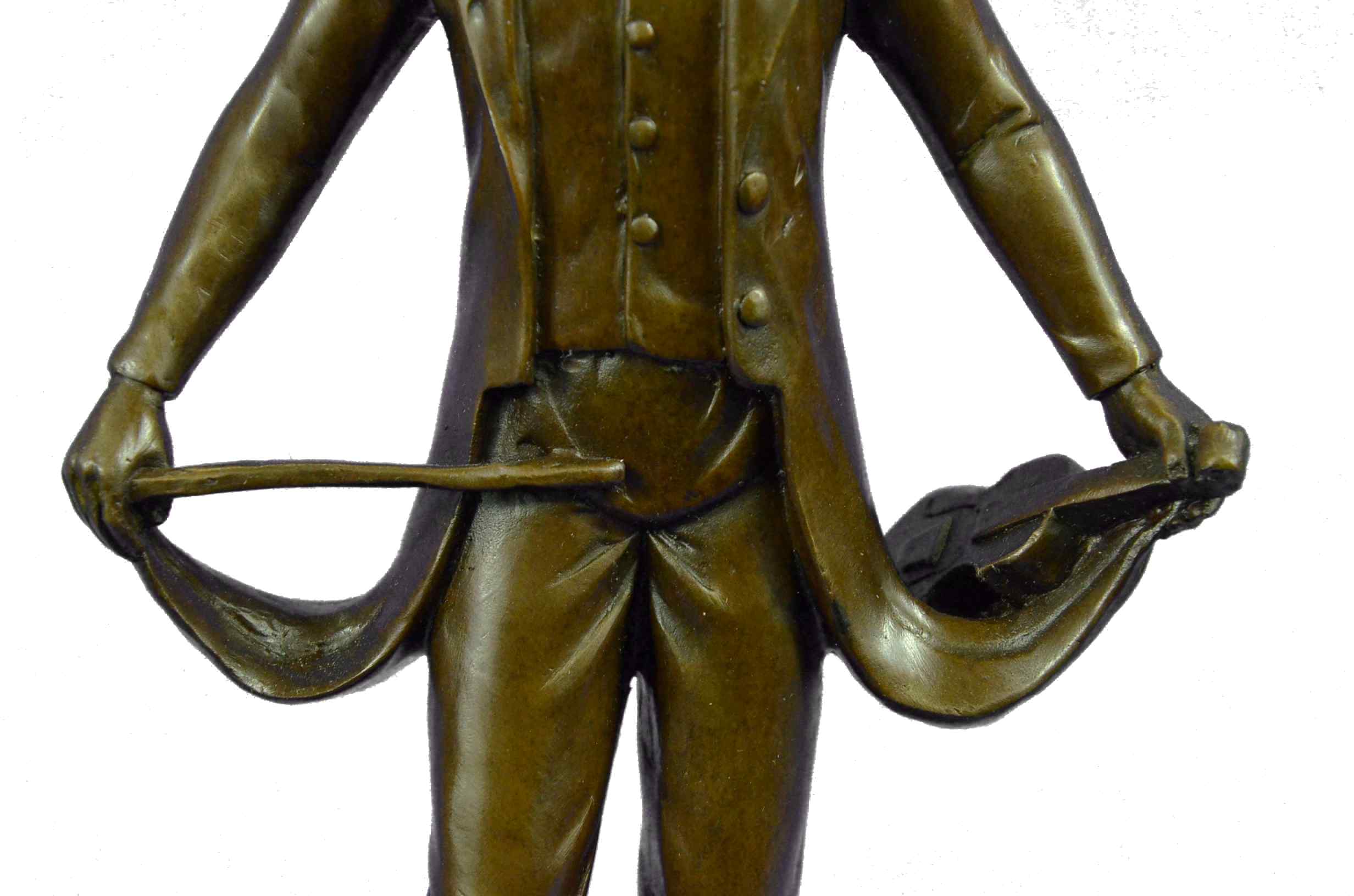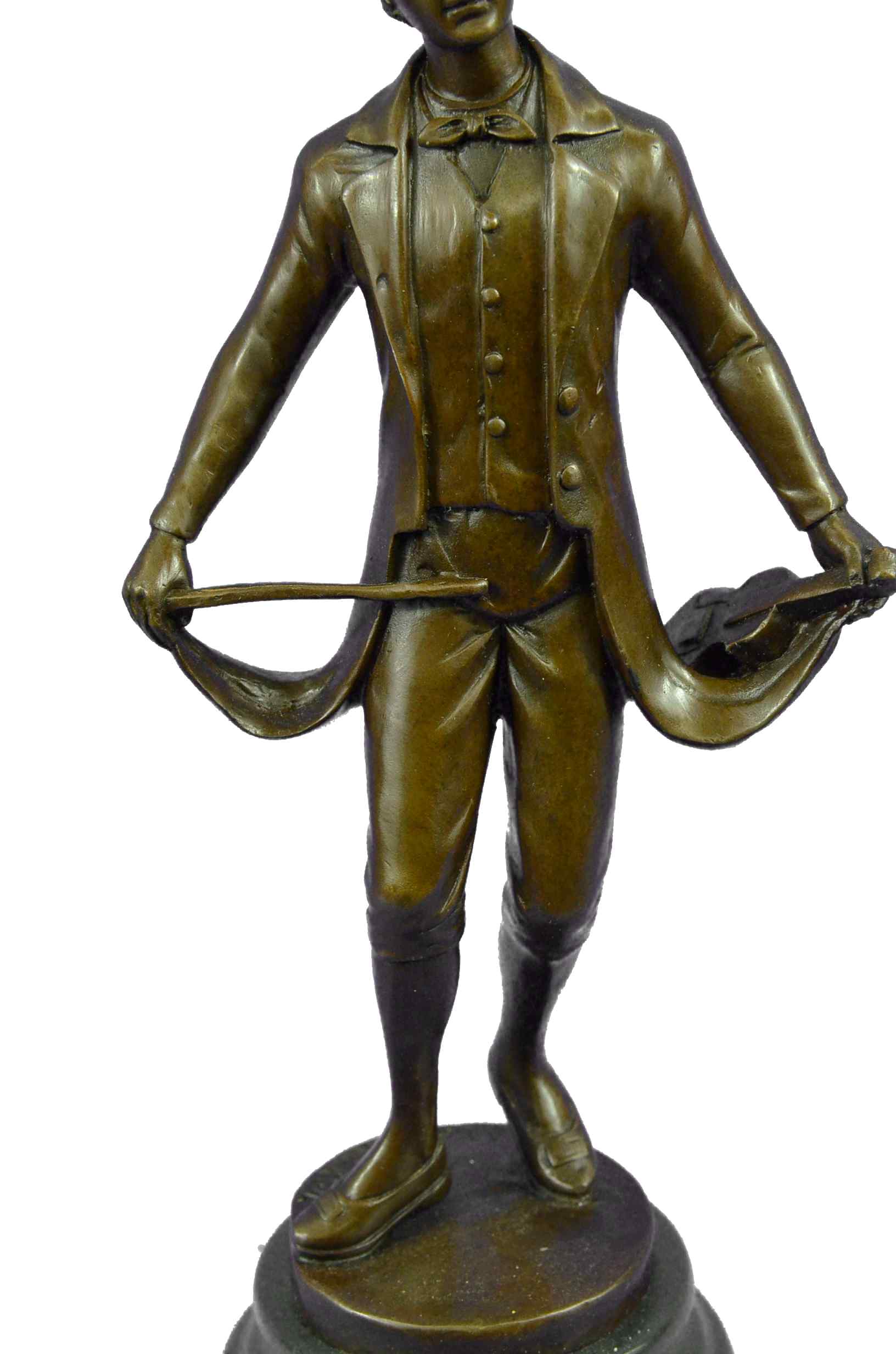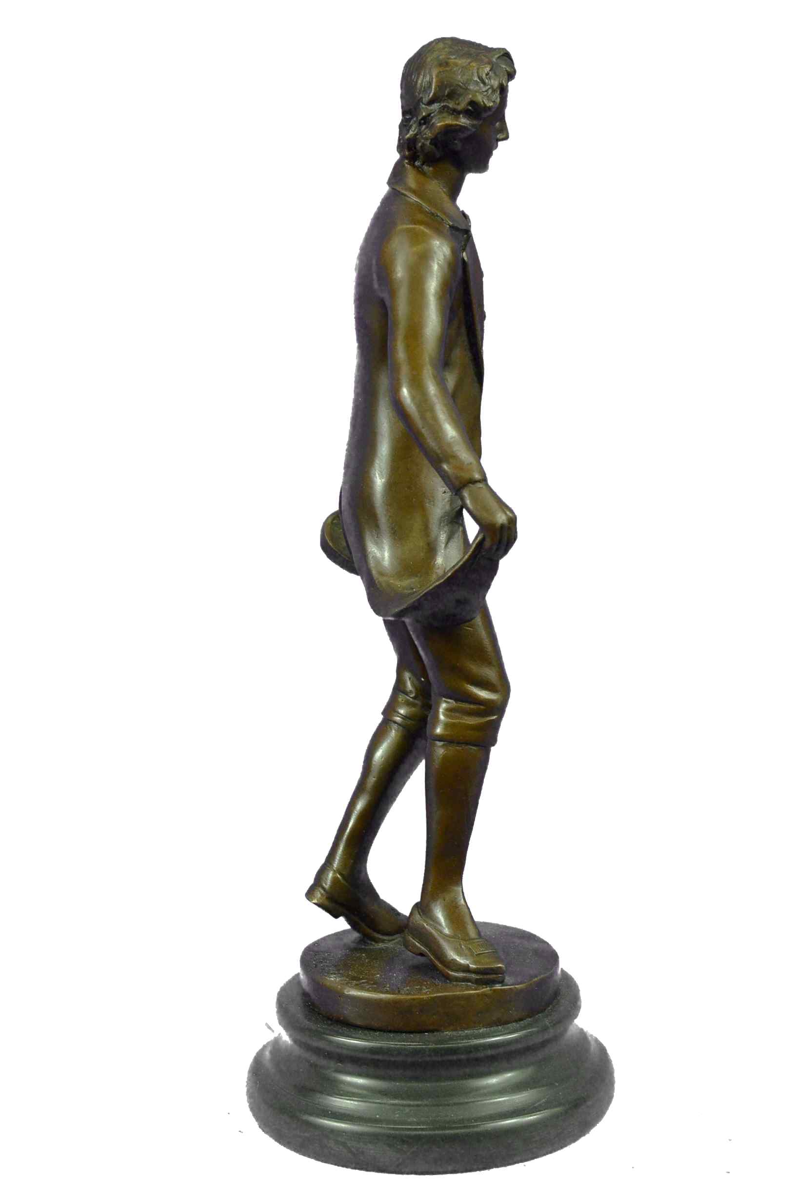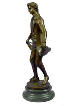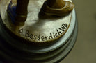 This is an elegant sculpture of the masterful classical music composer Ludwig von Beethoven standing in quiet contemplation. The attention to detail is fantastic and the sculpture is extremely lifelike. It is quite a classy sculpture and this sculpture will be sure to add a touch of class to any space in your home. This Bronze Sculpture was casted using the "Lost Wax Method". It has a brown patina and is mounted on a marble base and is signed Besserdich. This bronze sculpture is the perfect gift to give to a pianist.Bronze Dimensions with Marble Base:Height 13.5" x Width 6"