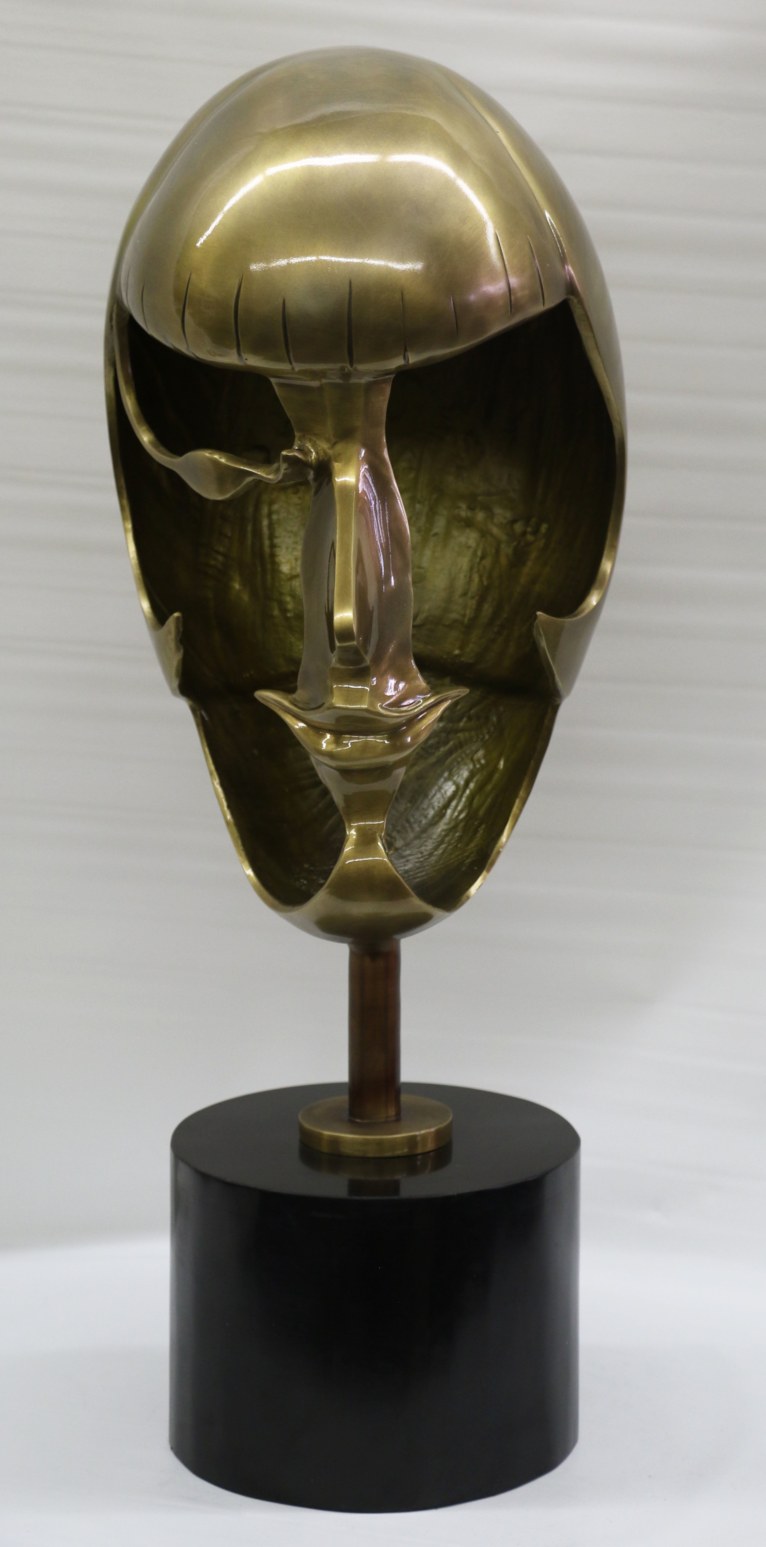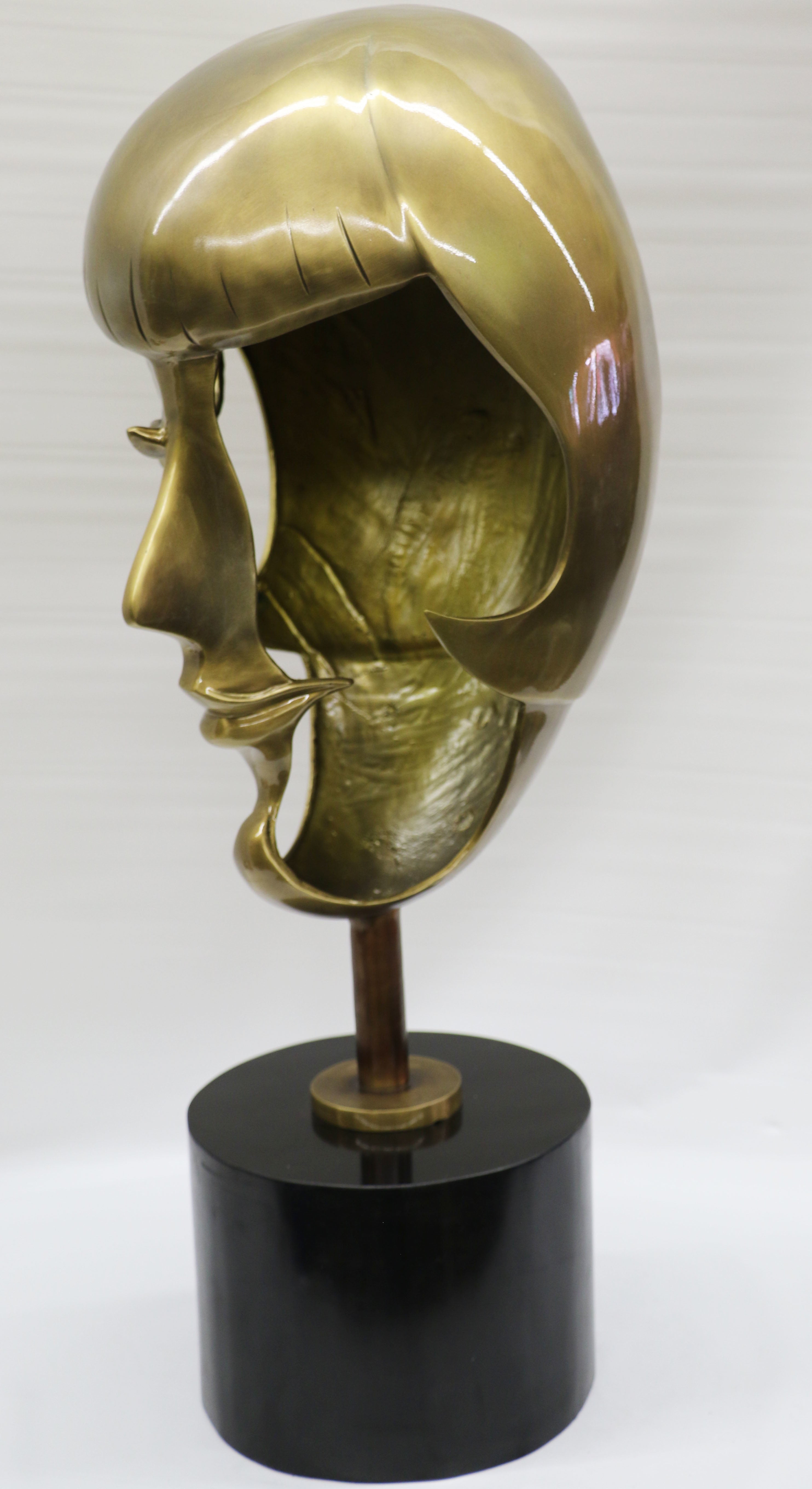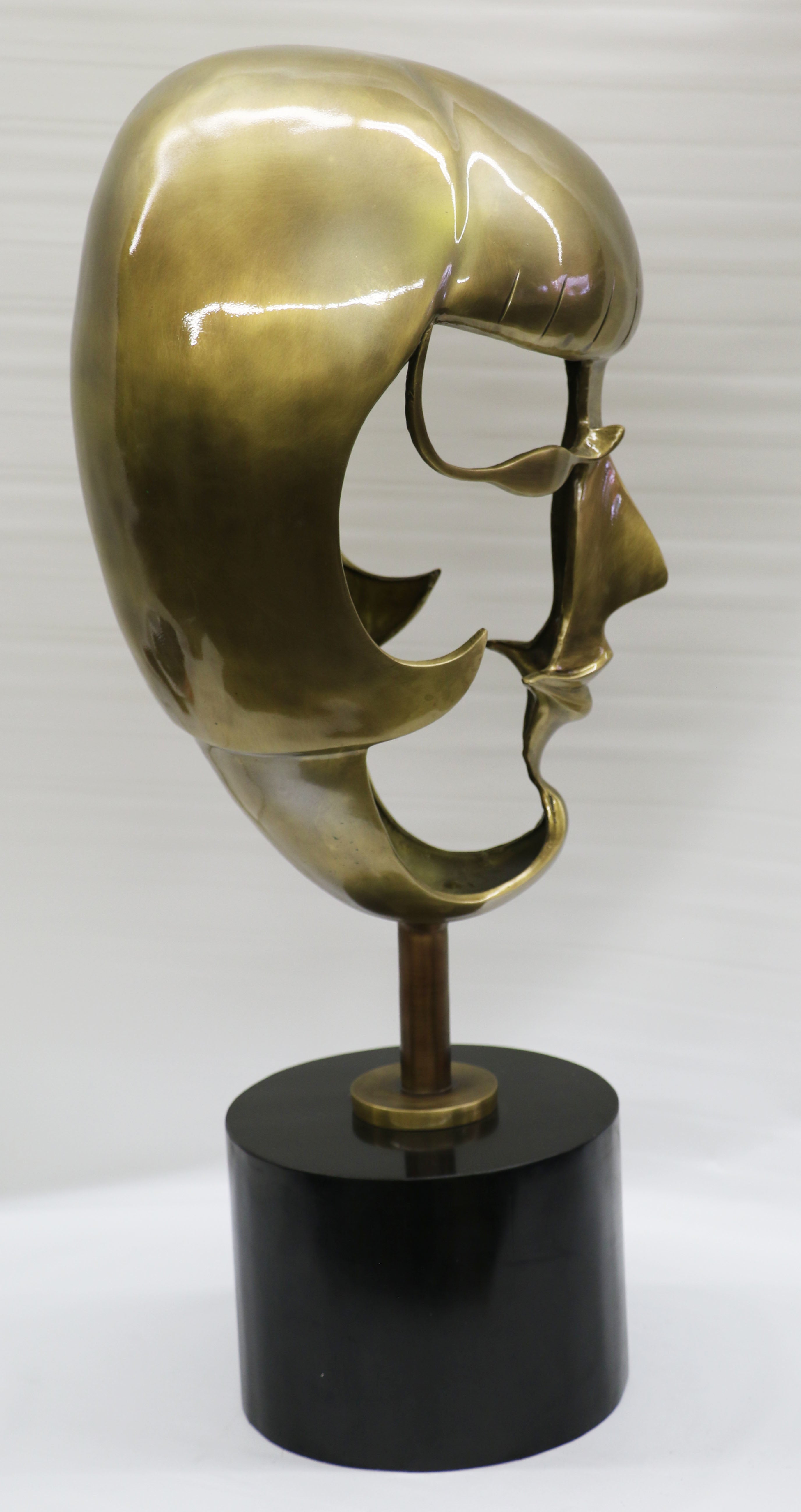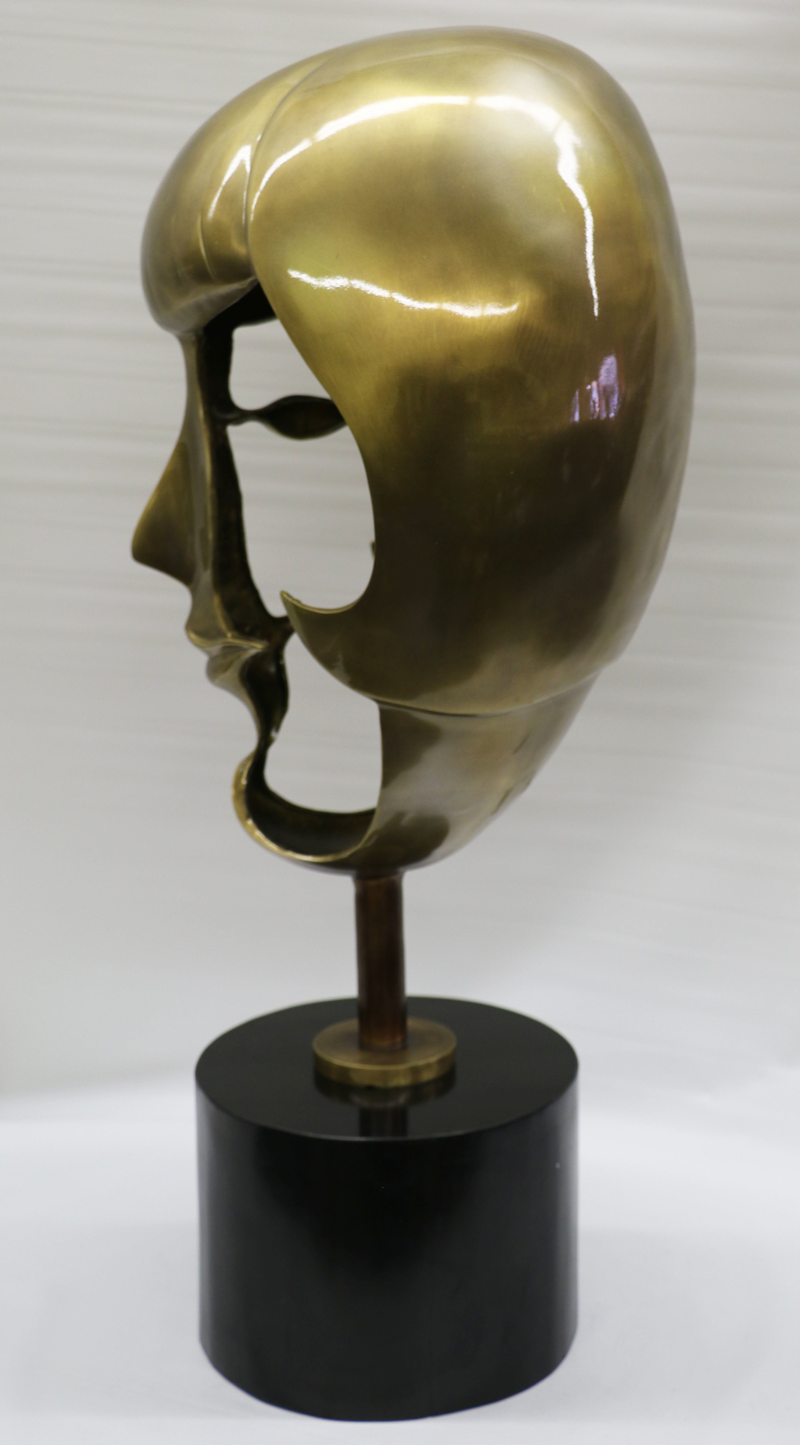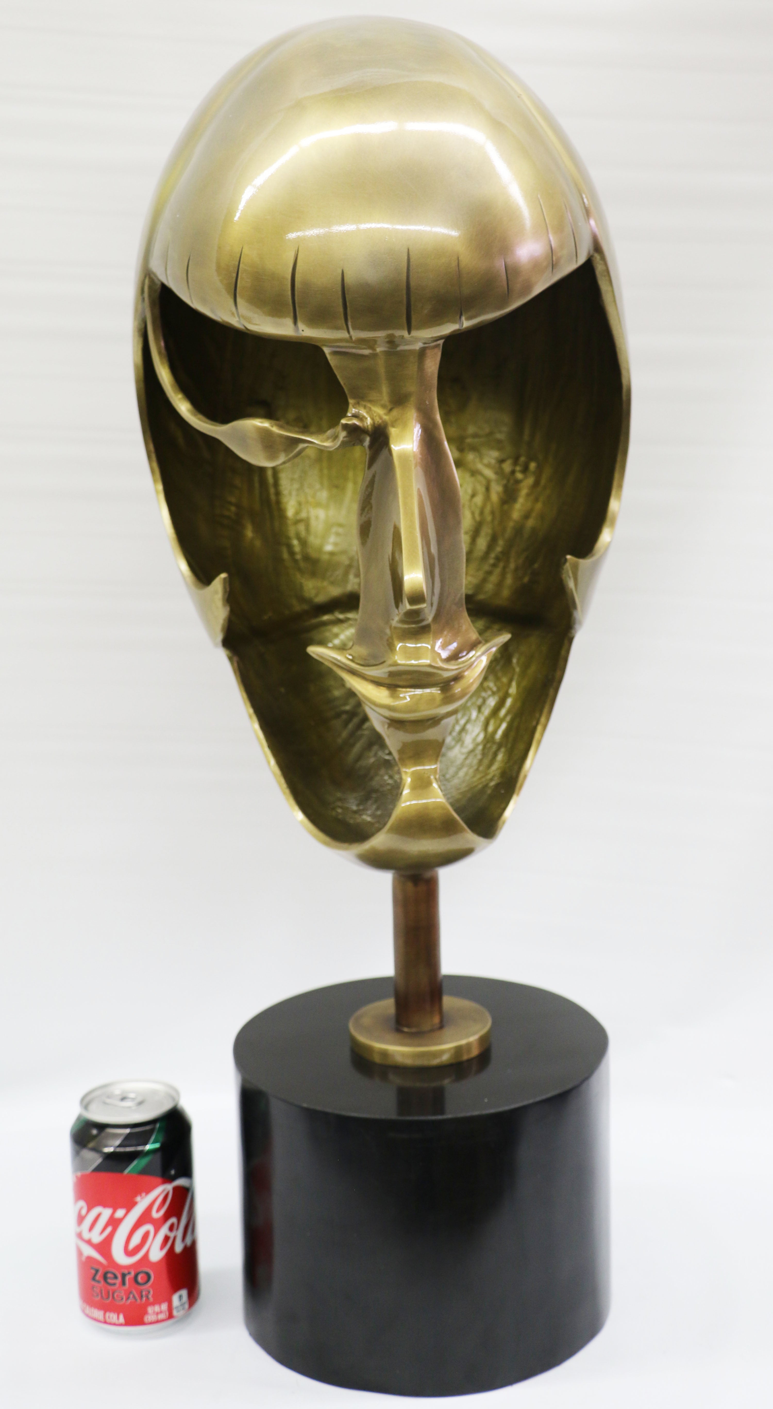 The modern art sculpture with the title “Silence” is an abstract figure that was created as homage to the great artist Salvador Dali, the amazing Surrealism artist. “Silence” is a simple designed sculpture of a face that is designed like a mask and asking for silence by its raised index finger. This modern bronze sculpture was made of 100% finest bronze and was affixed on a solid base made of marble. Little details like the filigree and detailed designed facial expression make this bronze a real high quality product. “Silence” got perfected by a signature of the artist.Bronze Dimensions with Marble Base:Height 28" X Width 10"