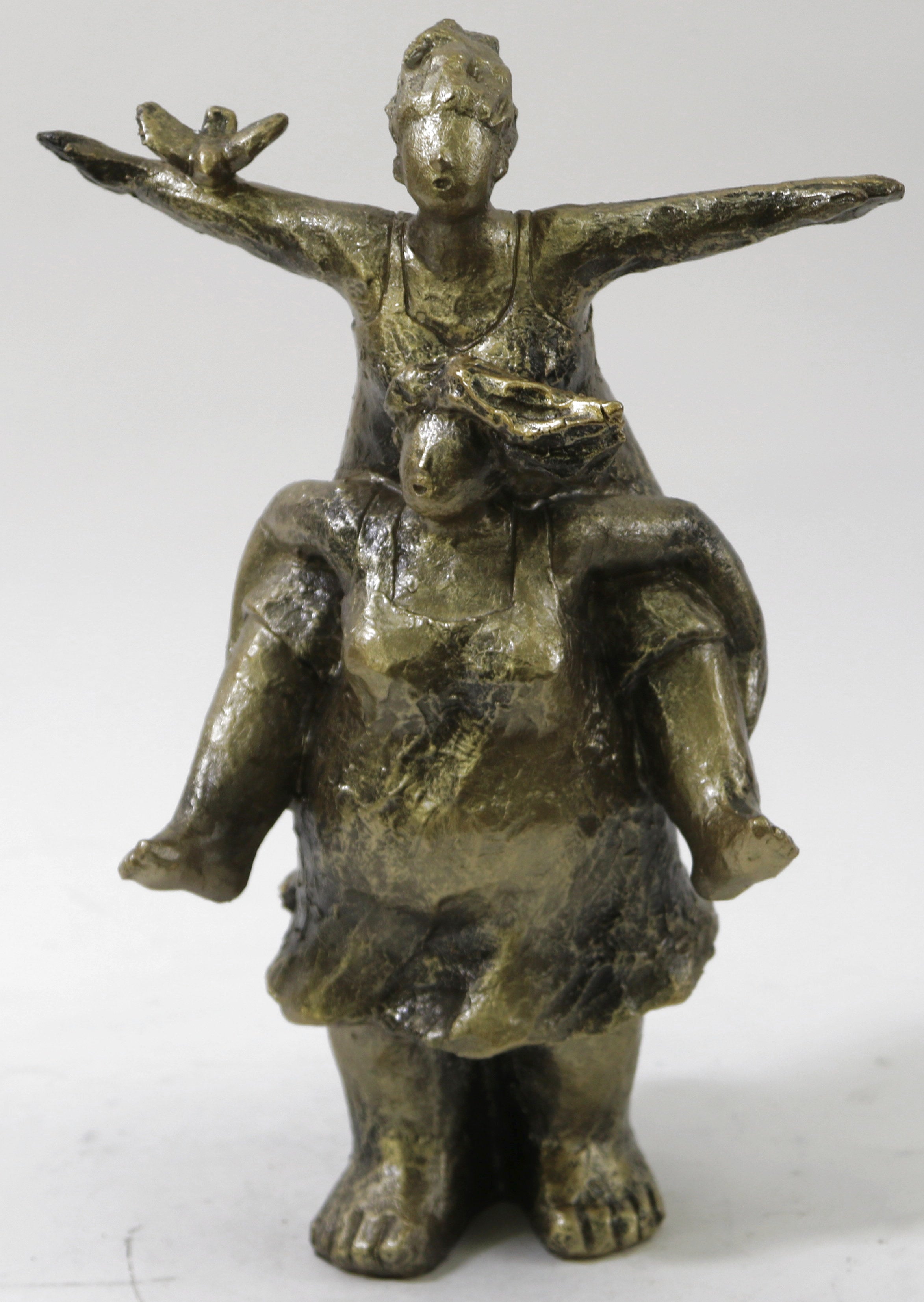 A Tribute to Botero Piggy Back Faux Bronze Sculpture Figurine Figure