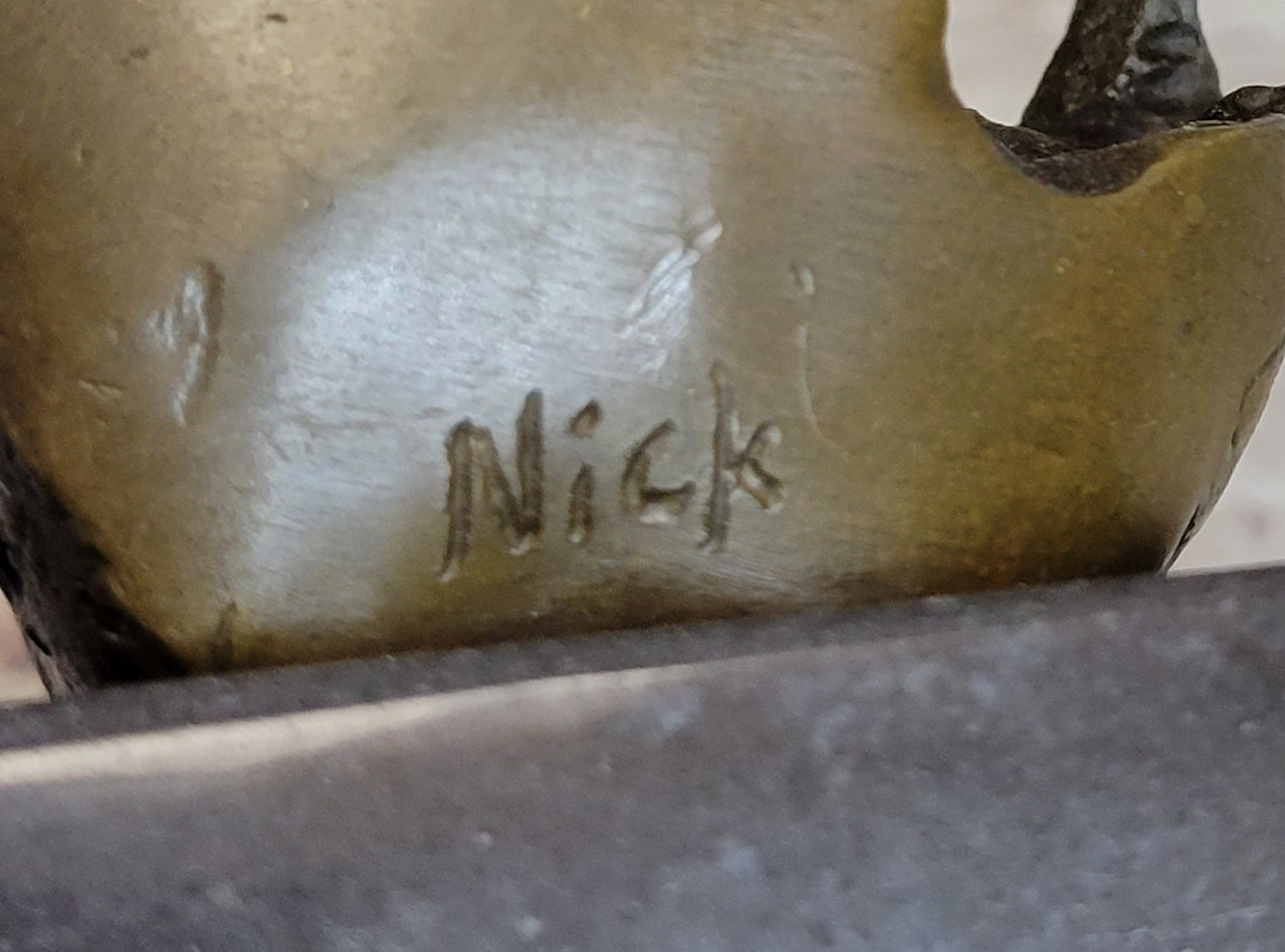 Signed by the talented artist Mario Nick, this bronze sculpture is a testament to his unique artistic vision and meticulous craftsmanship. It invites viewers to explore the boundaries of abstract art and embrace the evocative power of minimalist expression. Add a touch of contemporary allure to your collection with "The Sitting One" and elevate your space with its captivating presence.Bronze Dimensions with Marble Base: Height 11.5" X Width 12.5"