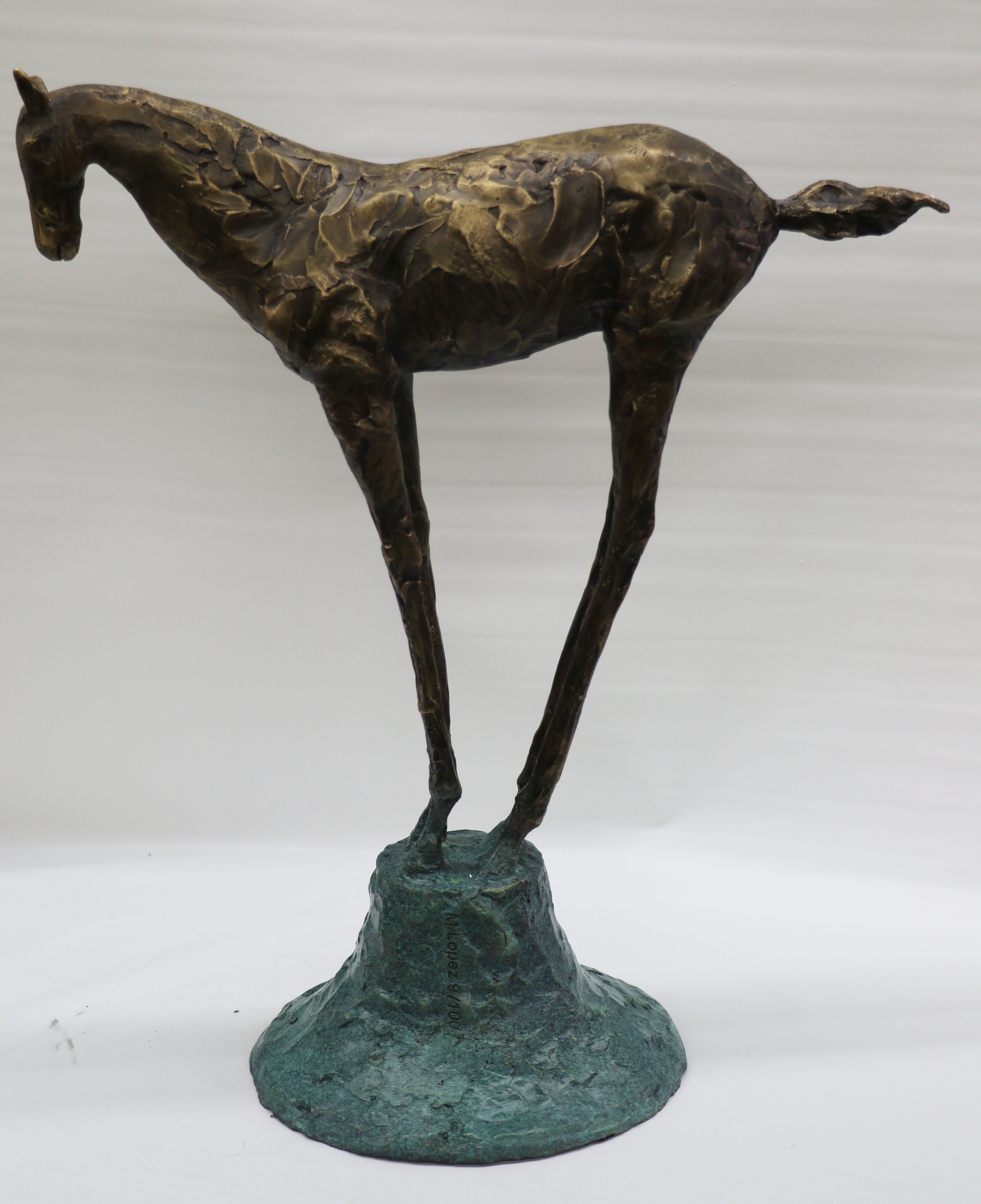 Abstract Modern Art Mid Century Limited Edition Miguel Lopez Horse Bronze Sculpture