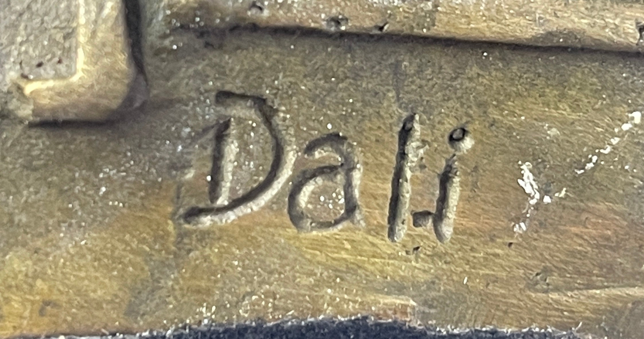 Crafted with meticulous detail and precision, this sculpture was brought to life using the time-honored "Lost Wax Method." This age-old technique, renowned for its ability to preserve intricate details, ensures that every curve and contour is expertly captured in solid bronze. The sculpture is adorned with a rich brown patina finish that enhances its artistic allure. Adding to its prestige, the artwork bears the signature of the acclaimed artist Dali, further elevating its collectibility and artistic value.