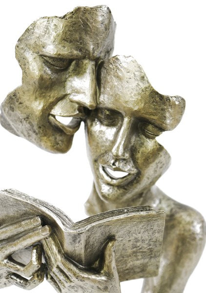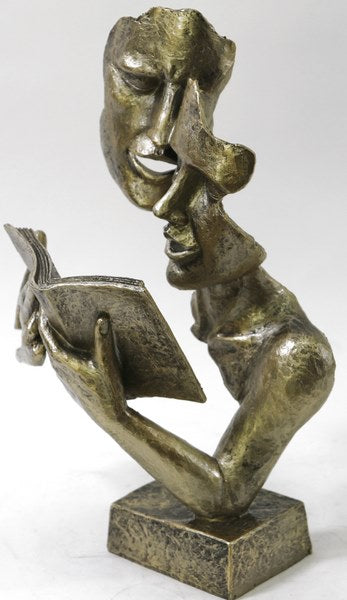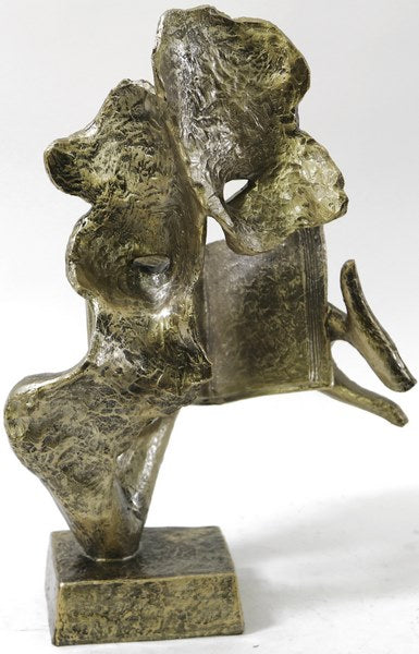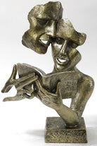 Abstract Modern Artwork Couple Reading Gold Patina Bronzed Sculpture Statue