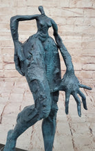 Abstract Surrealist Bronze Sculpture of Elongated Human Form on Base
