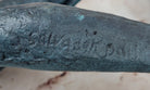 Mounted on a sleek black marble base, the sculpture exudes sophistication and timeless appeal. The dramatic contrast between the green patina and the dark base enhances its visual impact, making it a standout centerpiece for any collection. This limited-edition work is a true celebration of Salvador Dalí’s genius—a bold and evocative statement in modern art that will captivate collectors and art enthusiasts alike.Bronze Dimensions with Marble Base: Height 14.5" X Width 9"