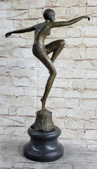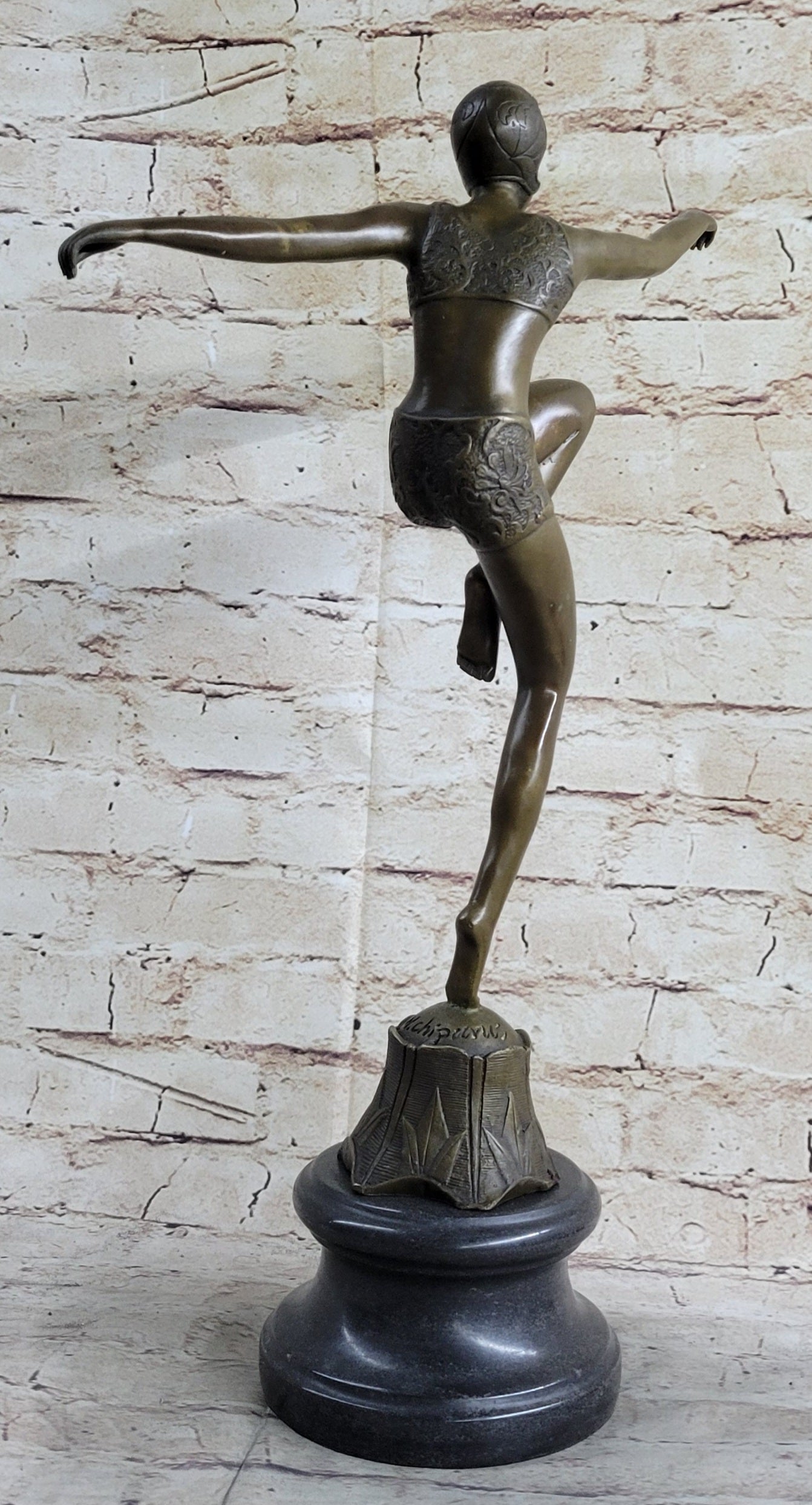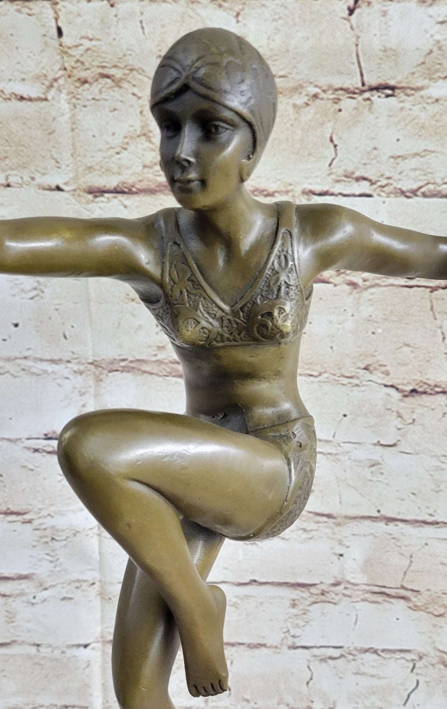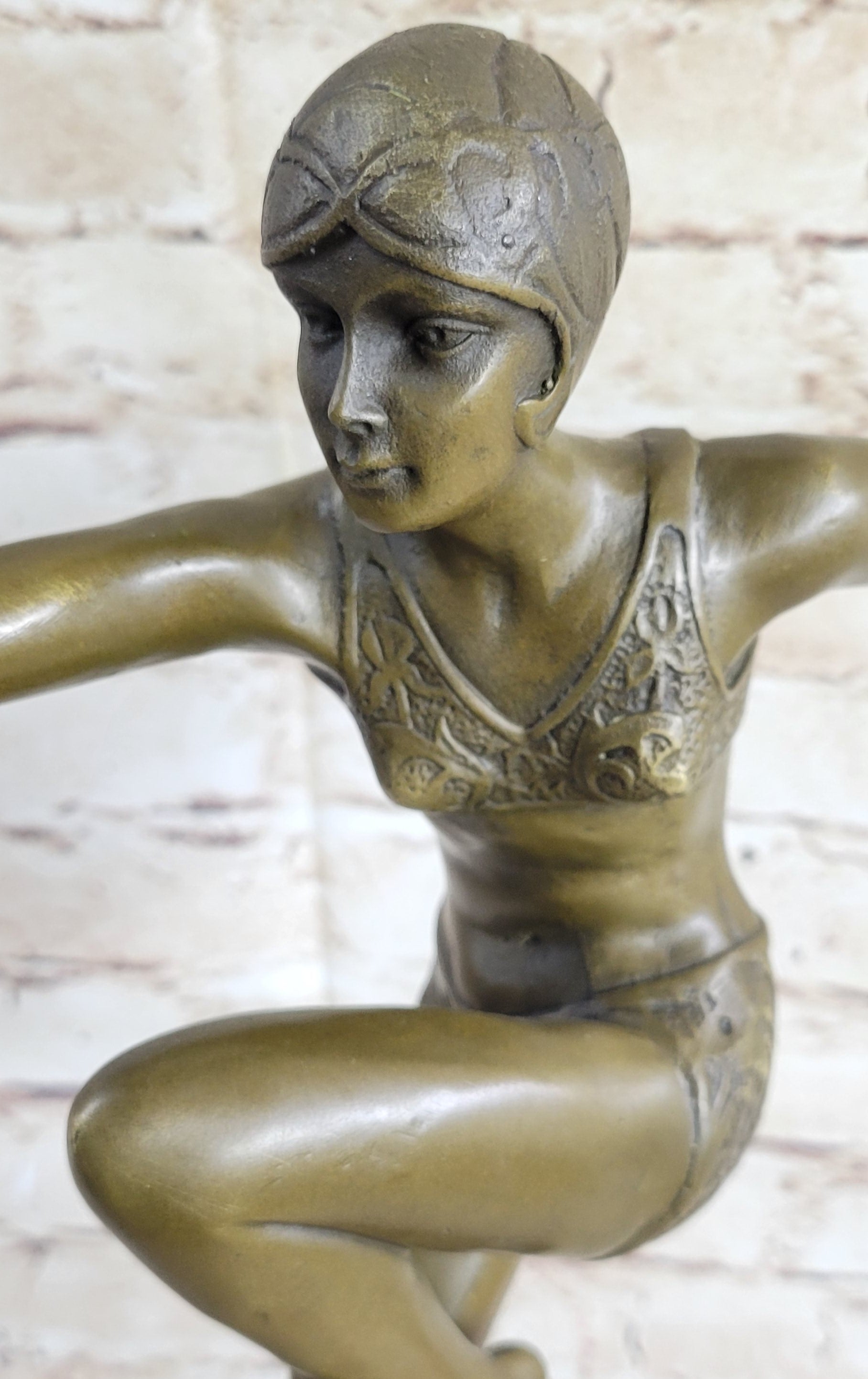 Art Deco Chiparus Swimmer Phoenician Dancer Flapper Girl Bronze Statue Sculpture Figure