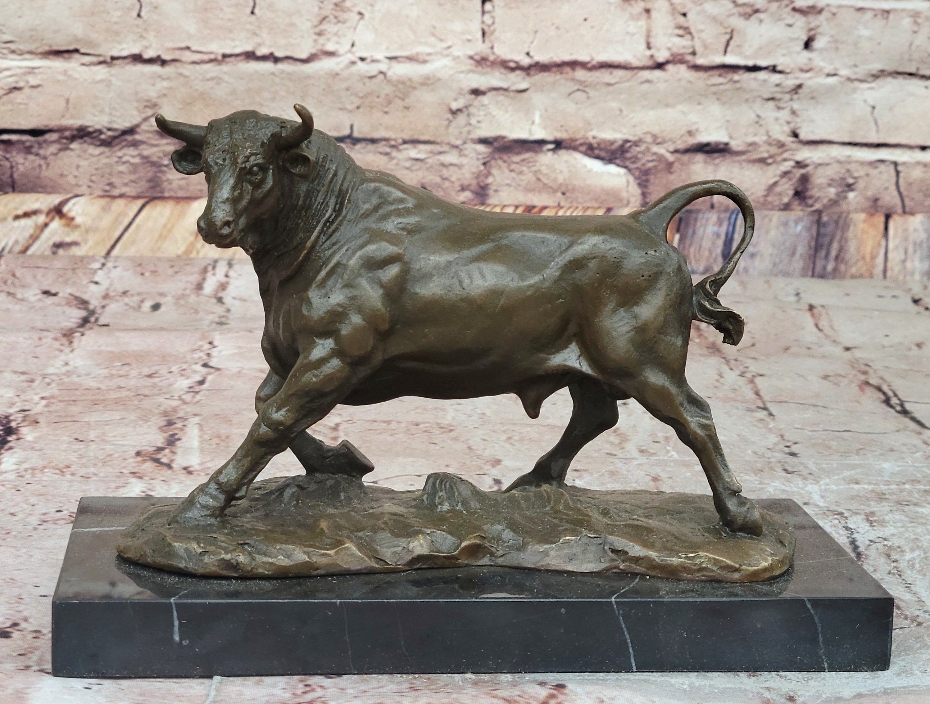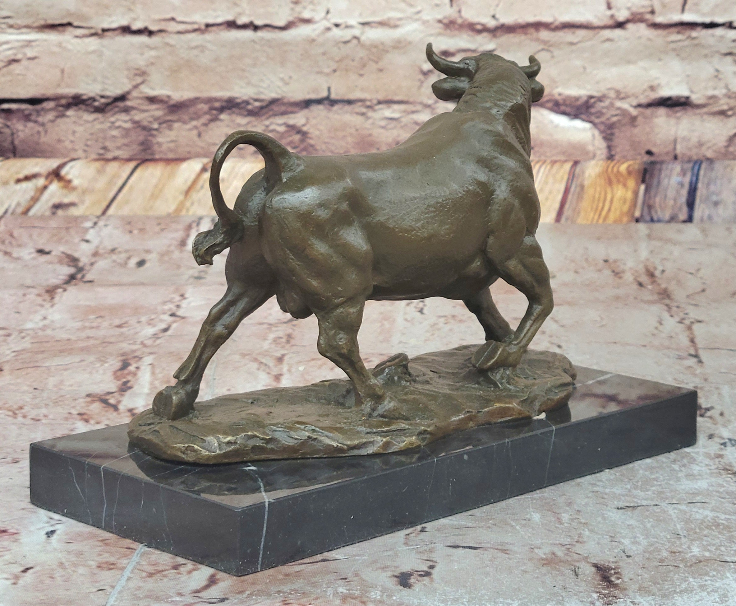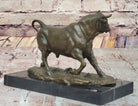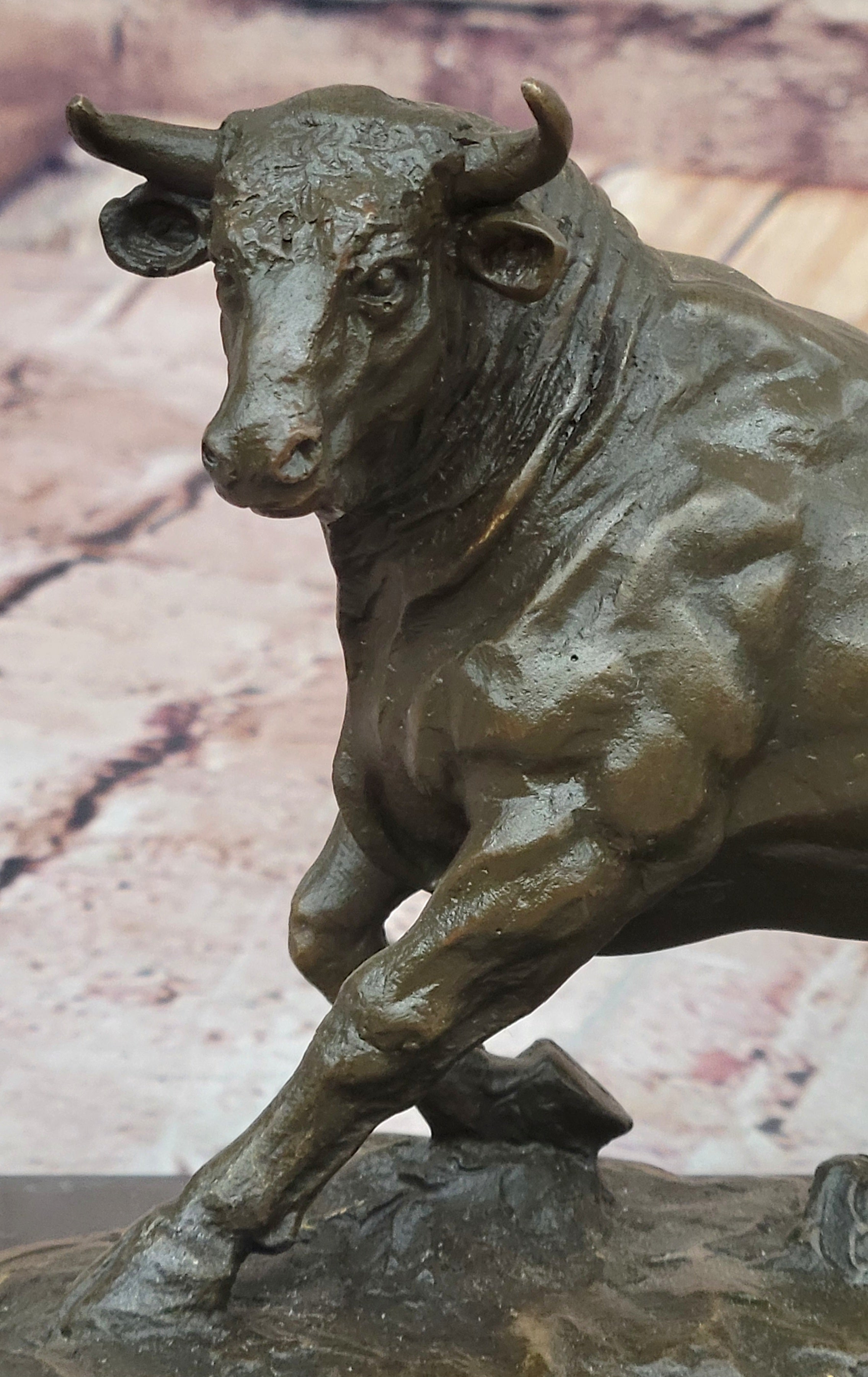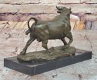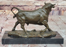 Bronze Charging Bull Sculpture – Powerful Bovine Artwork on Marble Base