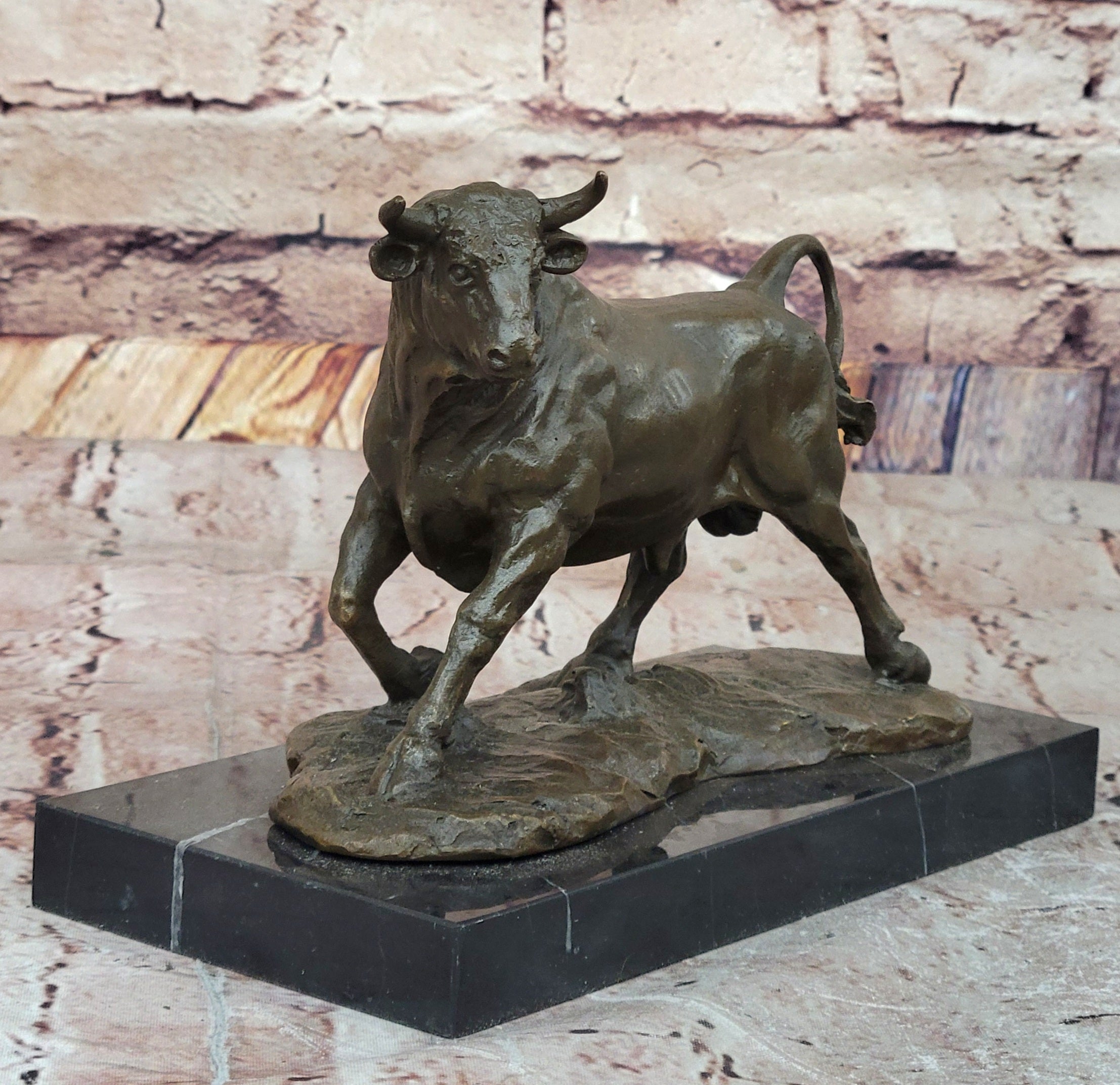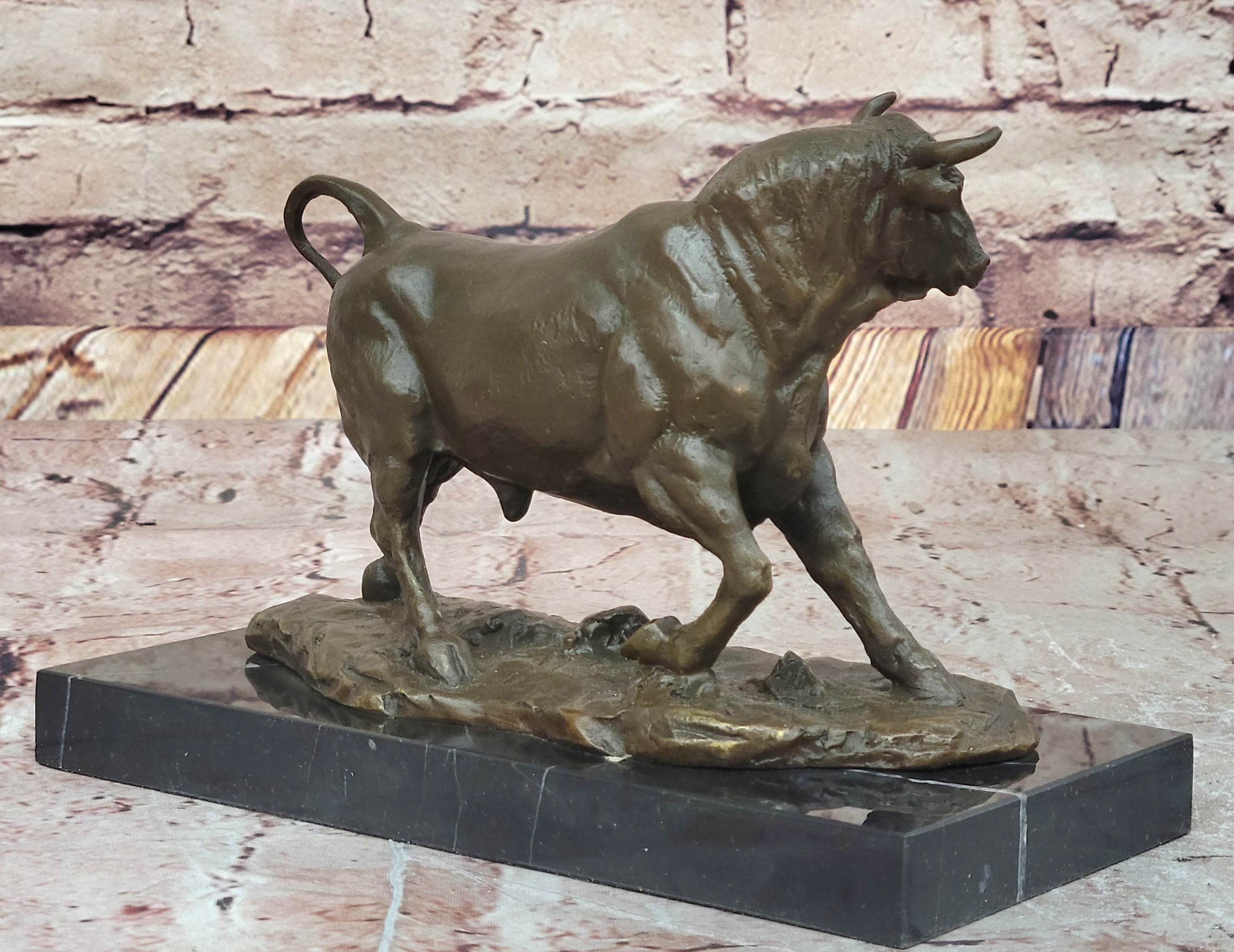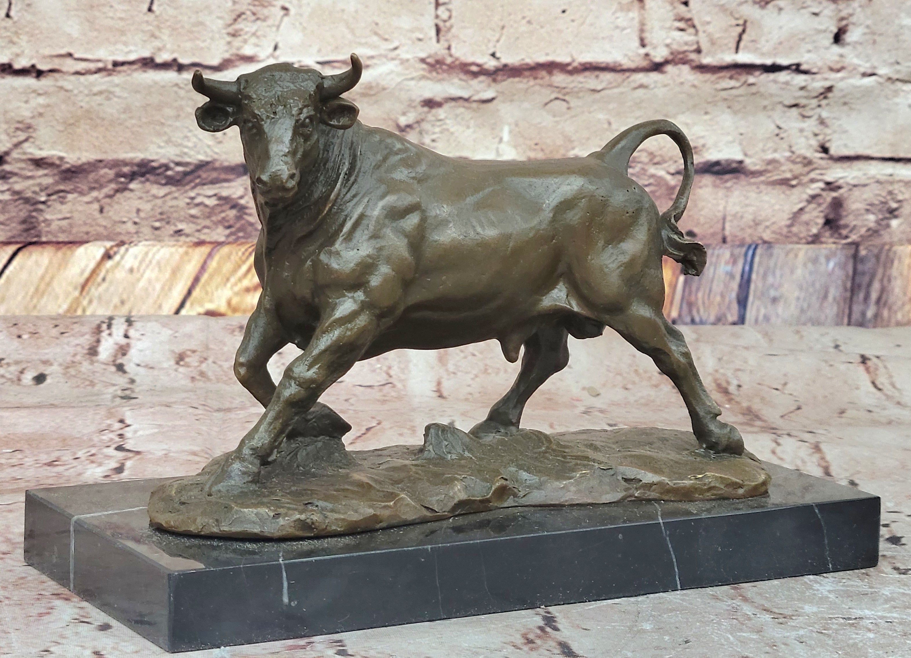 Bronze Charging Bull Sculpture – Powerful Bovine Artwork on Marble Base