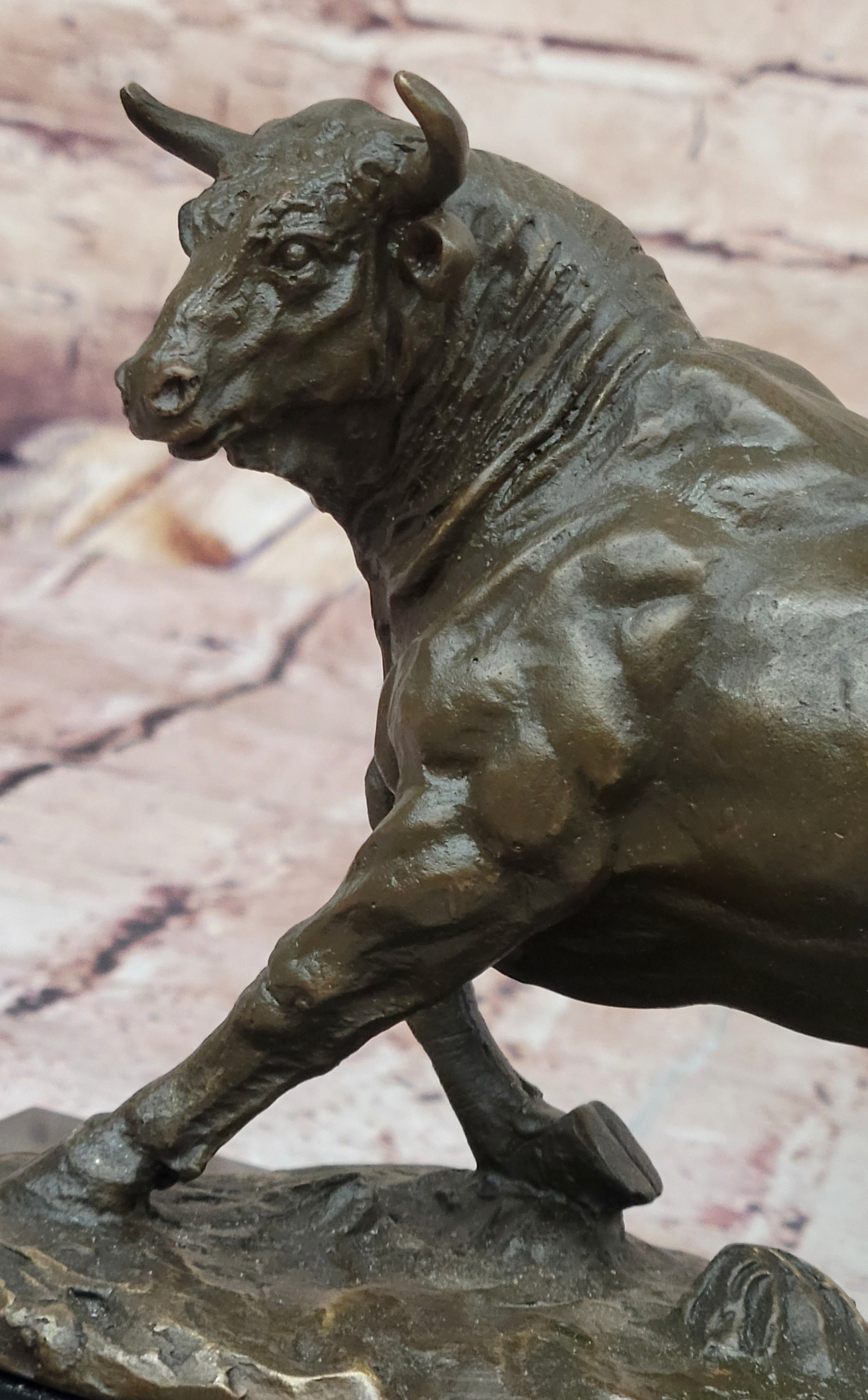 The sculpture showcases the bull mid-motion, with its muscular body poised to strike. Its hooves dig into the ground as it lowers its formidable horns, ready to charge with unstoppable force. The intricate detailing highlights the bull's strength, energy, and fierce nature, creating a piece that is as dramatic as it is lifelike.
