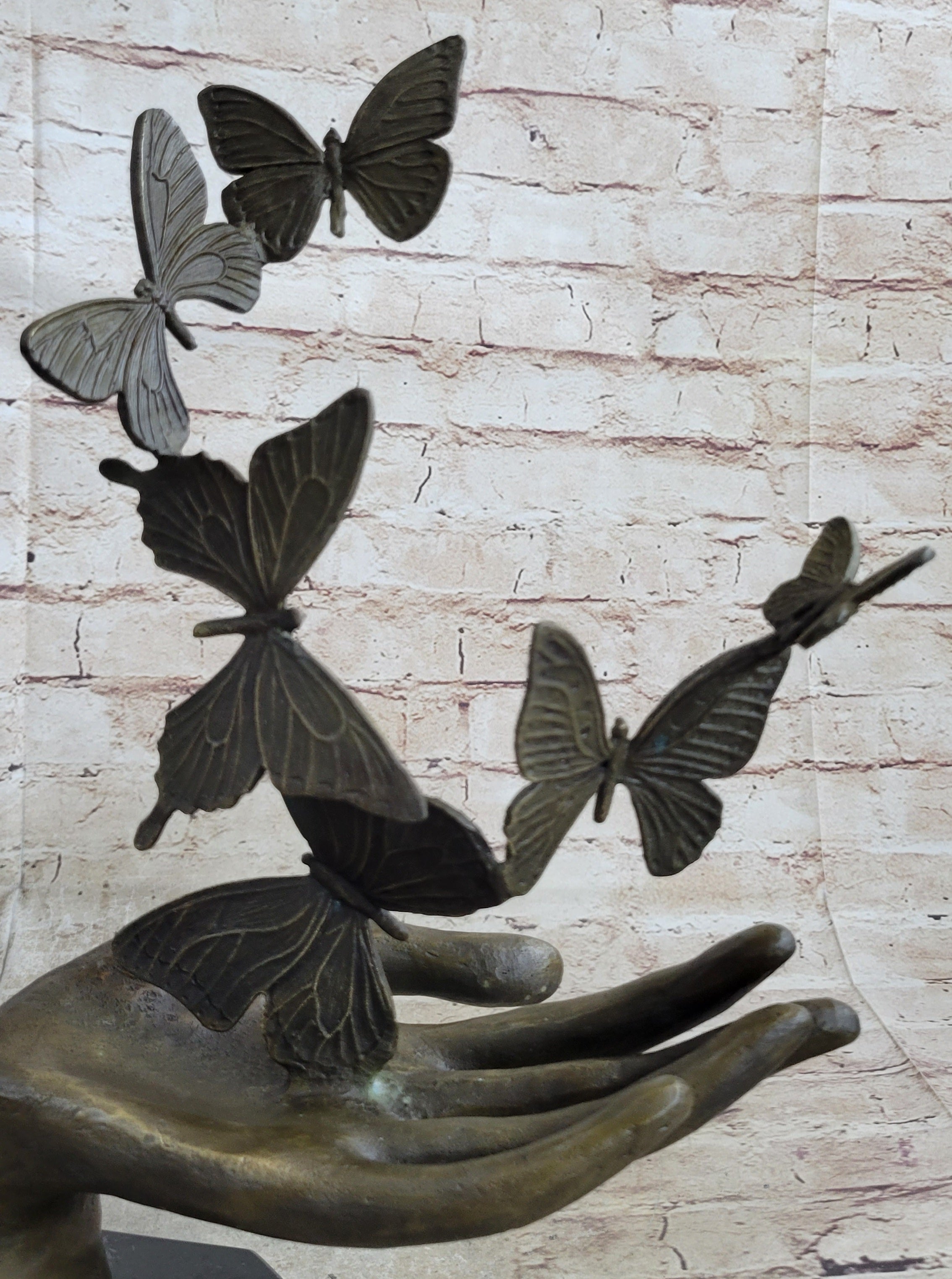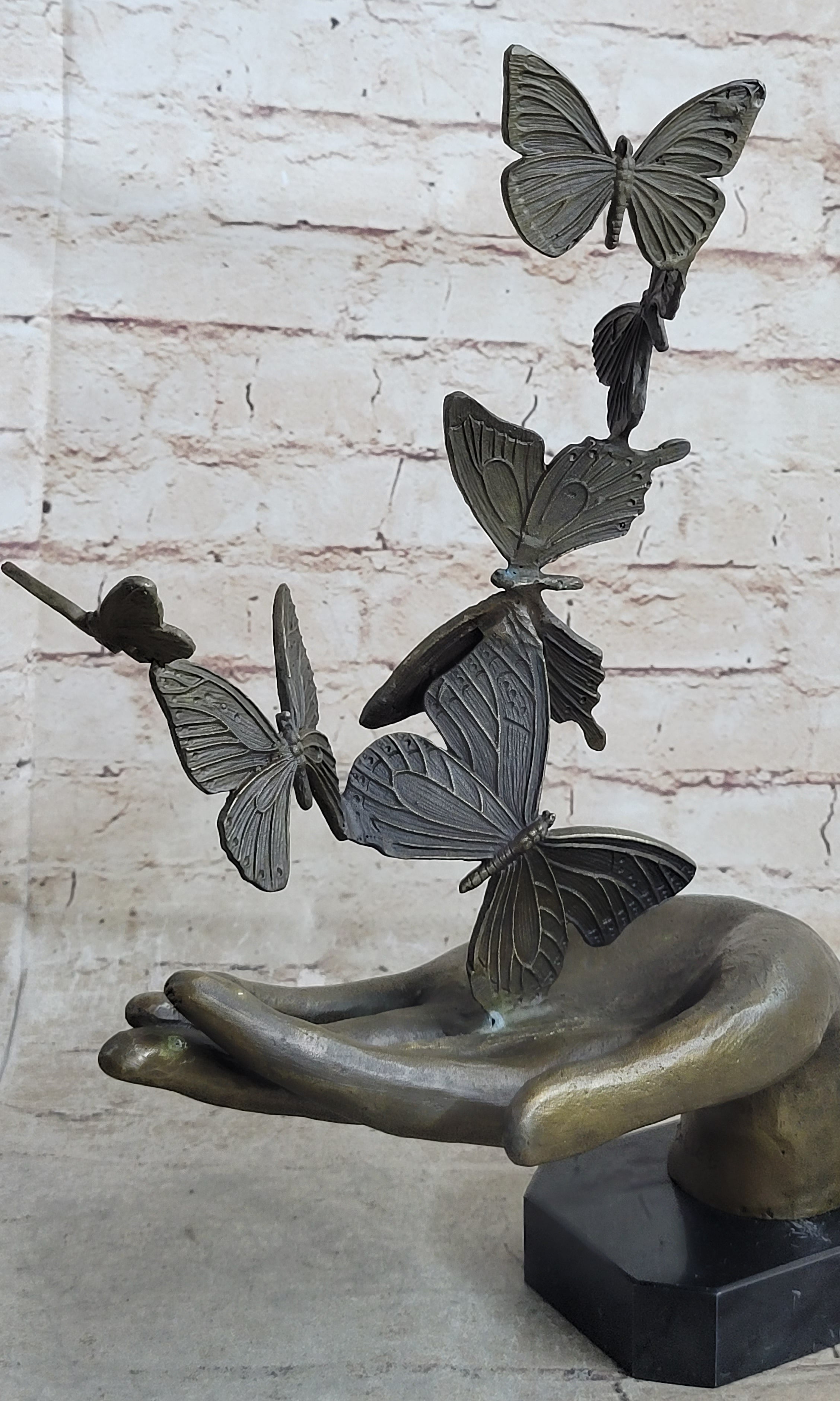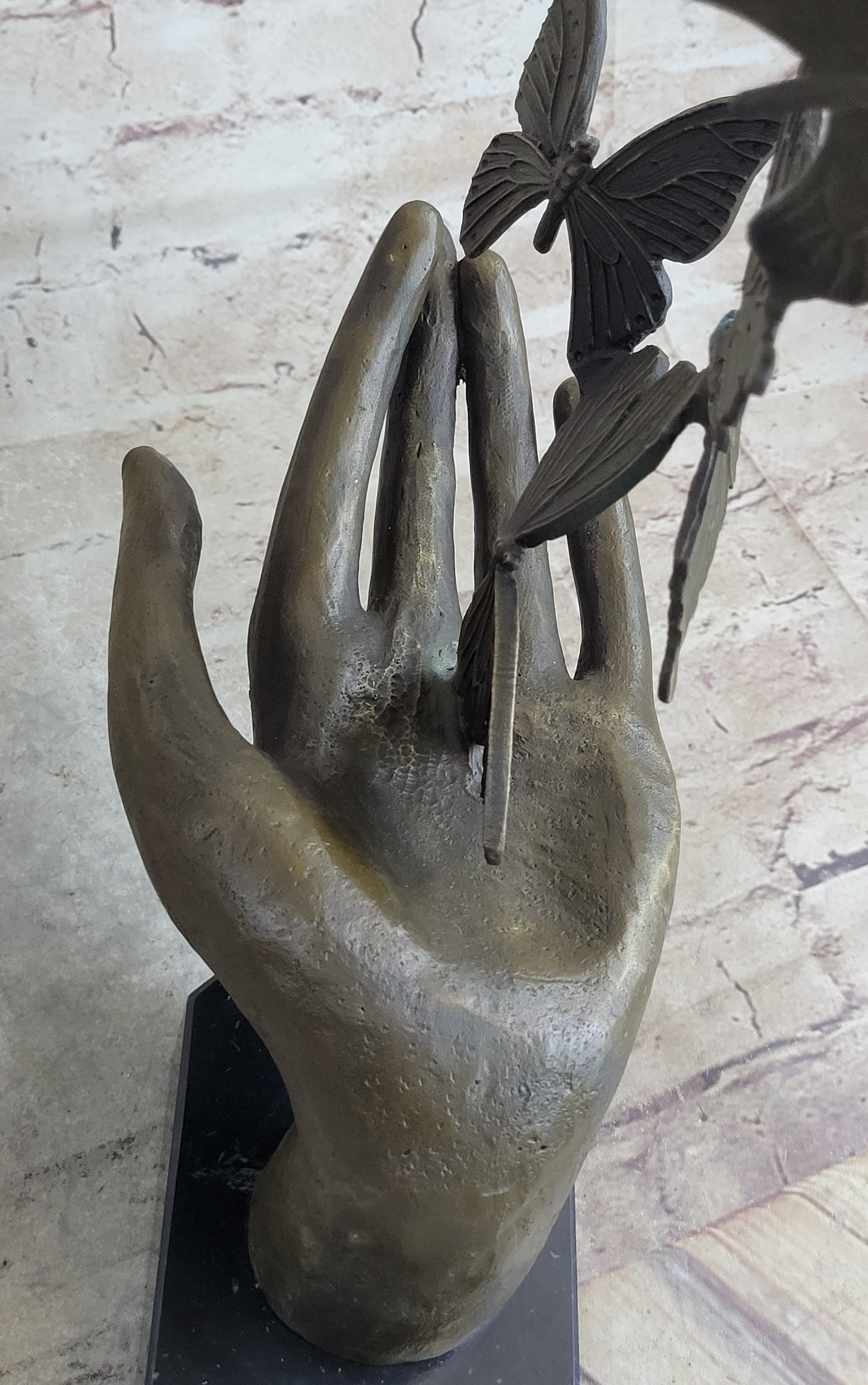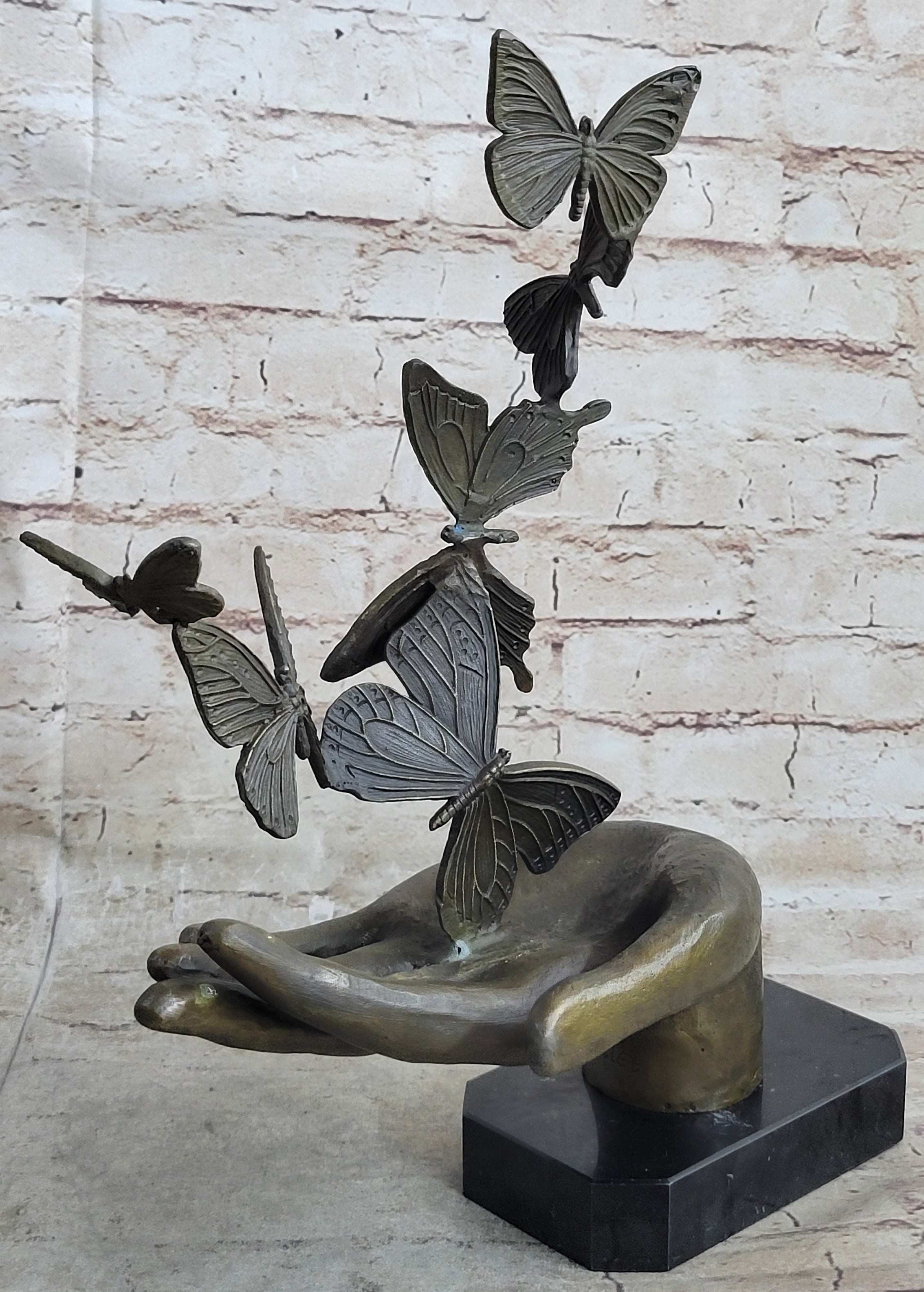 Butterflies in Hand Abstract Bronze Statue Sculpture Original Surreal Art 12" x 11"