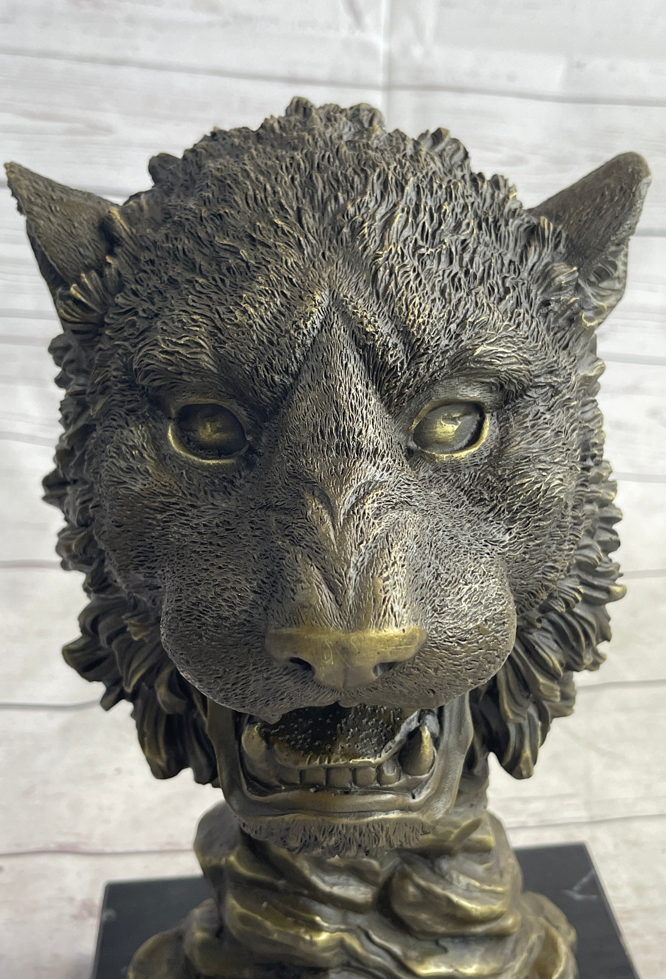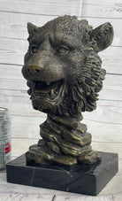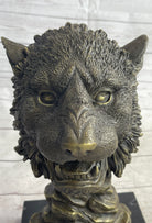 Cougar Lion Big Cat Predator Bust Sculpture Statue Bronze on Marble Base 12" x 7"