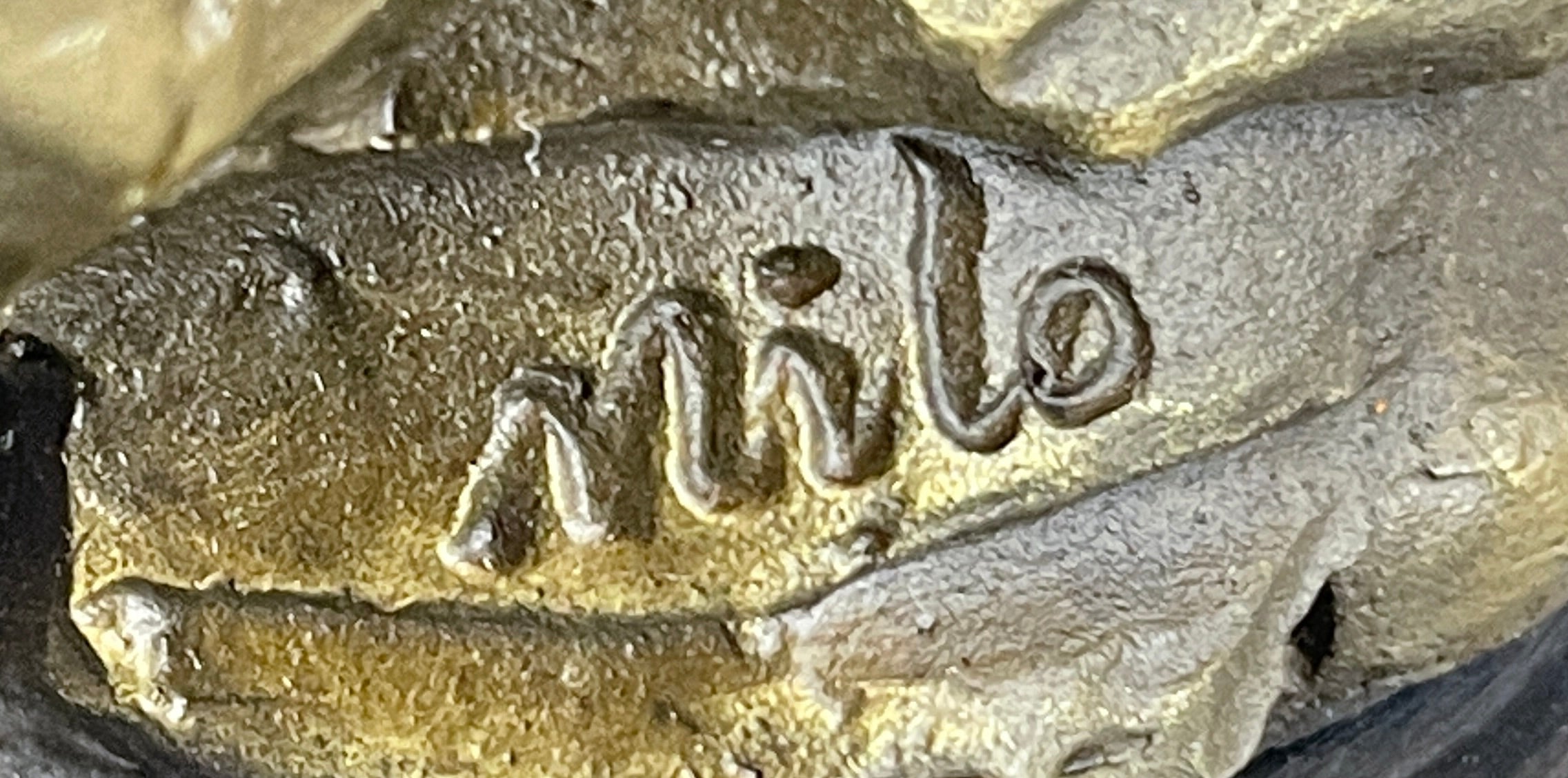 marble base and is signed Milo.Bronze Dimensions with Marble Base: Height 12" x Width 7"