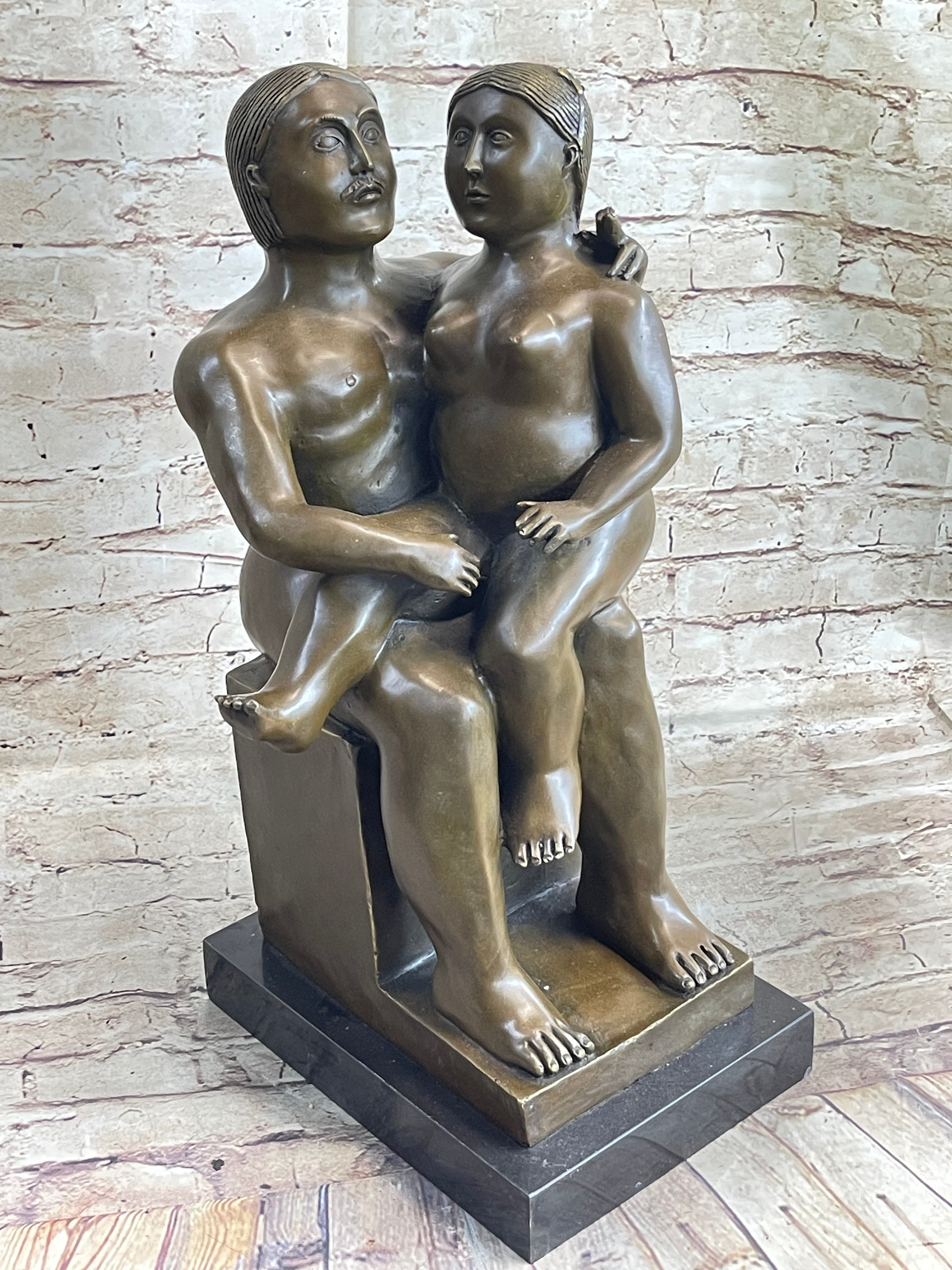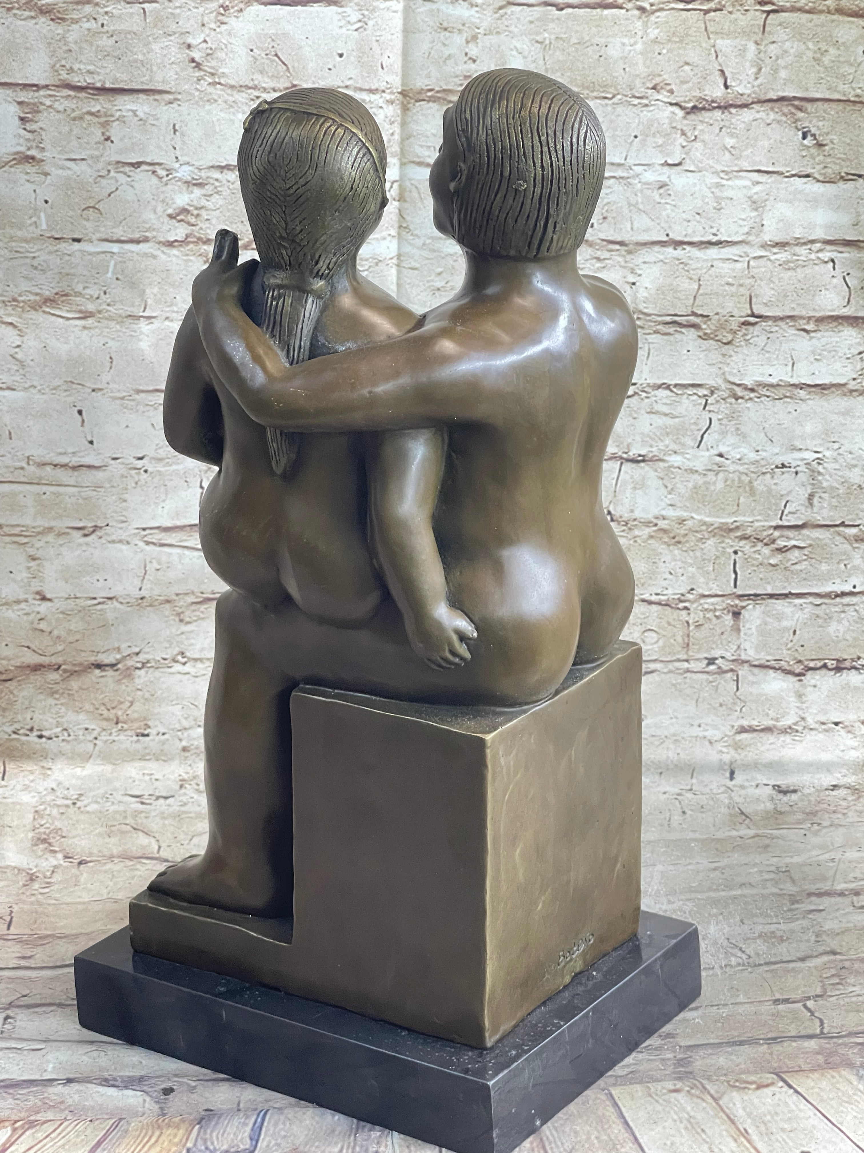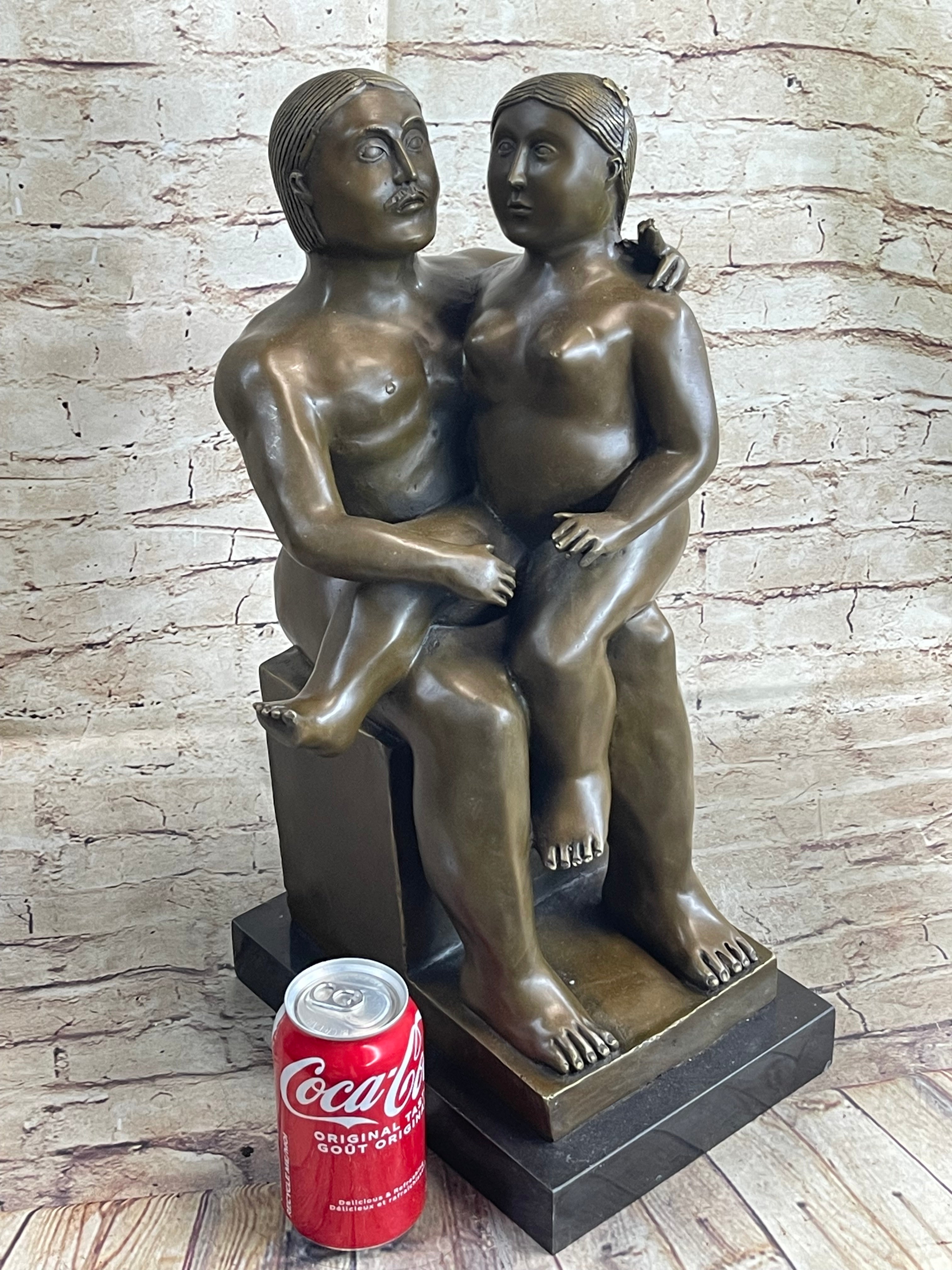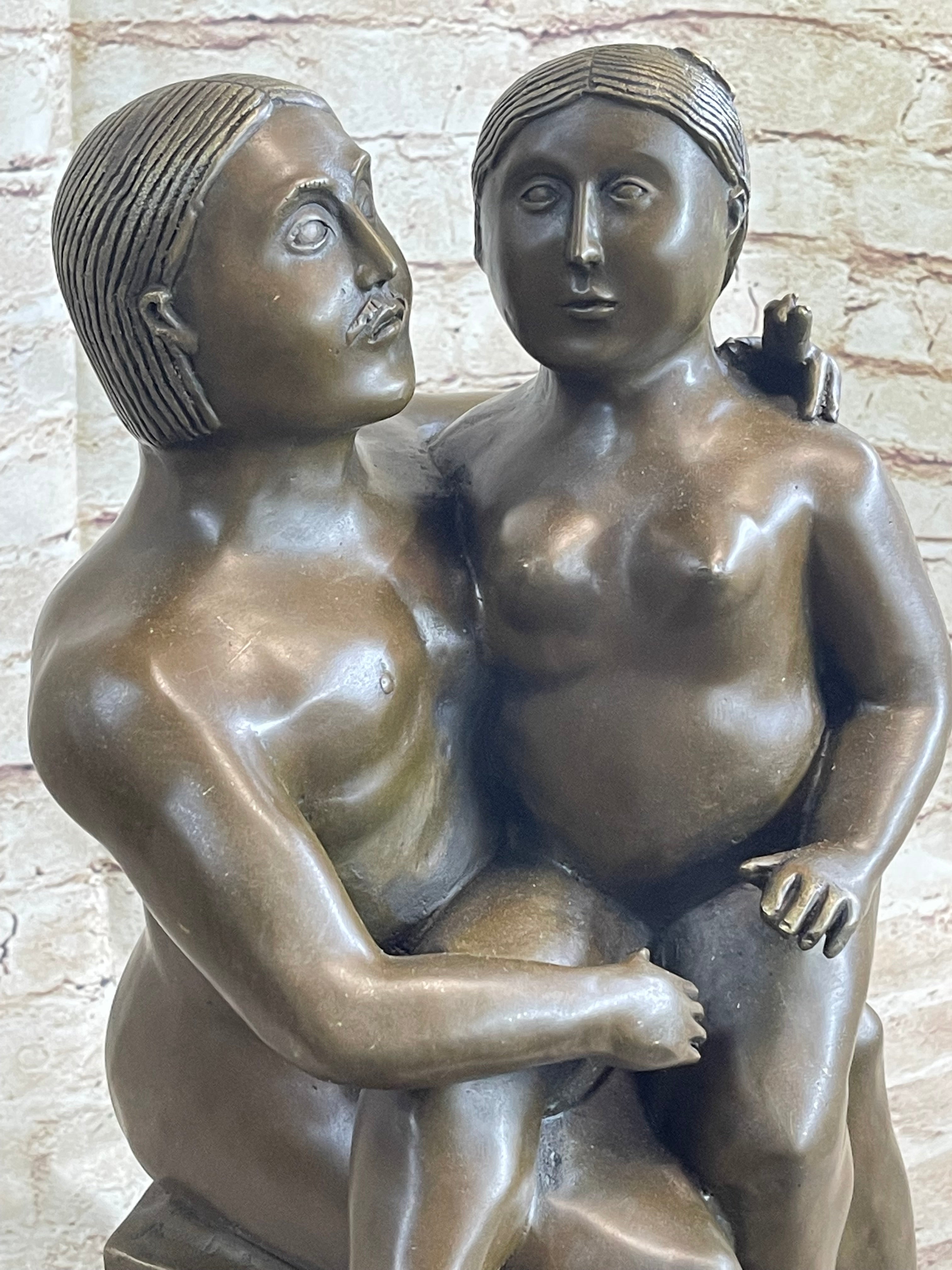 Fernando Botero Man w/ Daughter Bronze Statue Sculpture Figure 19" x 10"