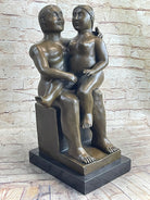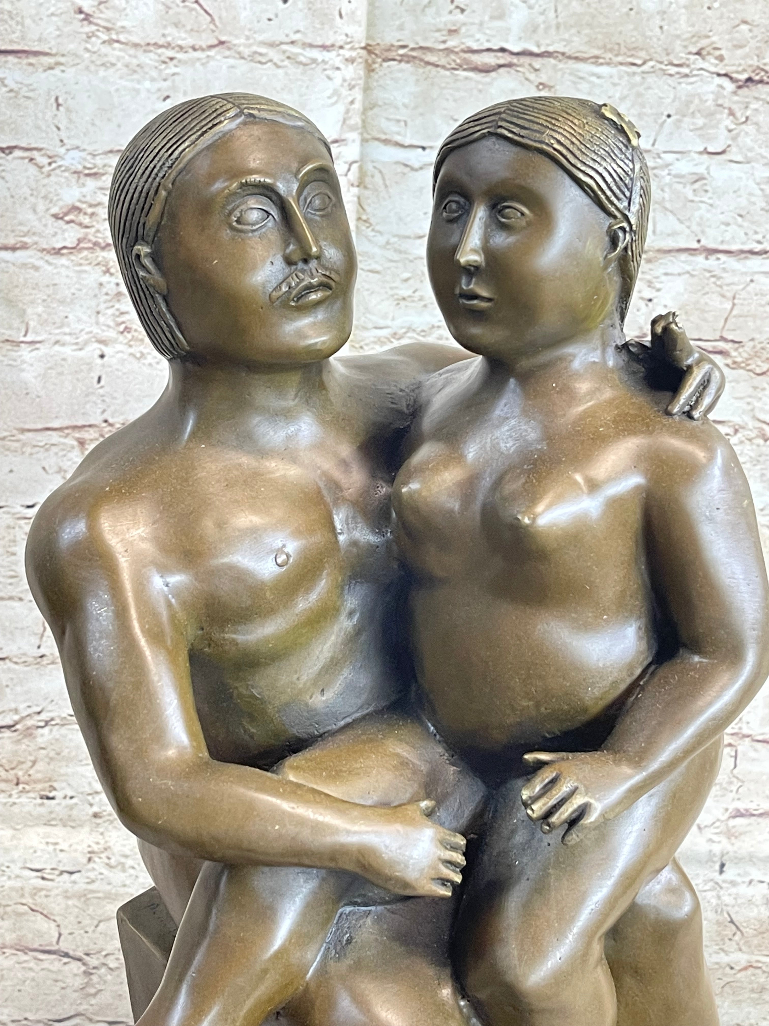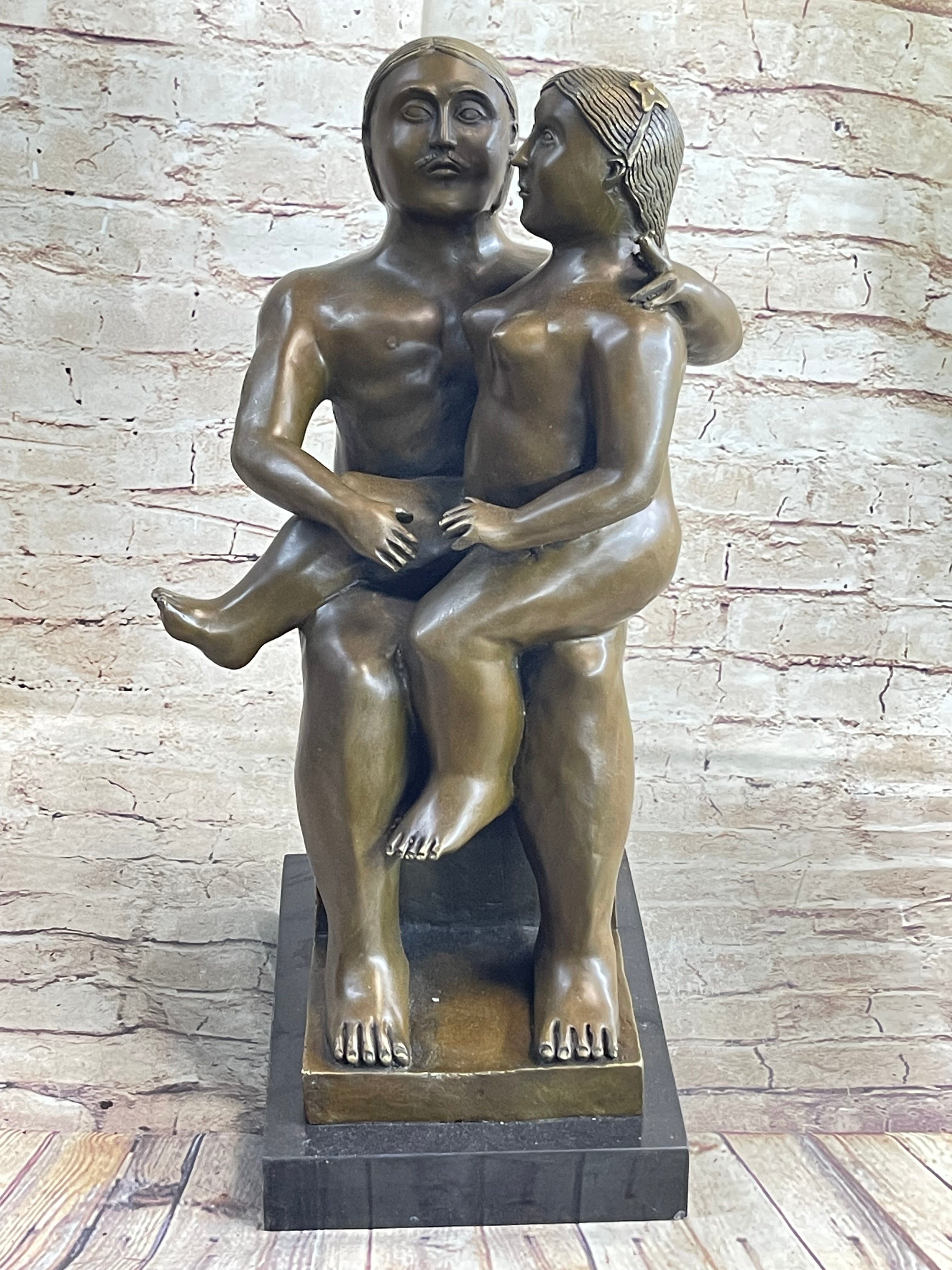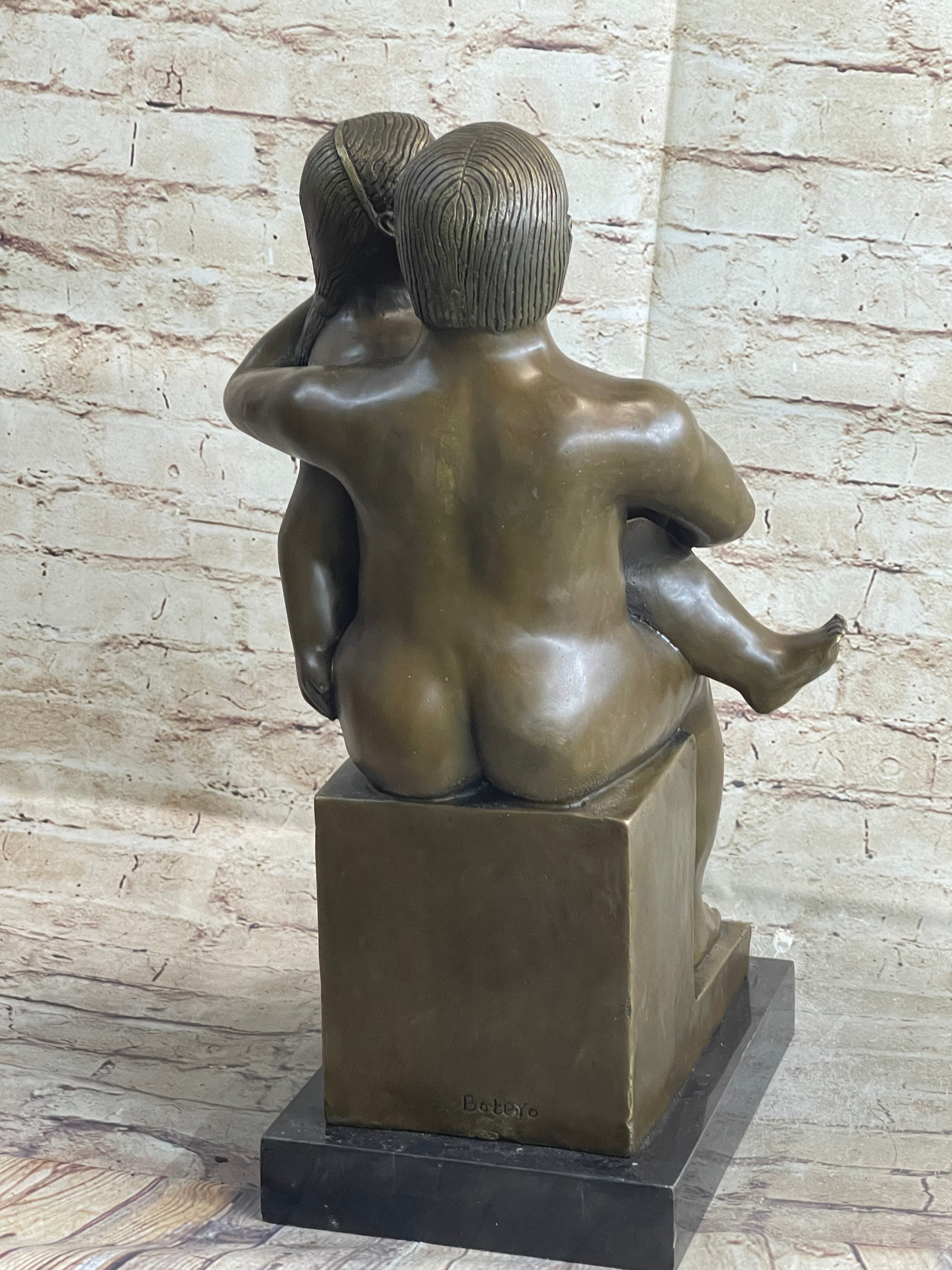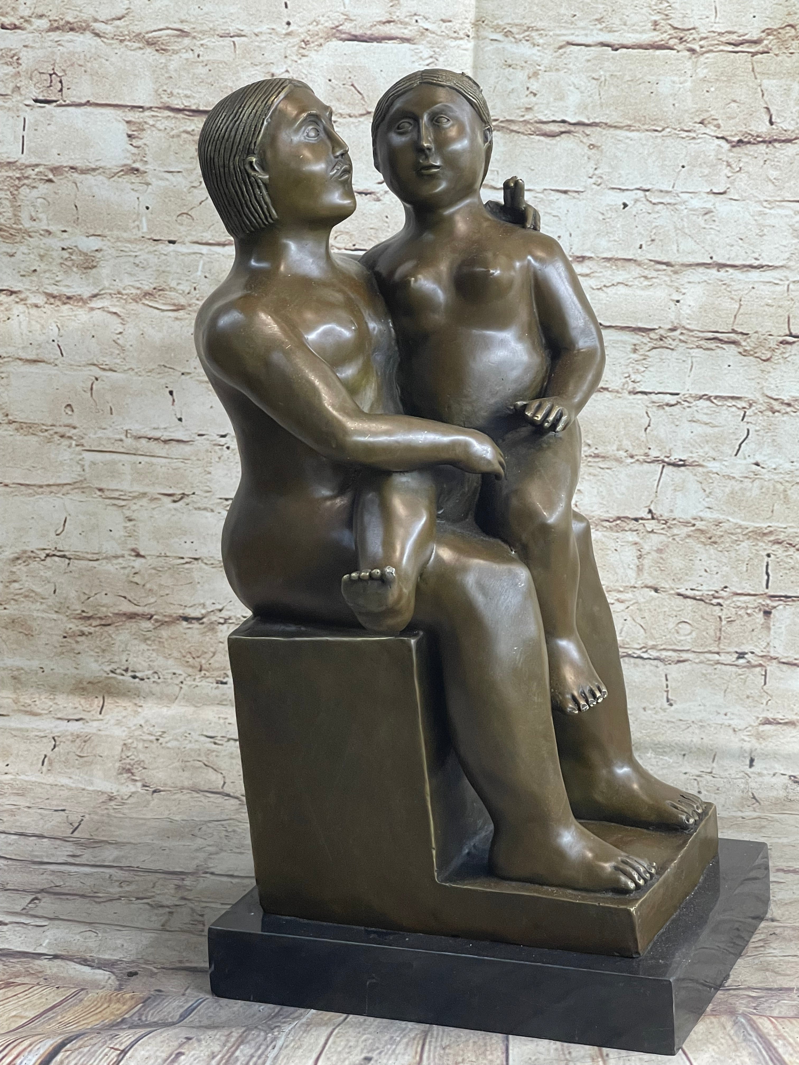 Fernando Botero Man w/ Daughter Bronze Statue Sculpture Figure 19" x 10"