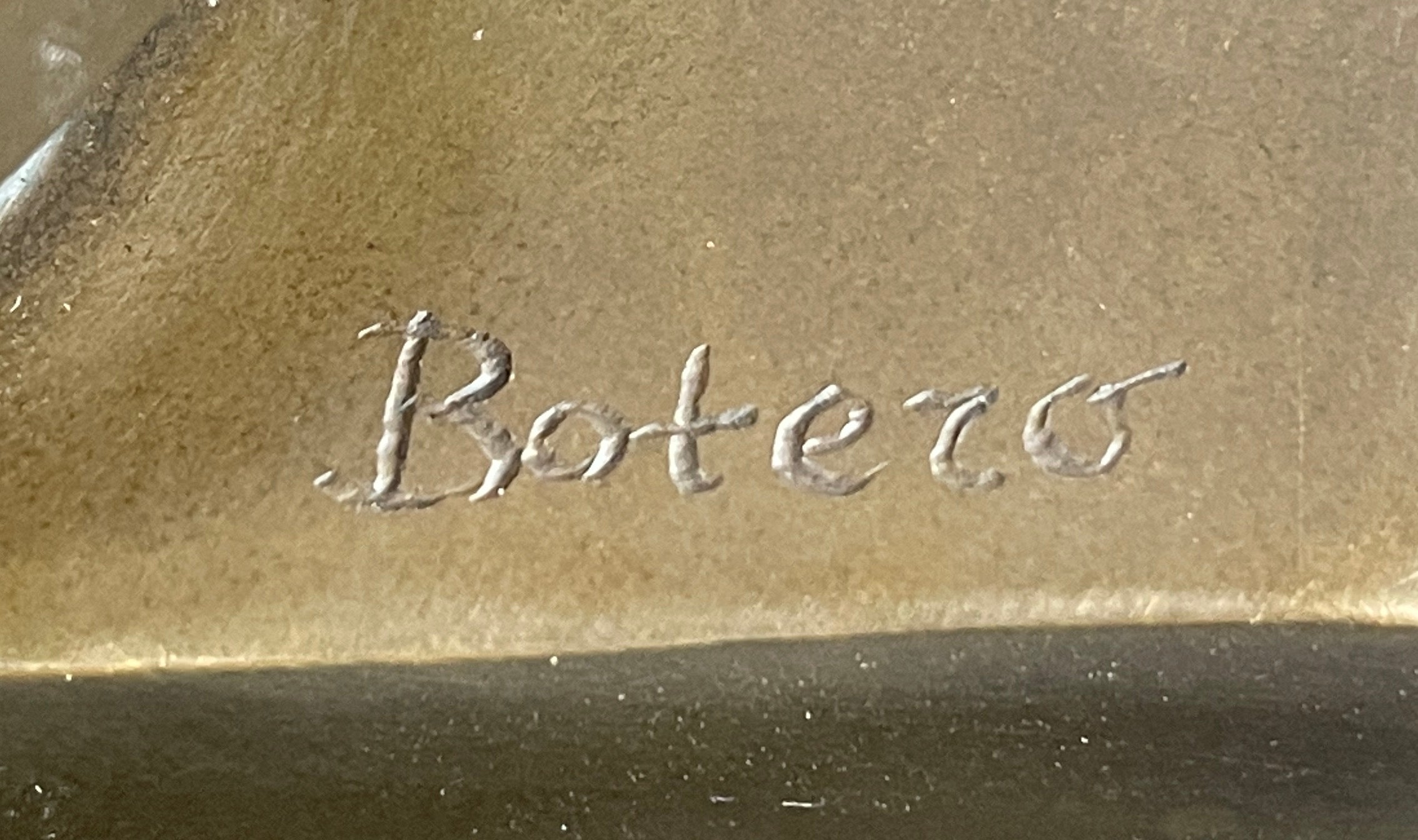 This remarkable piece is signed by the esteemed artist Botero, adding to its quality and value. The signature serves as a testament to the artist's mastery and contribution to the art world. Whether displayed in a gallery or as a cherished addition to a private collection, this abstract nude sculpture pays homage to the enduring beauty and power of the female form, inviting viewers to appreciate its artistic significance.Bronze Dimensions with Marble Base: Height 8" X Width 6"