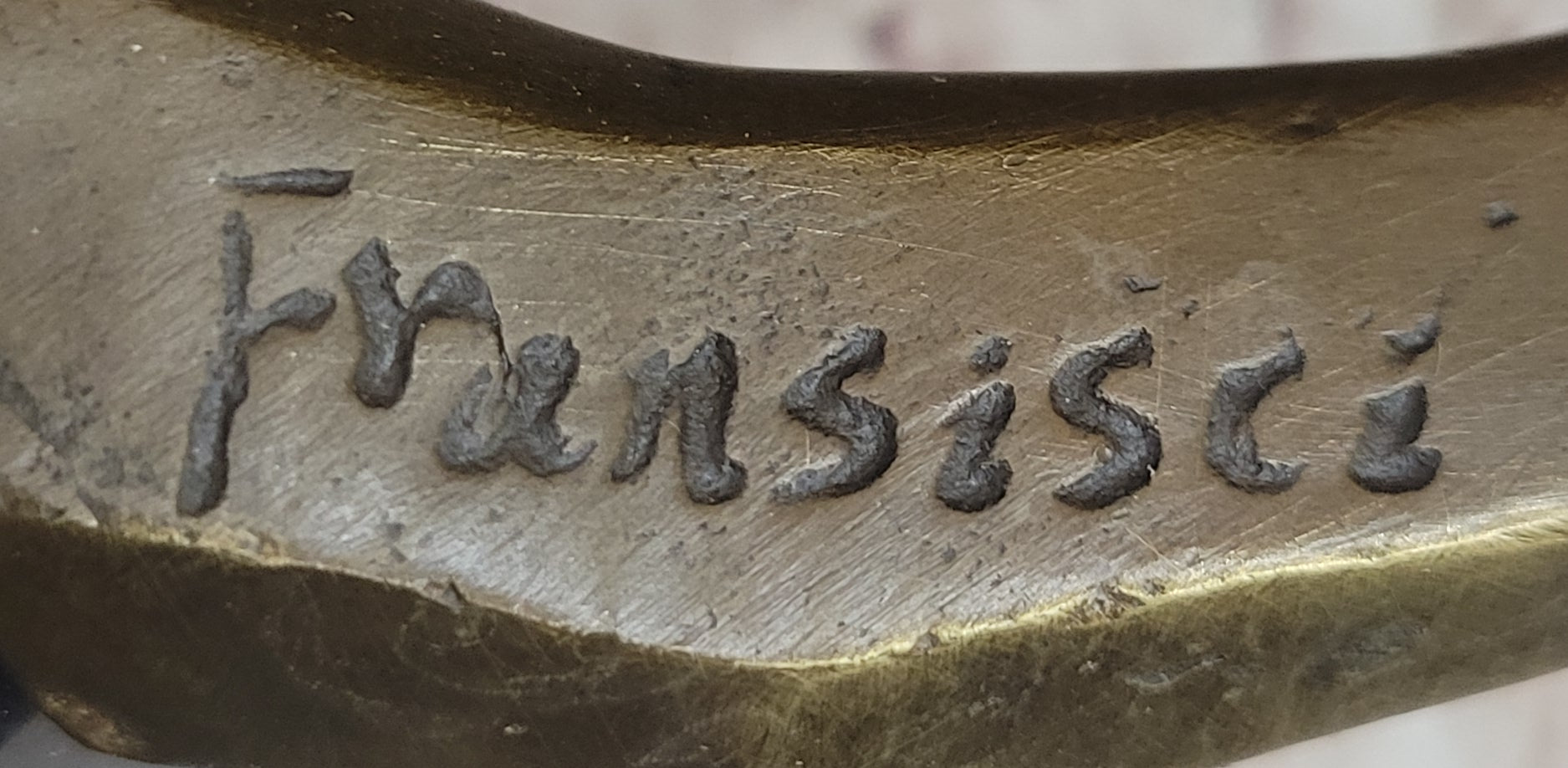 Fransisci's creation stands as a testament to the artist's artistic vision and mastery of the medium, inviting viewers to appreciate the beauty and dynamism inherent in both art and nature. Whether displayed in a gallery, office, or private collection, this bronze sculpture evokes a sense of admiration and contemplation, celebrating the timeless allure of abstract expression in sculpture.Bronze Dimensions with Marble Base: Height 9" X Width 12.5"