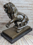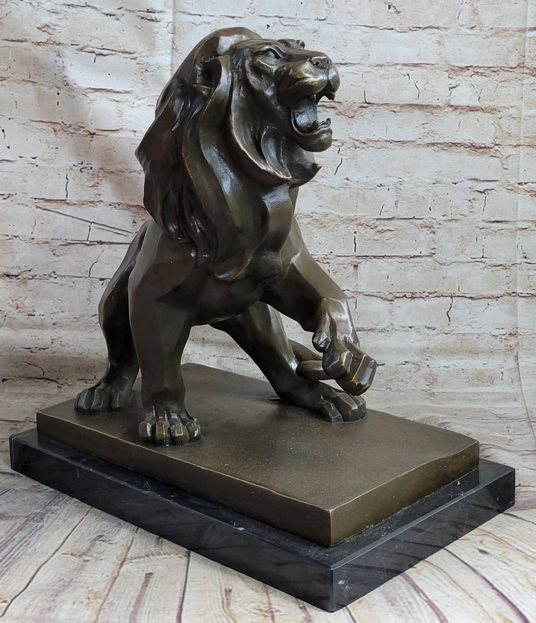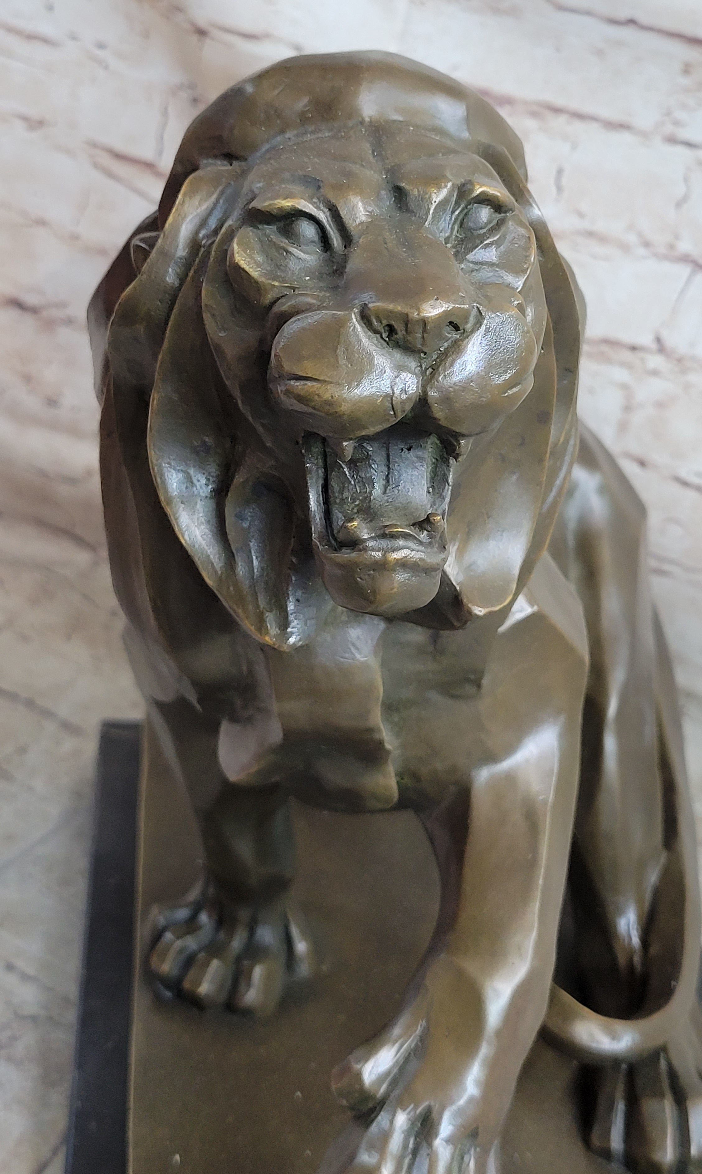 Guardian Lion Bronze Metal Sculpture Statue Figure Henry Moore on Marble Base