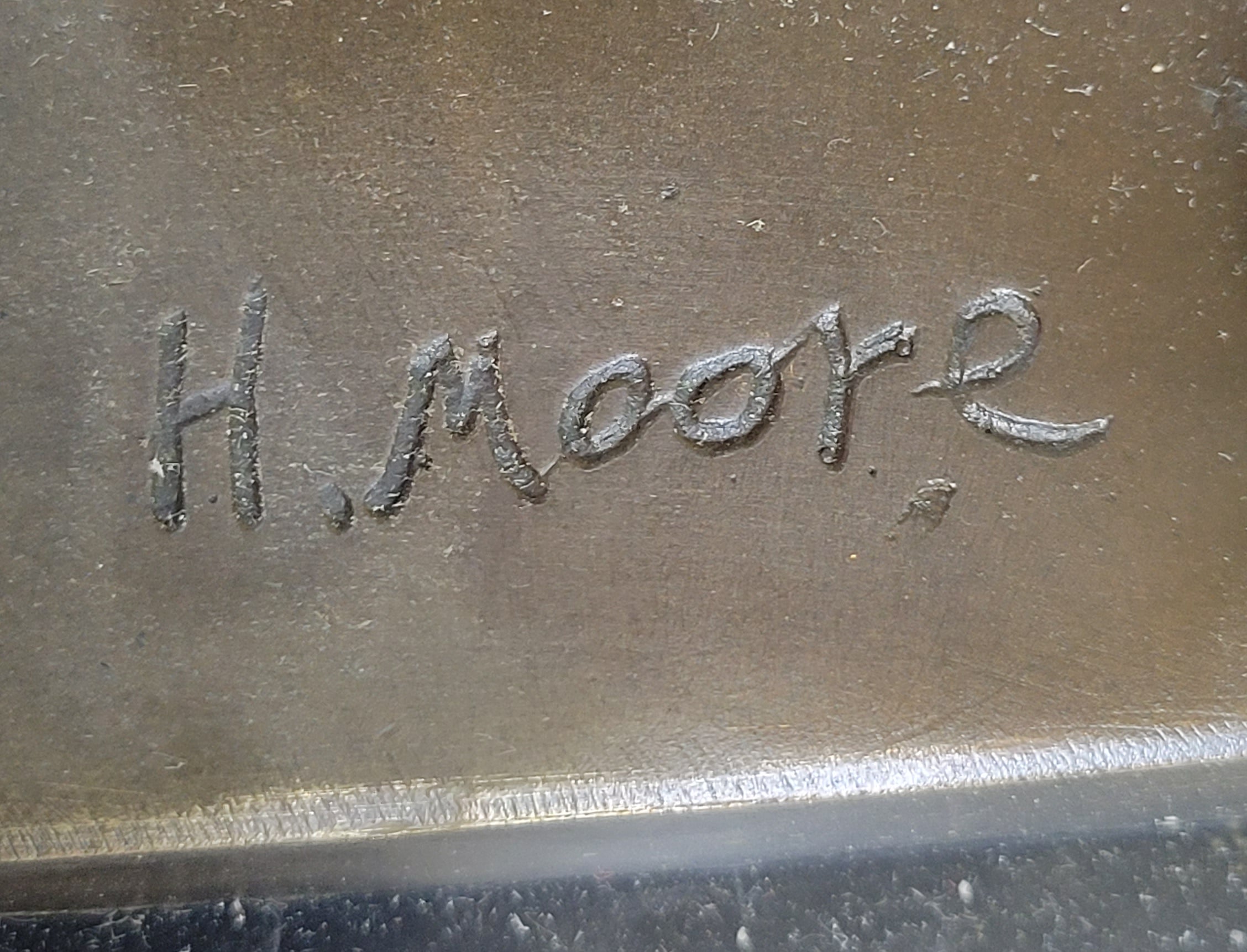 Whether you're a collector, a wildlife enthusiast, or someone who appreciates the undeniable beauty and power of the lion, this sculpture will make a stunning centerpiece in any setting. Its remarkable level of detail and craftsmanship is sure to mesmerize all who behold it. Own a piece of art that celebrates the magnificence and allure of the lion, signed by the talented artist H. Moore, and embrace the wild spirit and timeless elegance of this bronze sculpture destined to become a treasured heirloom for generations to come.Bronze Dimensions with marble base: Height 15" X Width 14.5"