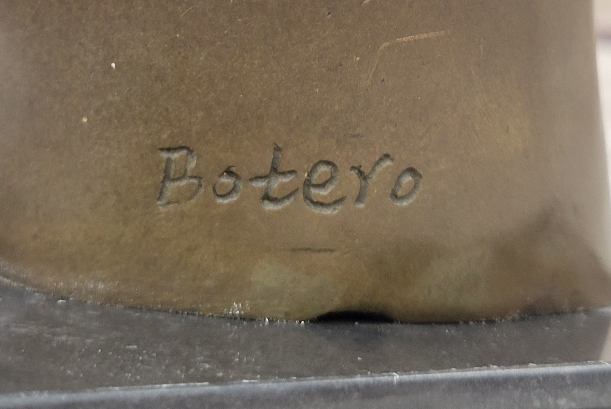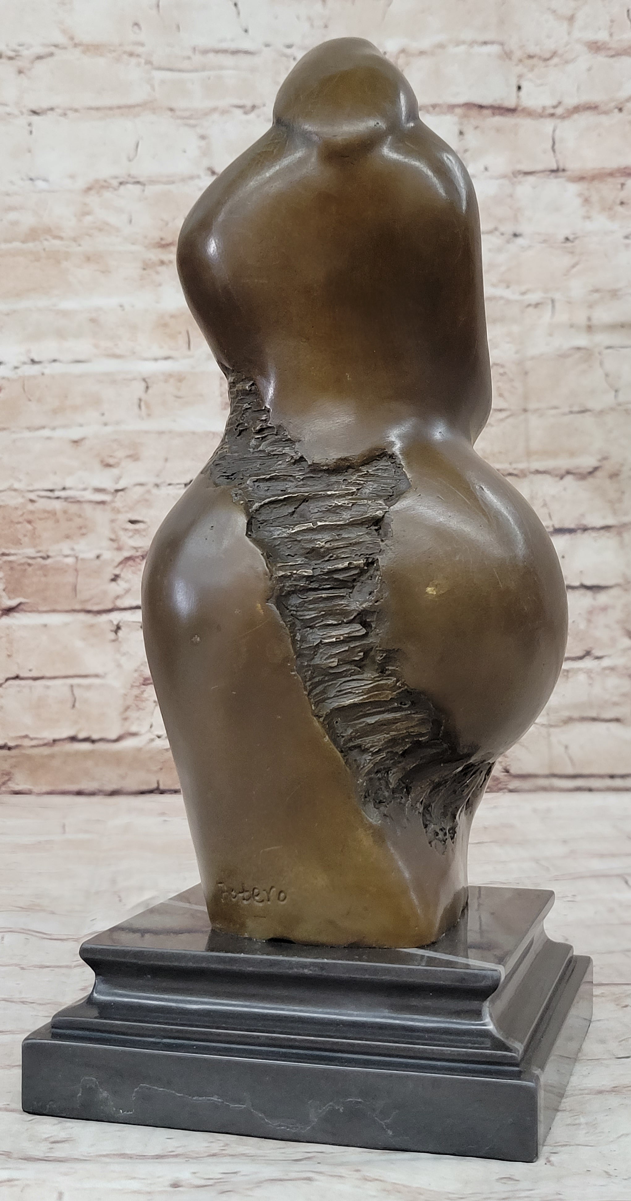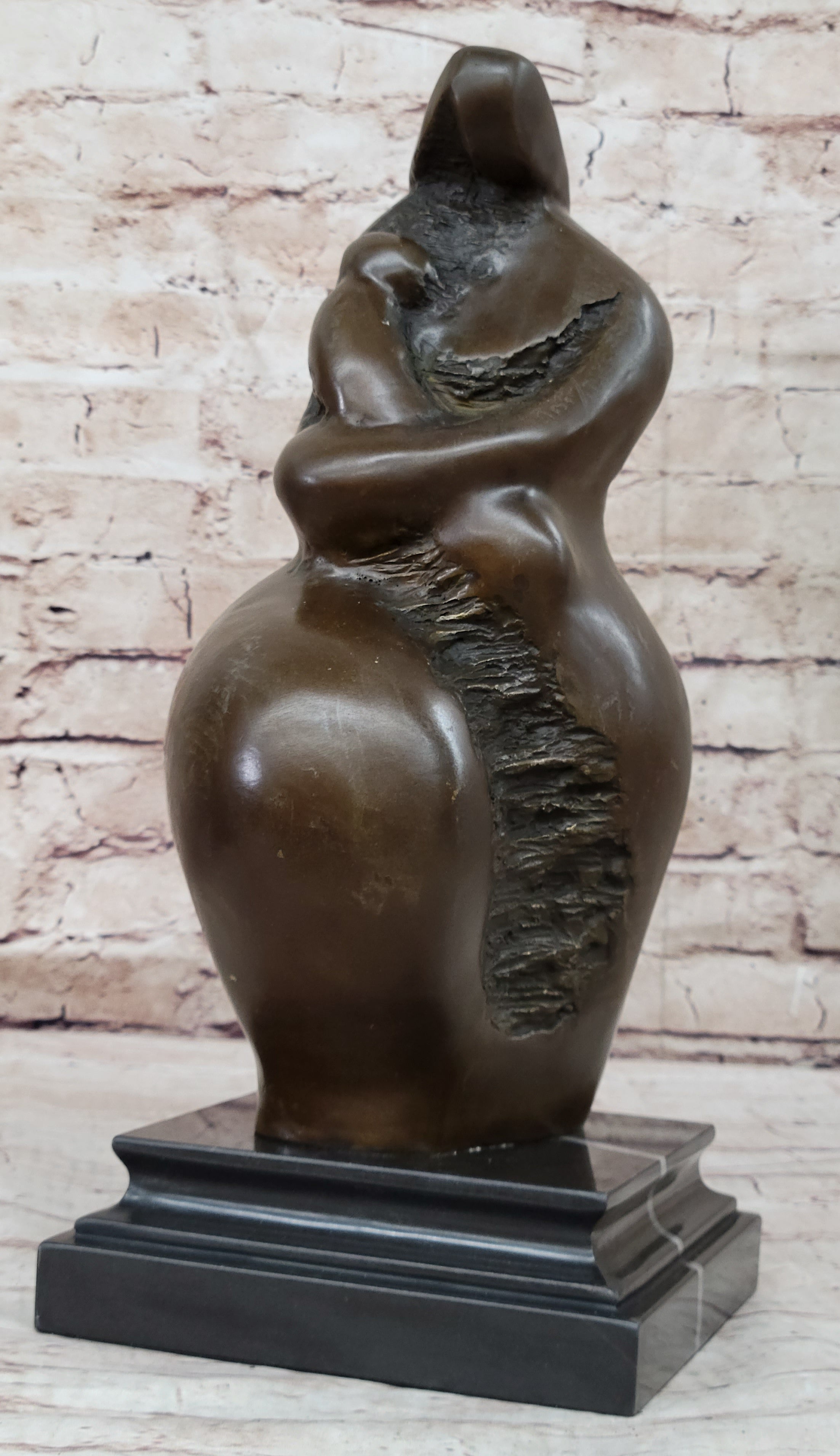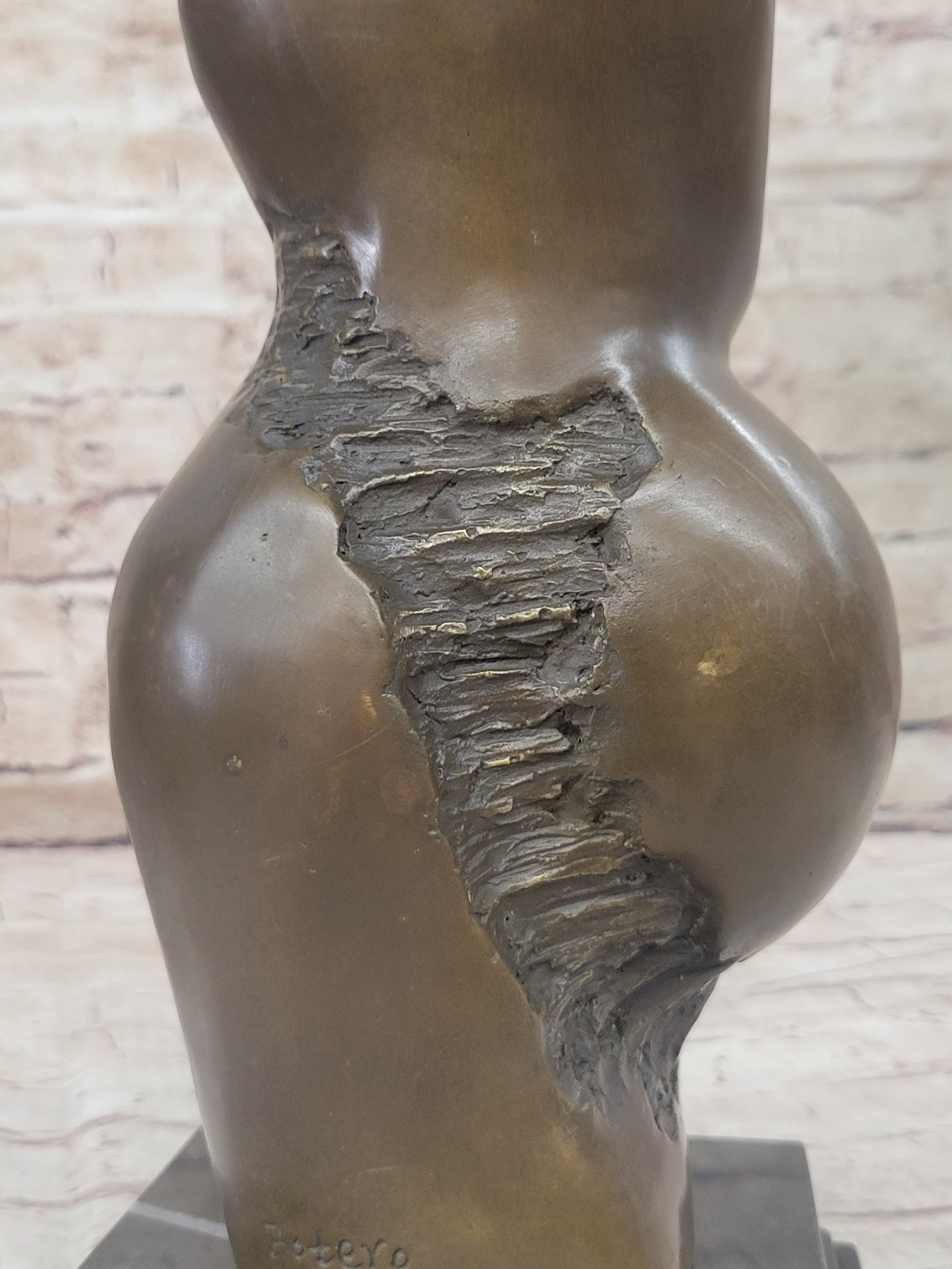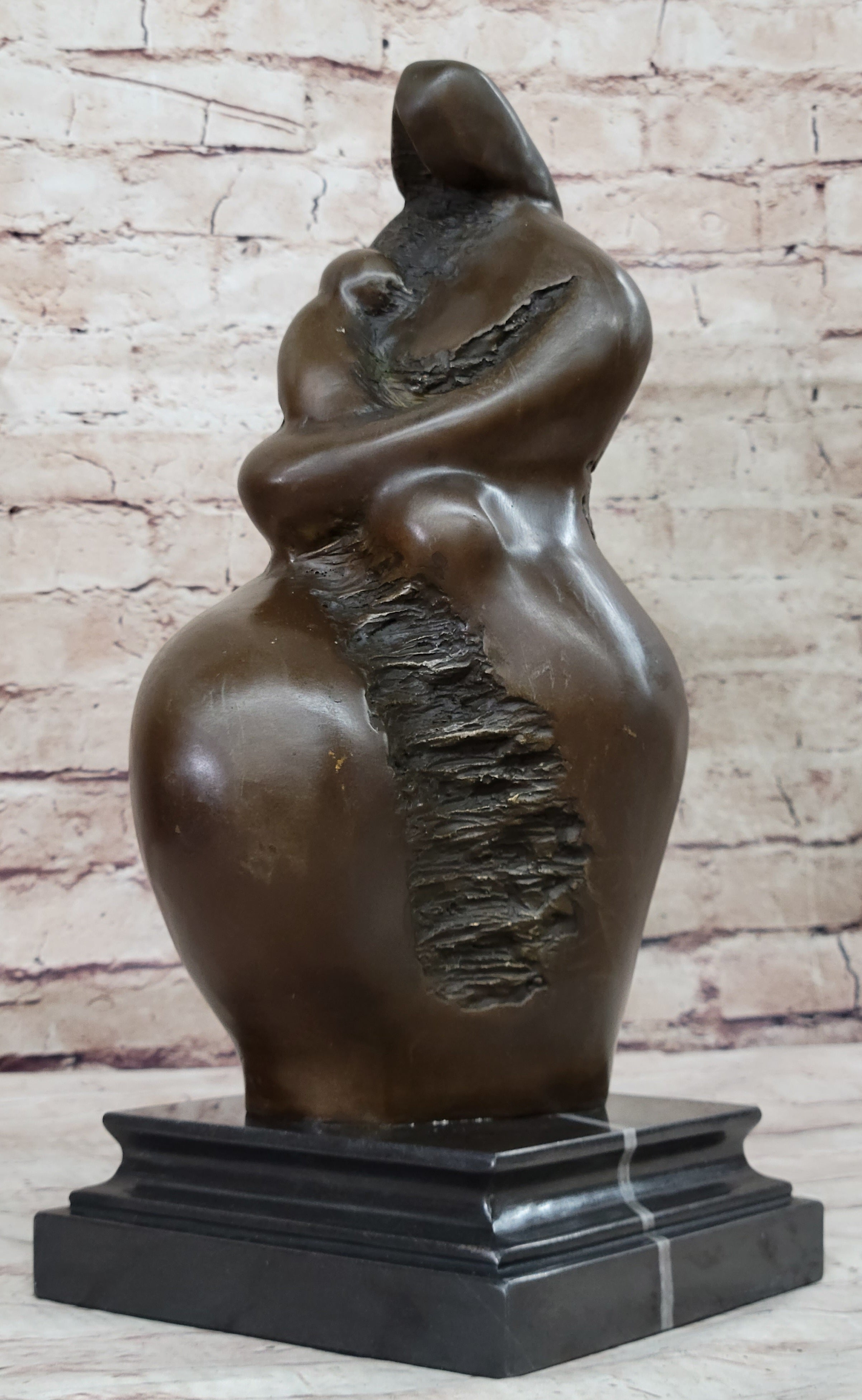 This handcrafted bronze sculpture titled "Mother and Child" by Botero showcases an abstract modern style that beautifully captures the timeless bond between a mother and her child. With exquisite attention to detail, the sculpture portrays the mother in a gentle, embracing posture as she cradles her child with love and tenderness. The artist's mastery is evident in the fluid and graceful lines, bringing life and emotion to the artwork.