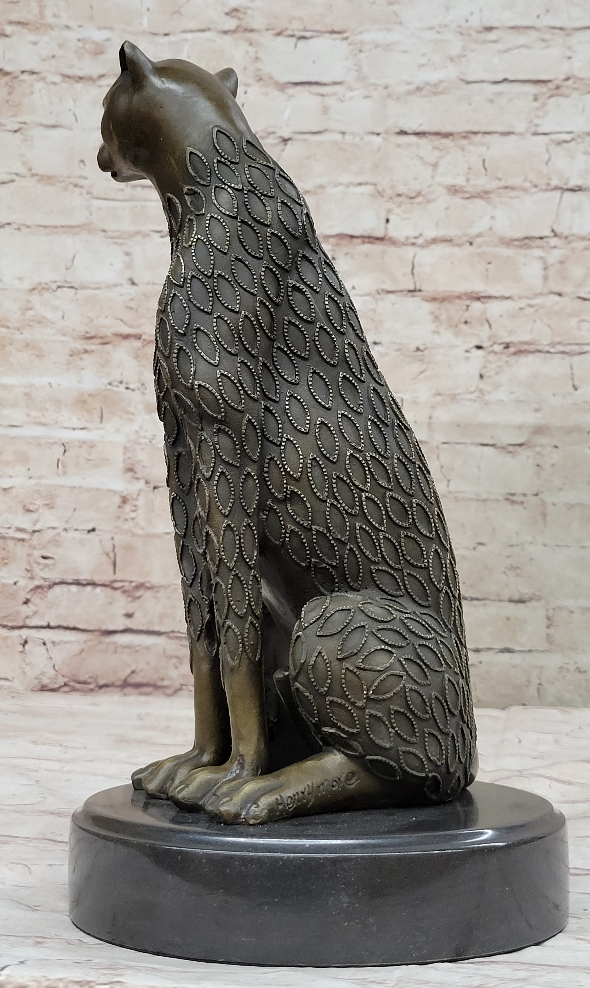 Hand Made Cougar Jaguar Wildlife Animal by Henery Moore Genuine Bronze Sculpture