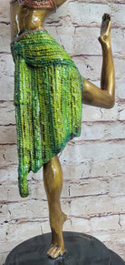 This exquisite bronze dancer is a true work of art, handmade with exceptional detail and featuring Egyptian symbols that reflect the period's fascination with the excavation of Tutankhamen's tomb. The natural pairing of the base and sculpture form a cohesive design that adds to the piece's overall beauty.