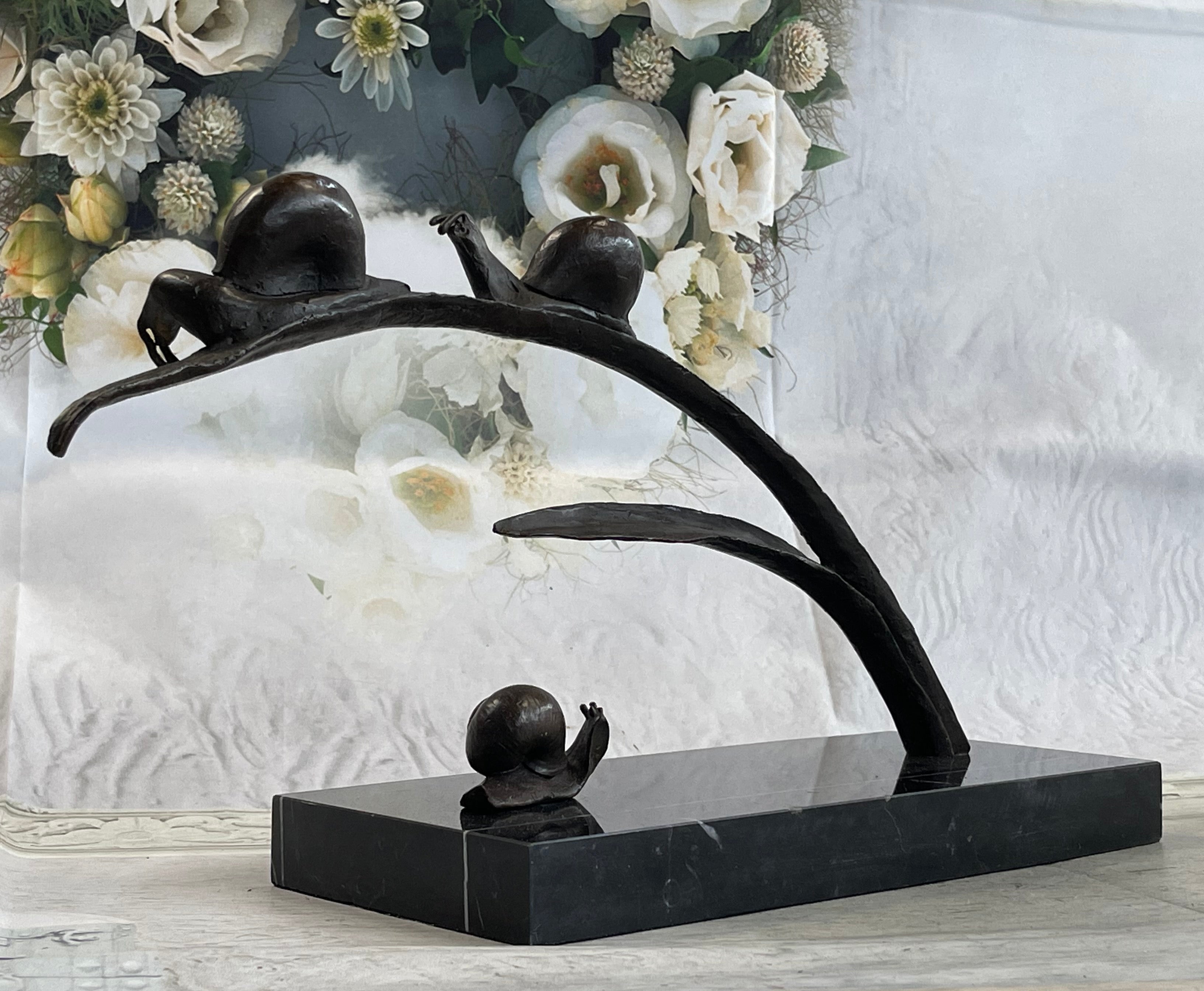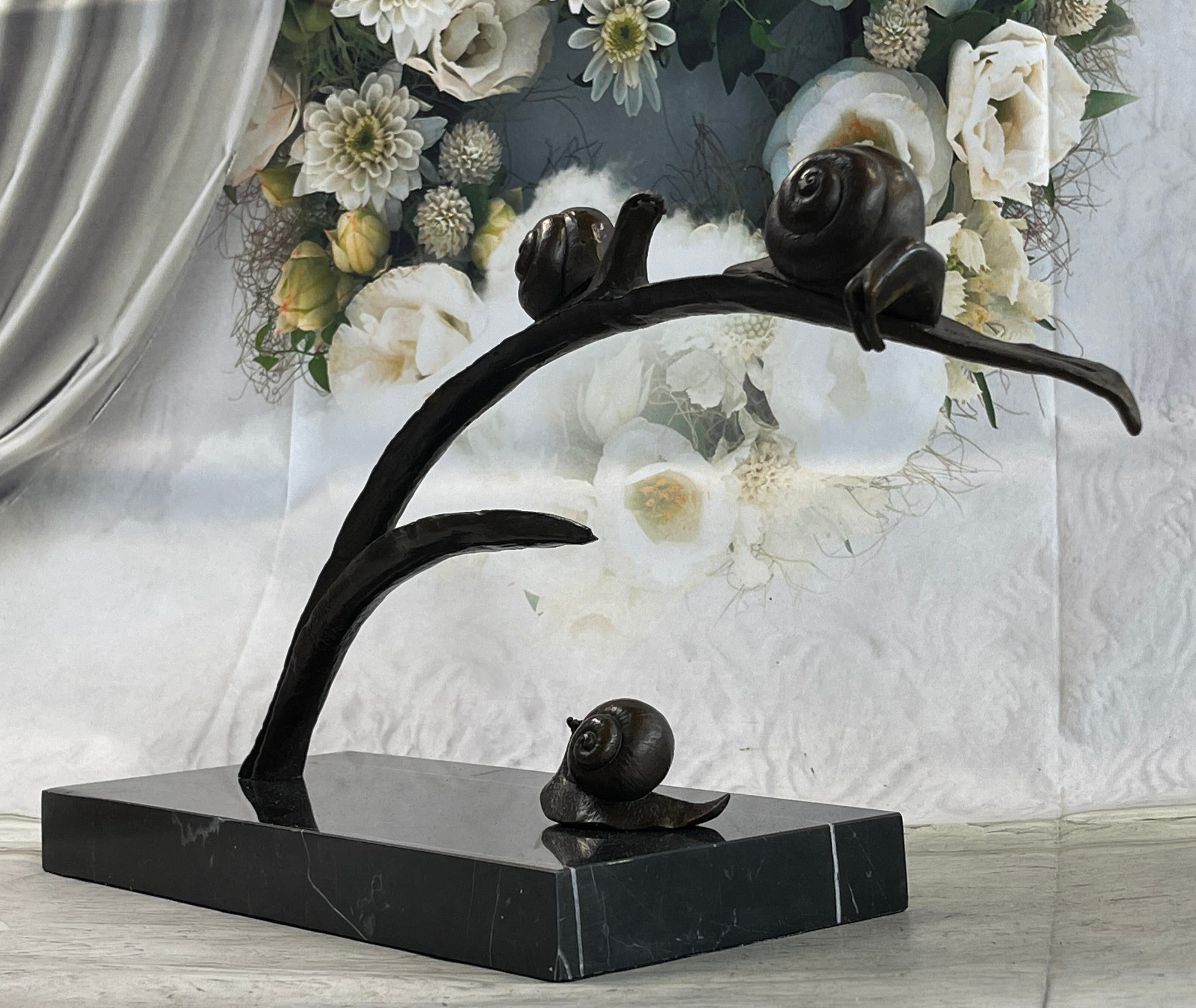 Handcrafted Limited Edition Snails on Branch by Charles Payne Bronze Sculpture
