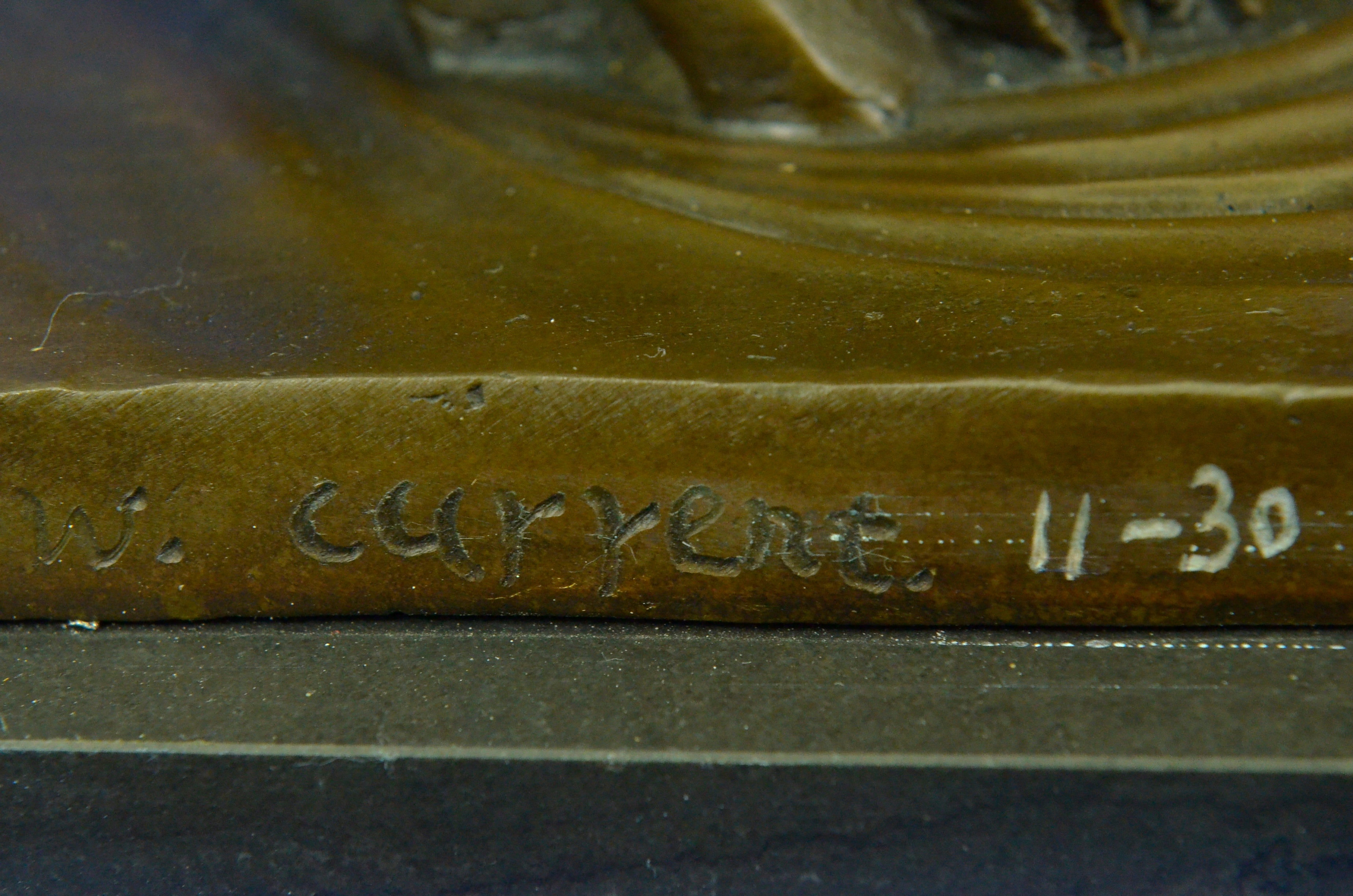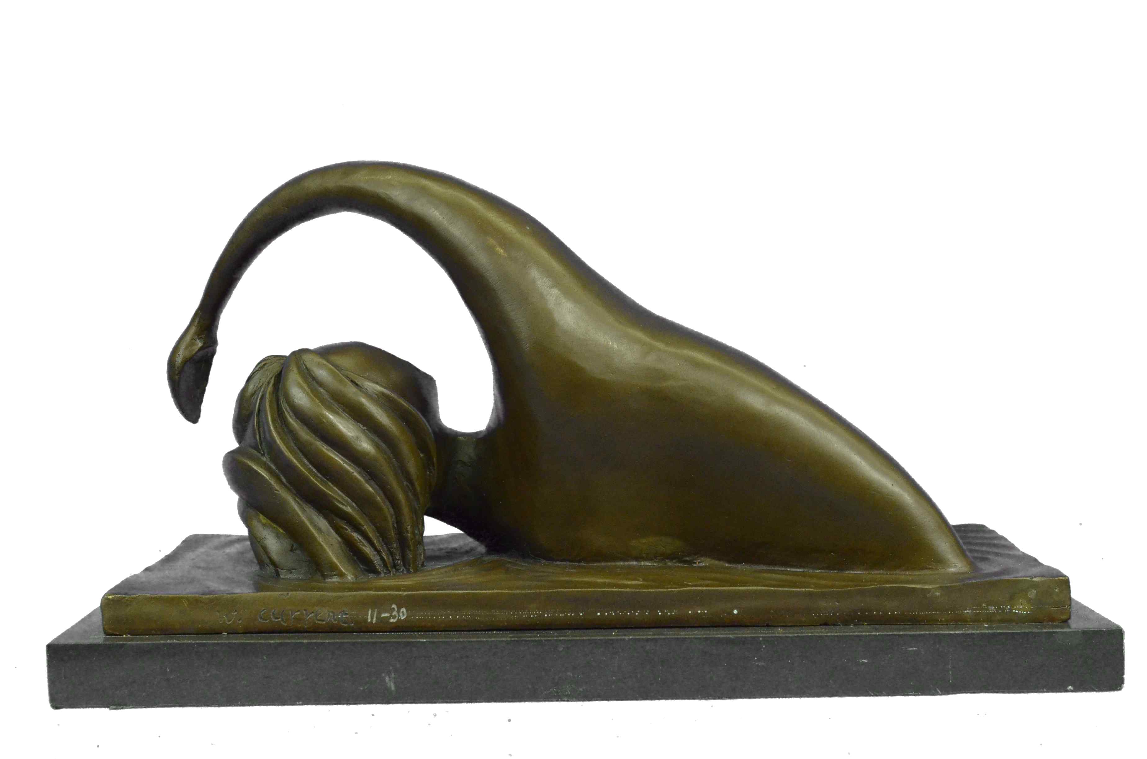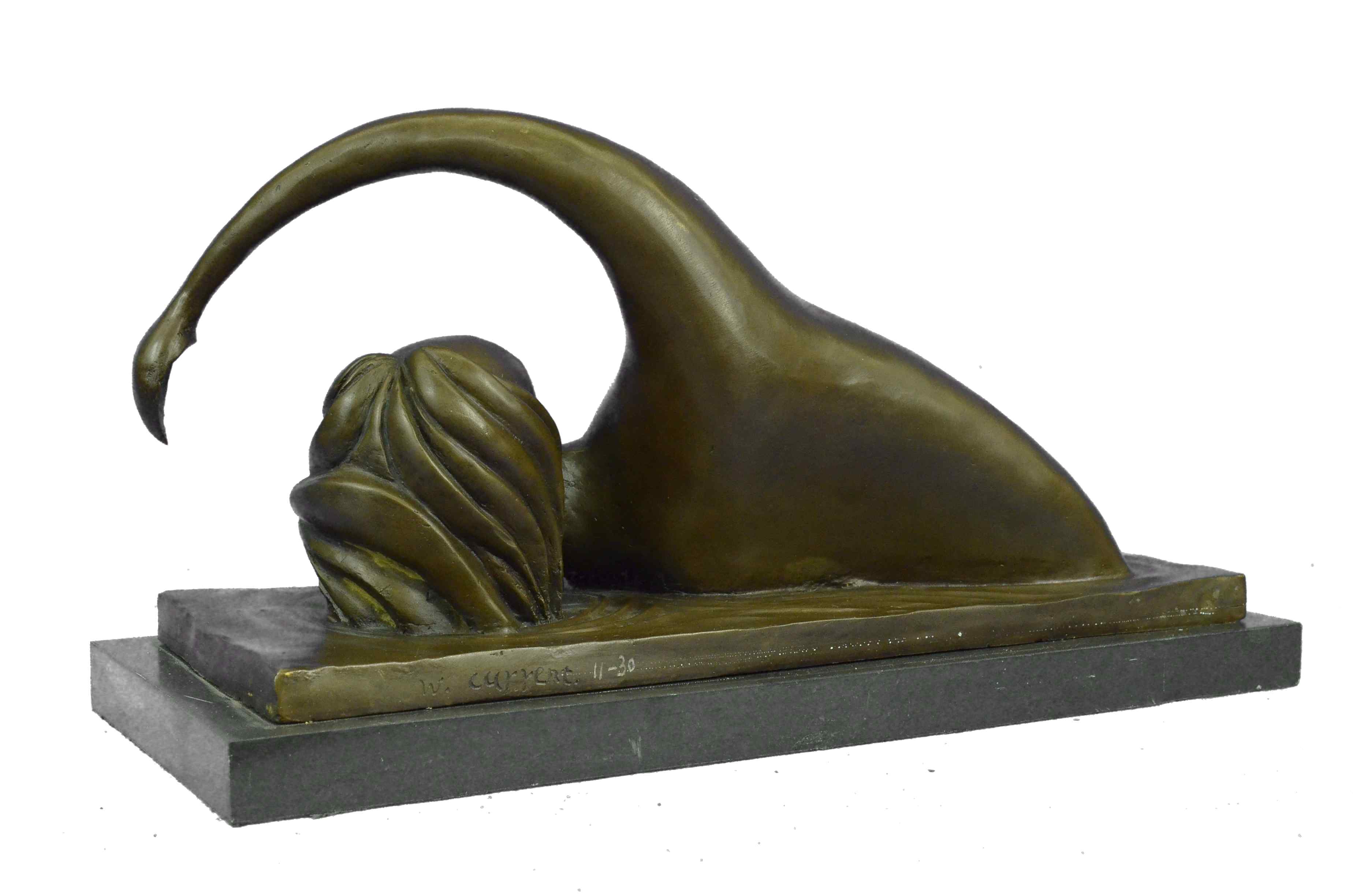 The sculpture shown here is an original bronze sculpture. It can be purchased as a limited edition sculpture in bronze (eleven of a series of 30). Part of a series of original contemporary American sculpture, this artwork handmade bronze sculpture was molded using the age-old method of lost-wax casting and stained with a brown patina finish for perpetuation. She is mounted upon a black marble base with American artist Current signature.Bronze Dimensions with Marble Base:Height 10" x Width 18.5"