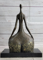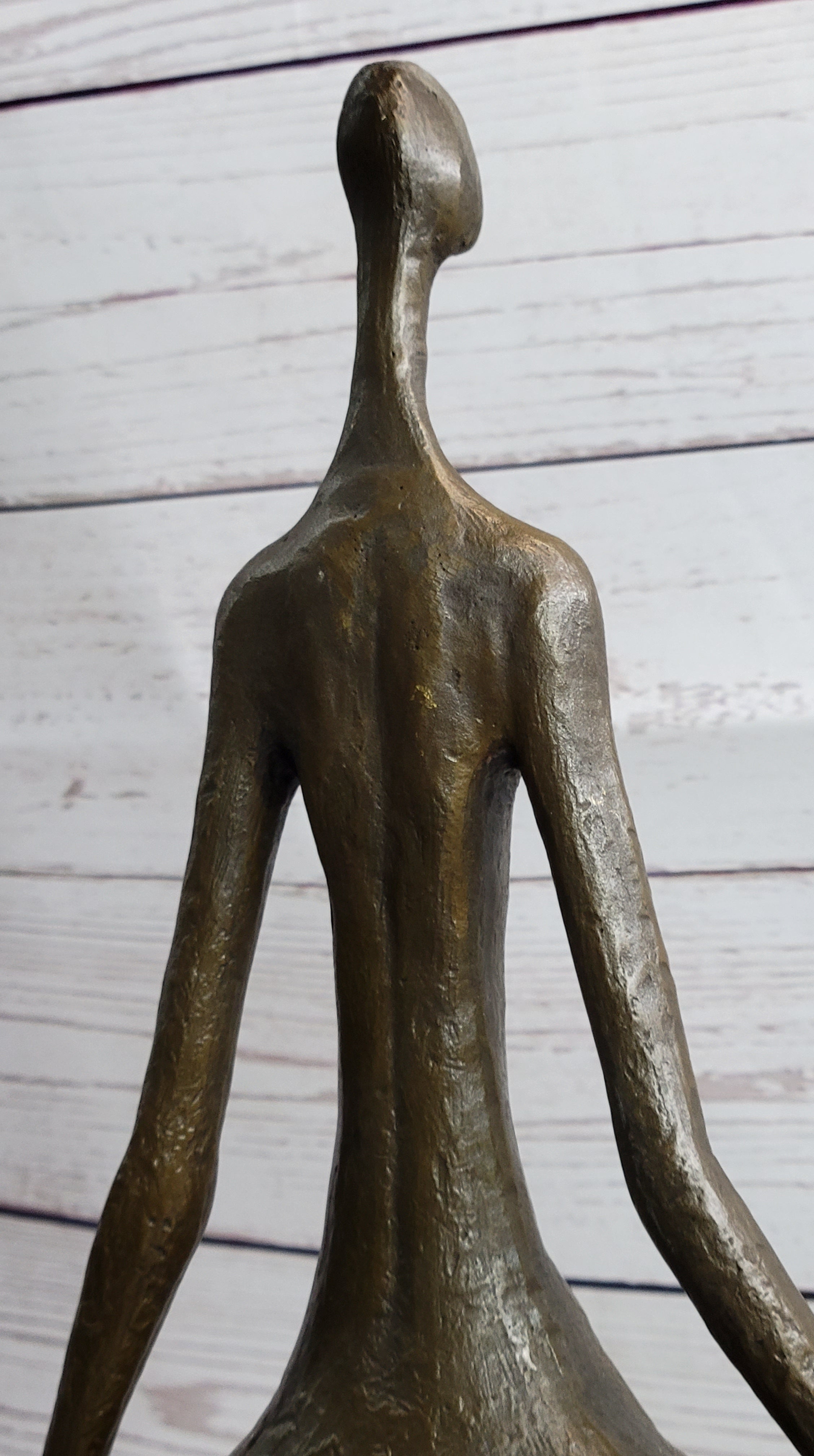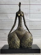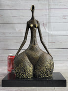 Introducing a captivating bronze sculpture that celebrates the beauty of the curvaceous female form. This exquisite artwork portrays a woman with wide hips, a symbol often associated with femininity and fertility. Crafted using the lost wax method, this sculpture is a stunning representation of abstract modern art.